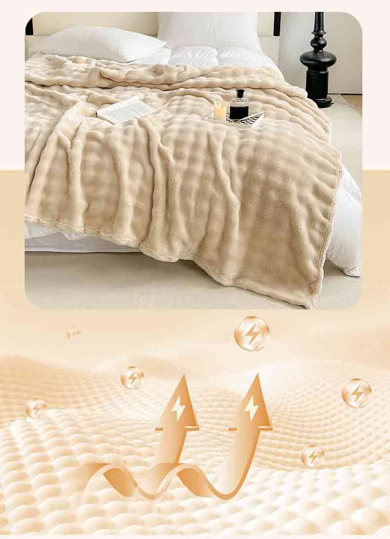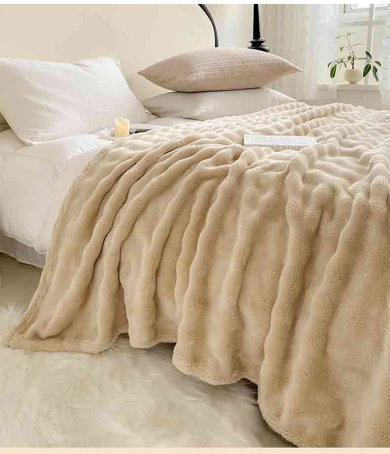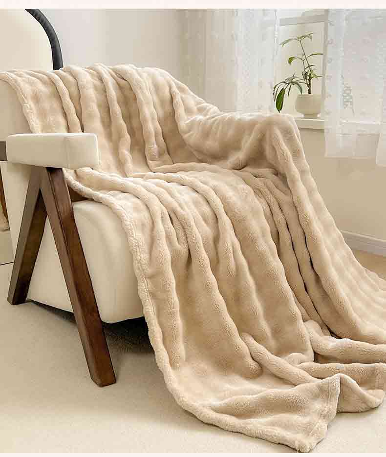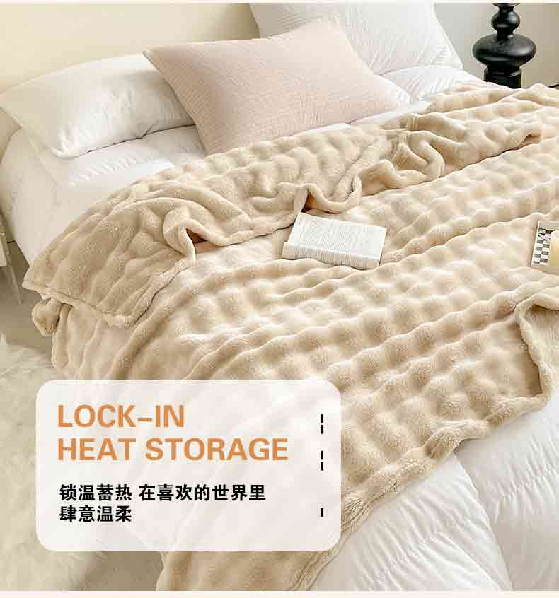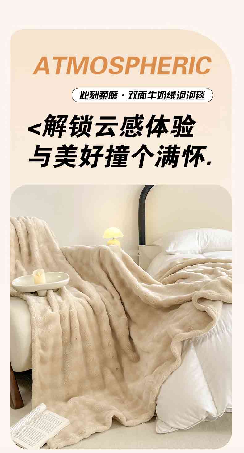 商品名称:羋多(原穆琪)2024新款高克重牛奶绒仿兔毛泡泡毛毯双面绒床单办公室多功能盖毯午睡沙发毯披肩毯 奶牛咖