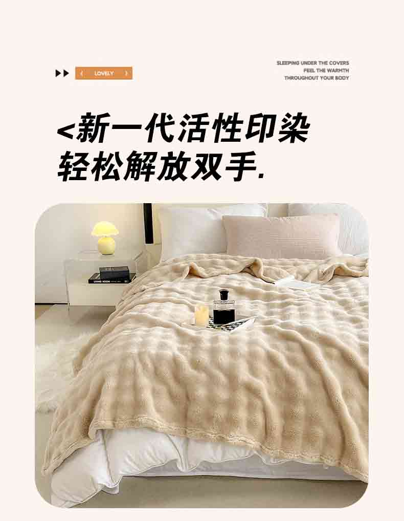 (总)穆琪2025新款轻奢盖毯高克重多层提花绵柔绒保暖毛毯绵密亲肤沙发毯休闲小毯子,果绿,浅咖,秋波蓝,水晶紫,象牙白,陨石灰