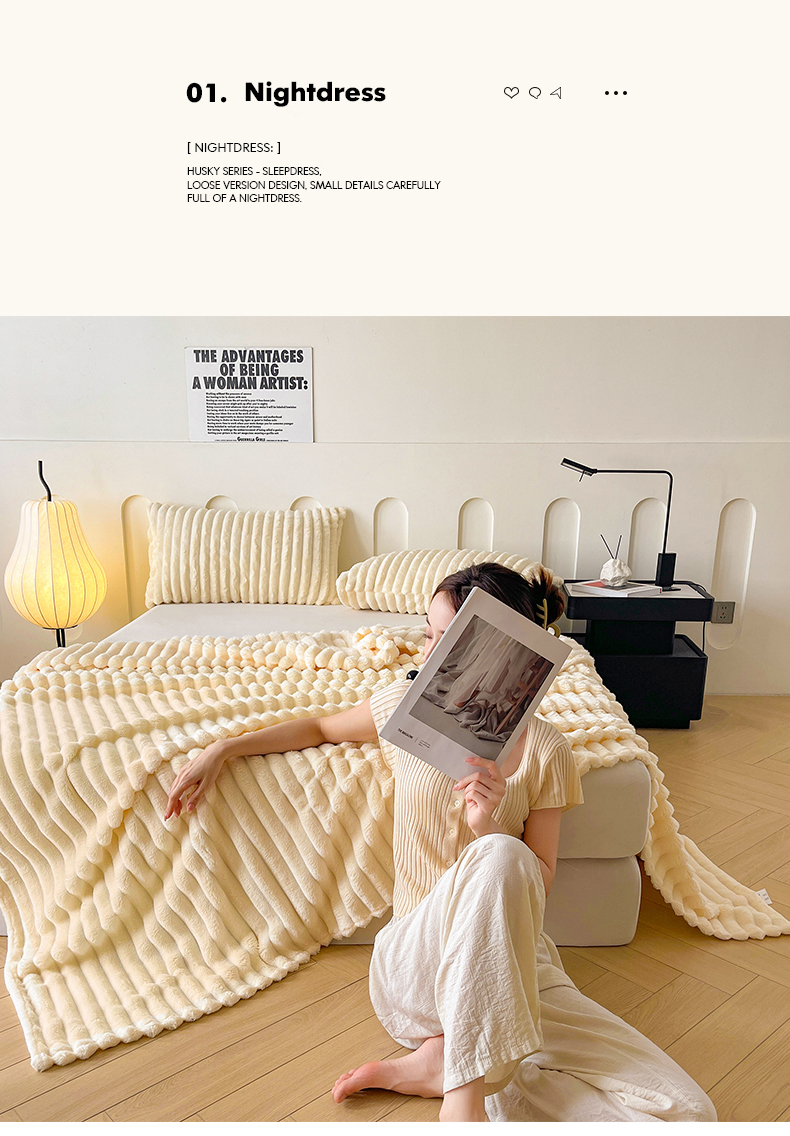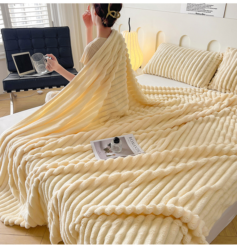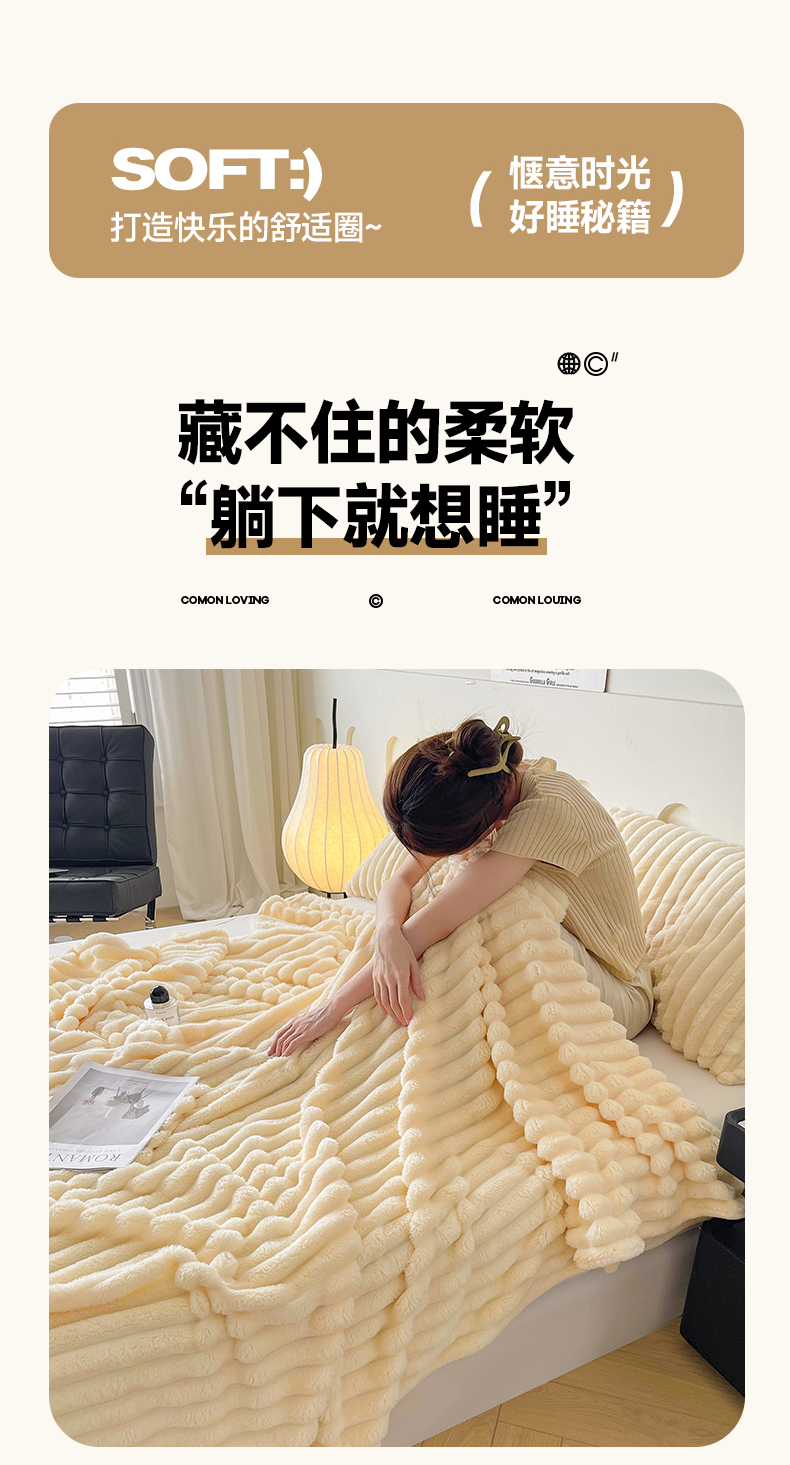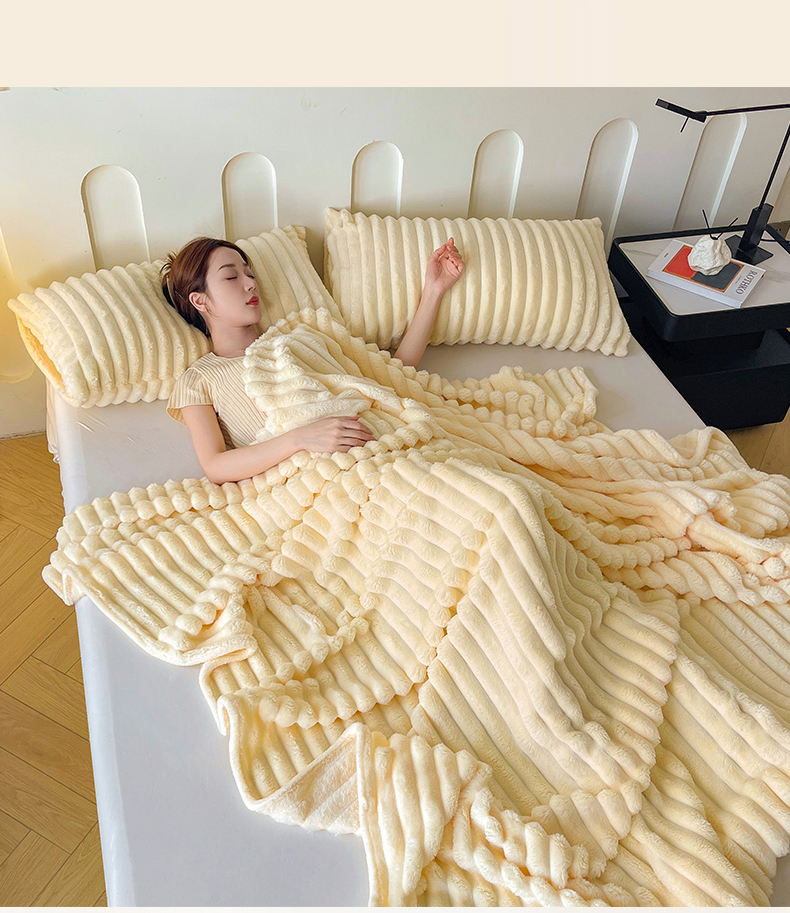寐居家纺 2024新款泡泡兔毛绒午睡毯毛毯盖毯 奶油黄