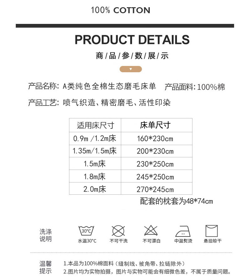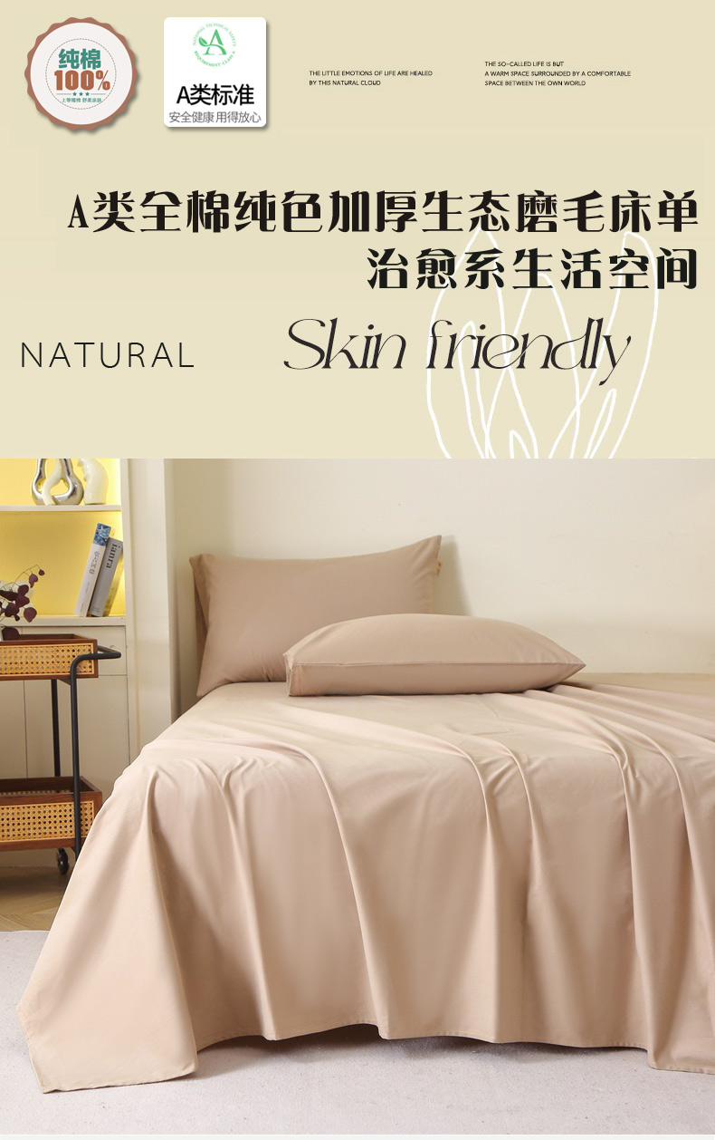 商品名称:晶缦家纺 2024新款全棉13376纯色喷气全棉磨毛单品床单 暖芸馨-鹿角棕