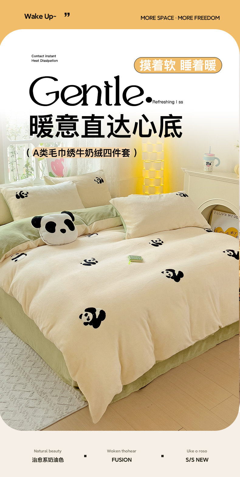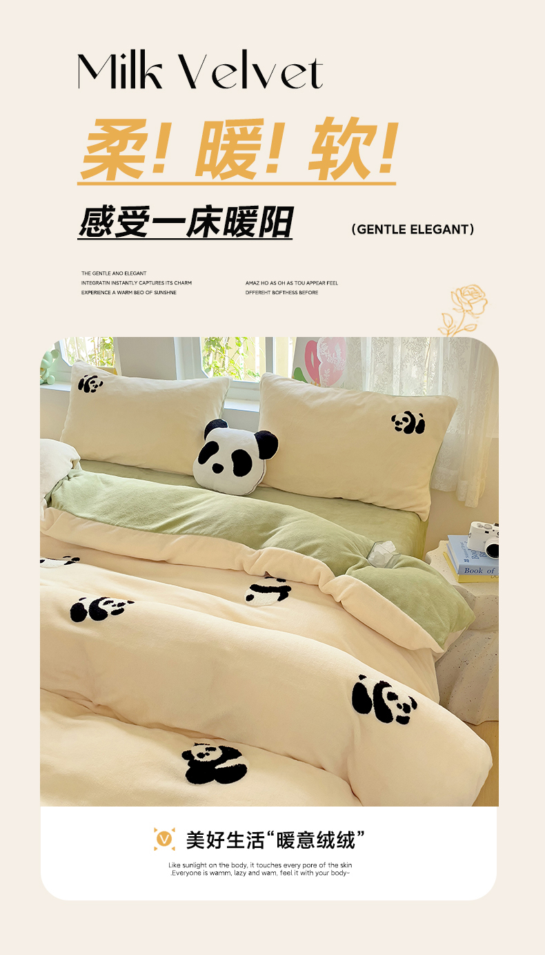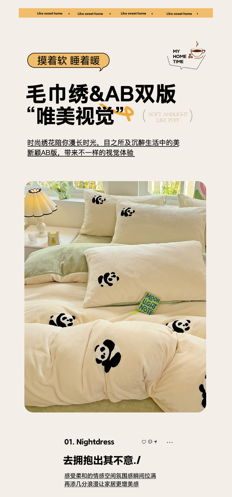 当前位置: 91家纺网 > 商品网购 > 床品套件 > 四件套 > 牛奶绒四件套 > 寐居家纺 2024新款纯色牛奶绒毛巾绣四件套 呆萌熊猫-奶油绿