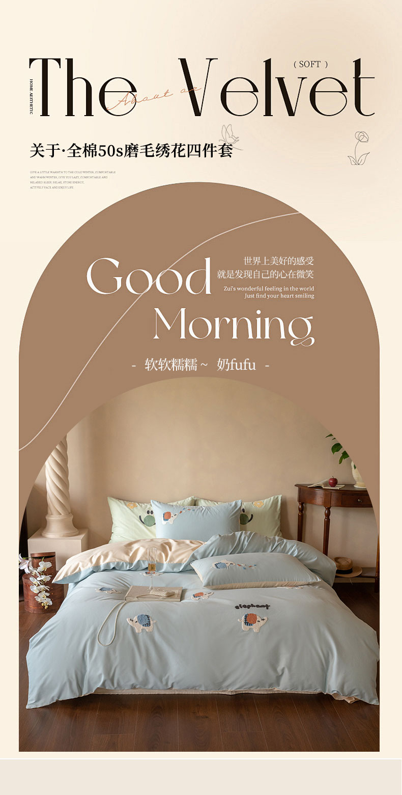 当前位置: 91家纺网 > 商品网购 > 床品套件 > 四件套 > 全棉普通四件套 > 2024新款50S全棉磨毛绣花四件套 小雨点
