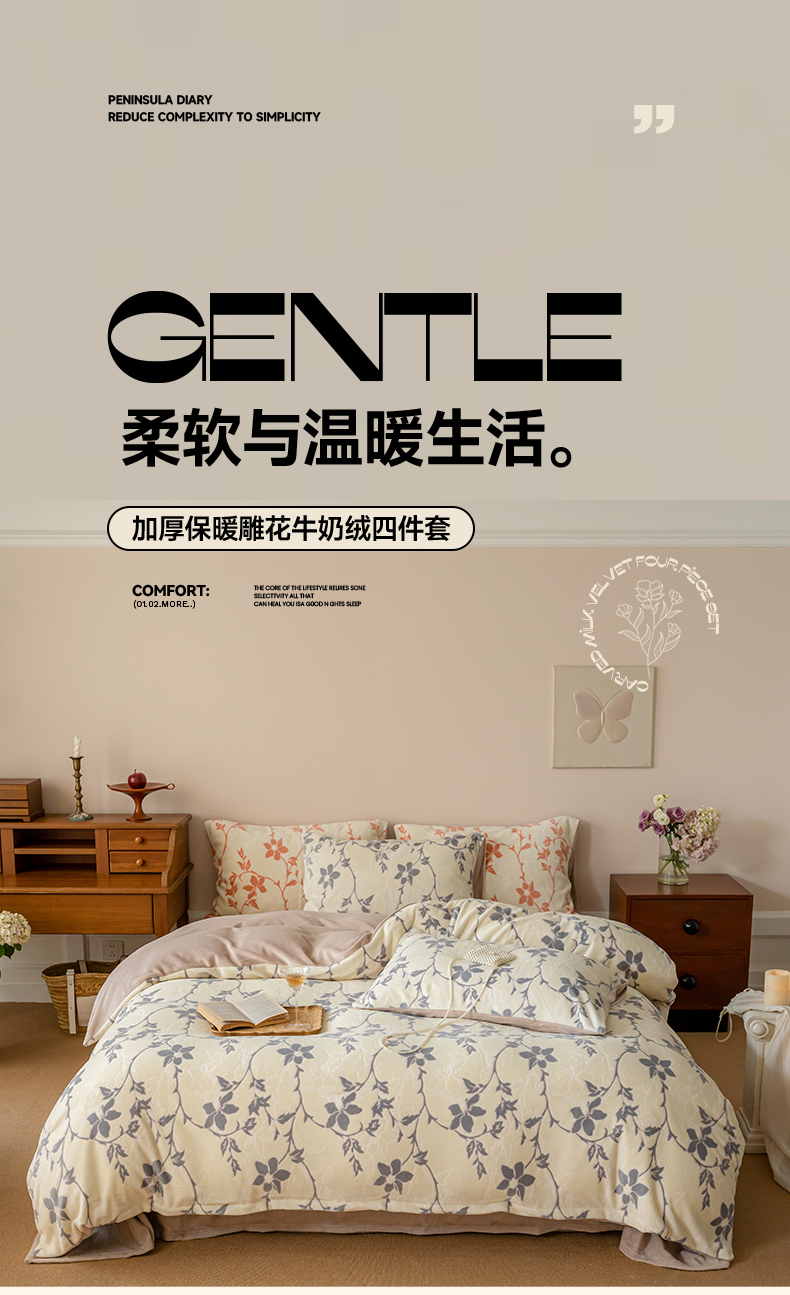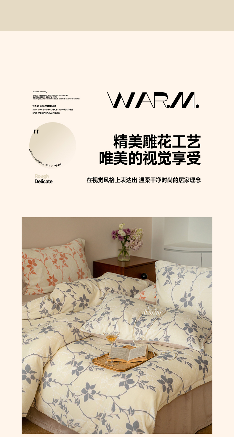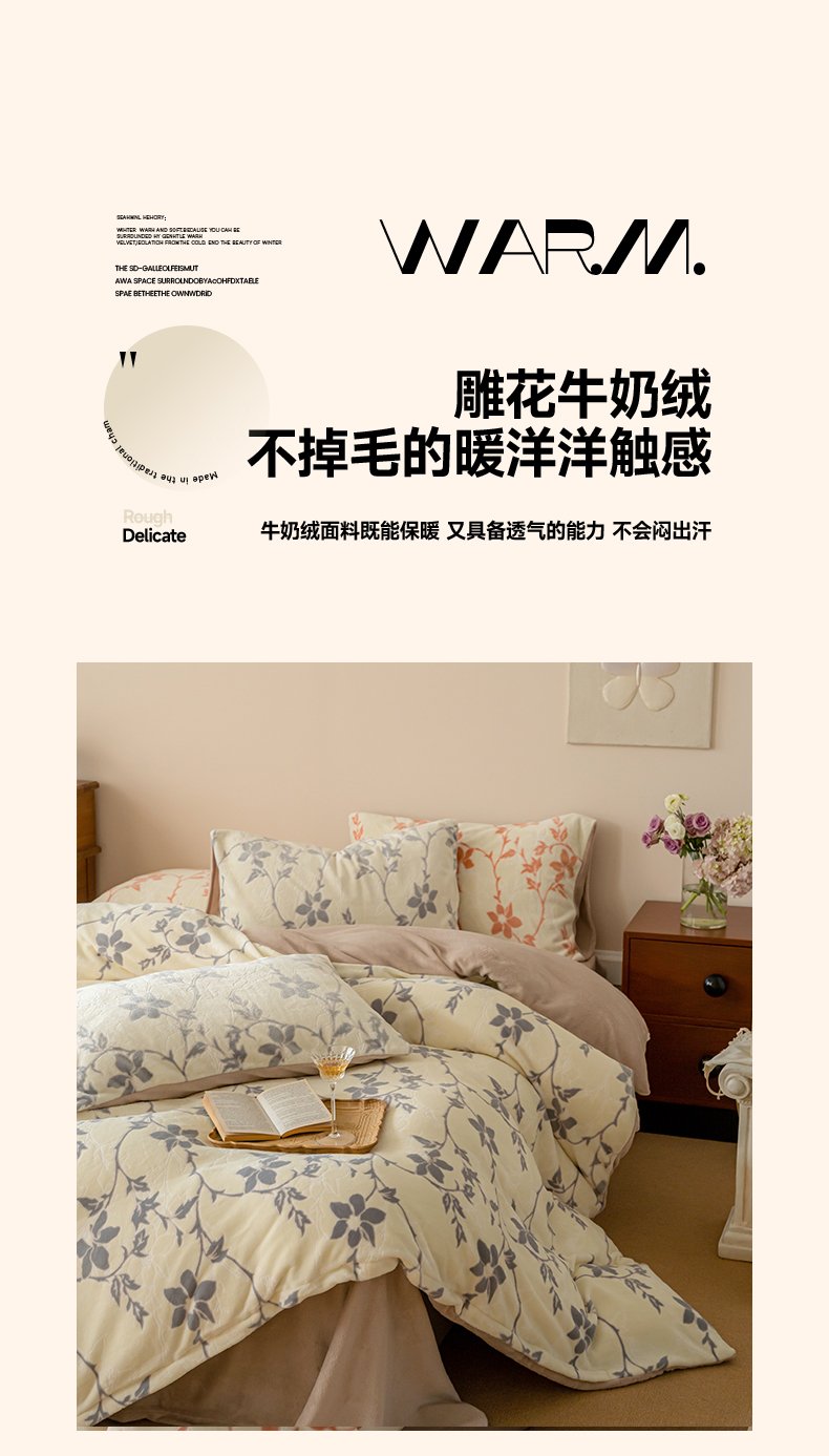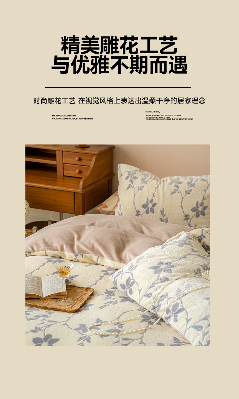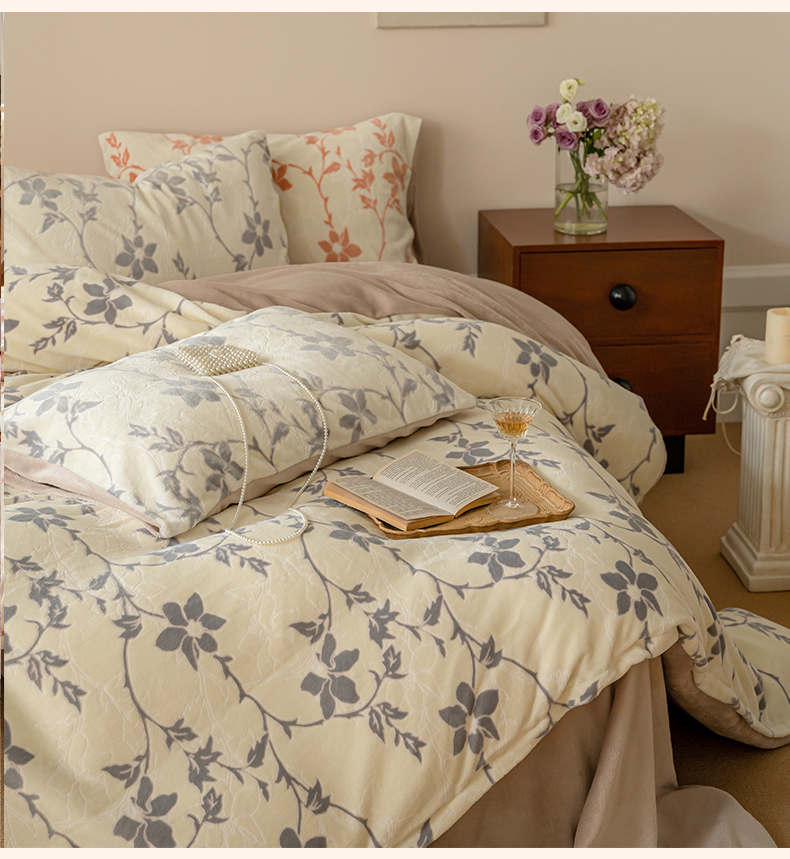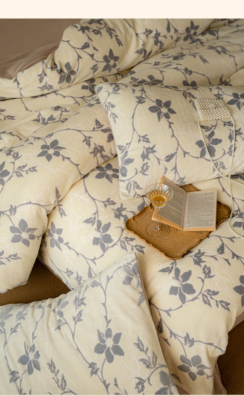 当前位置: 91家纺网 > 商品网购 > 床品套件 > 四件套 > 牛奶绒四件套 > 华超针织 2024新款雕花绒四件套-繁花+花千朵系列 繁花-嫩紫