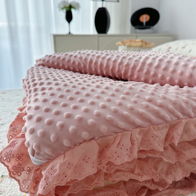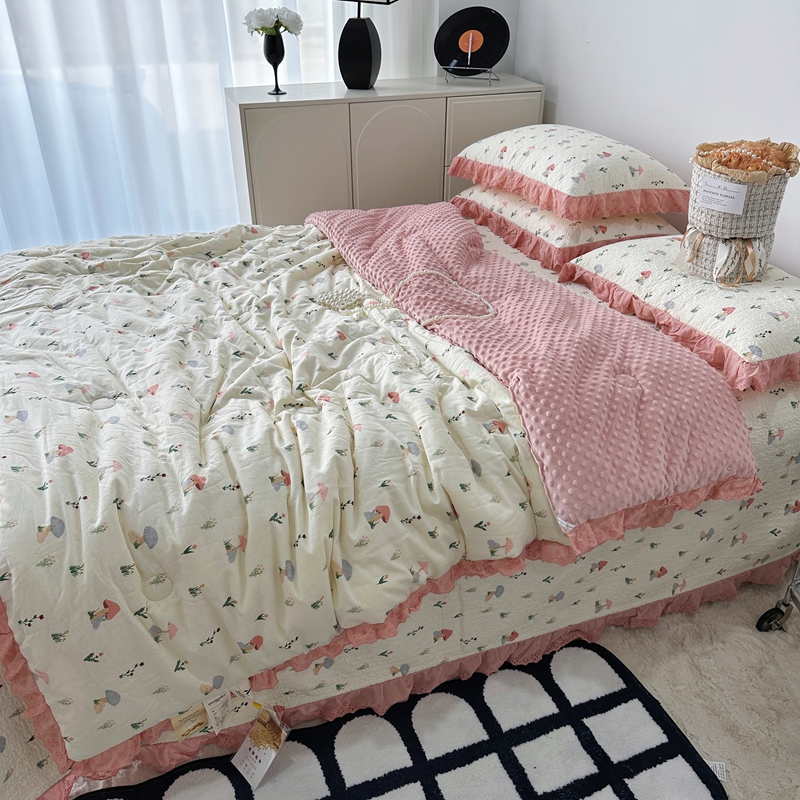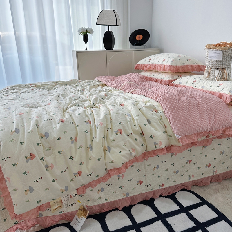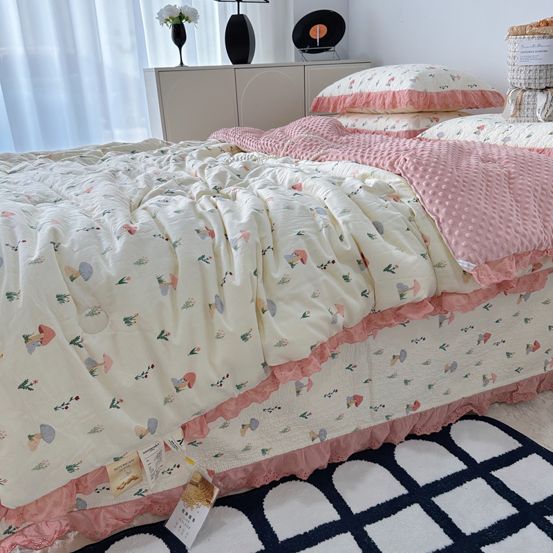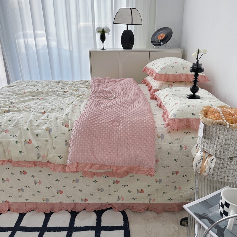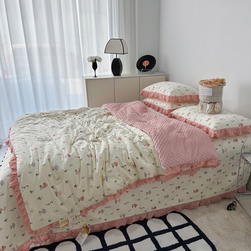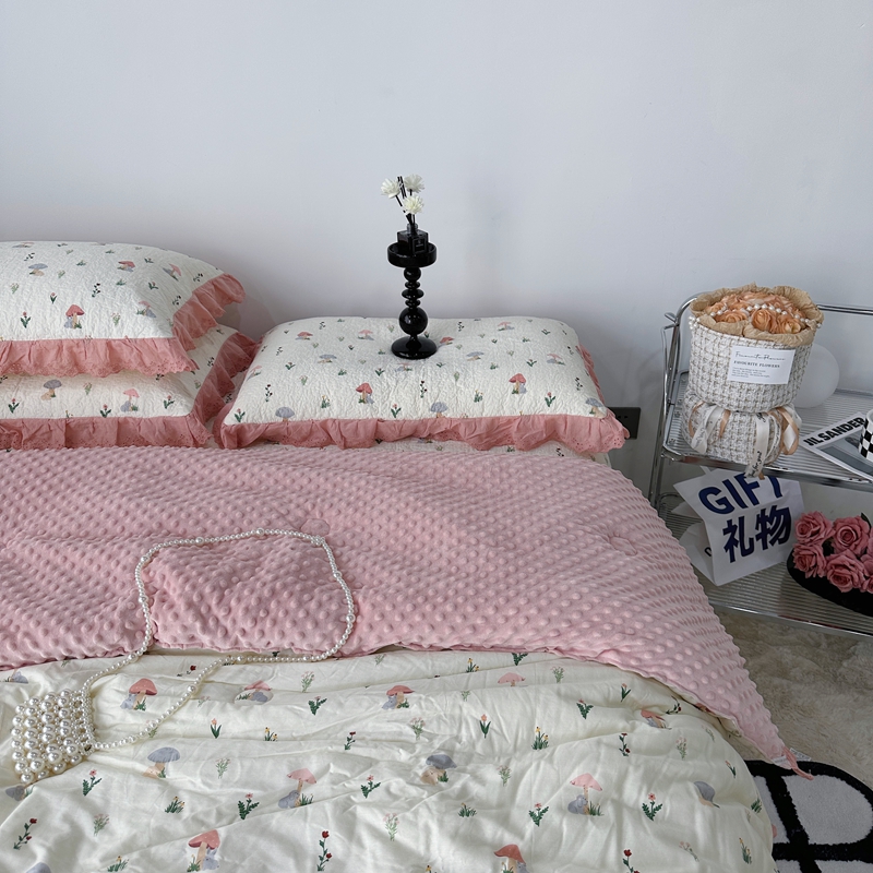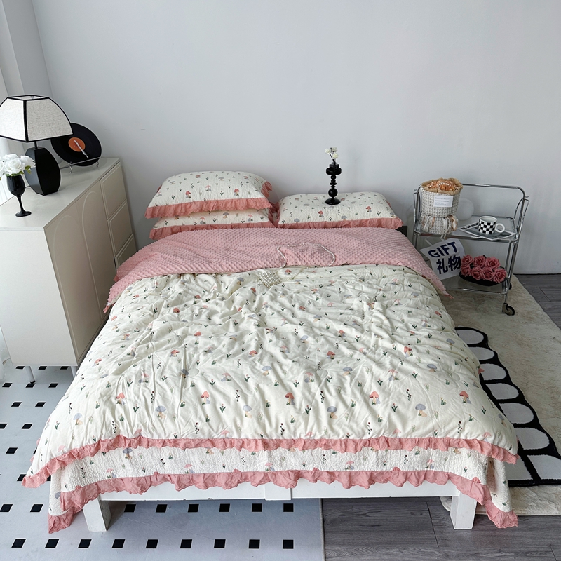 佰织鑫家居 2024新款秋冬全棉法式床盖款豆豆被四件套 蘑菇兔
