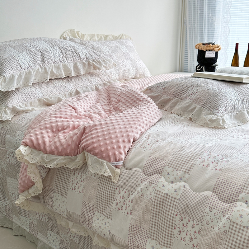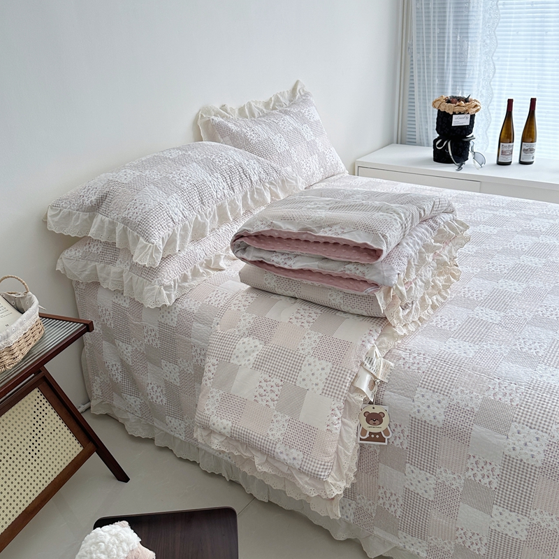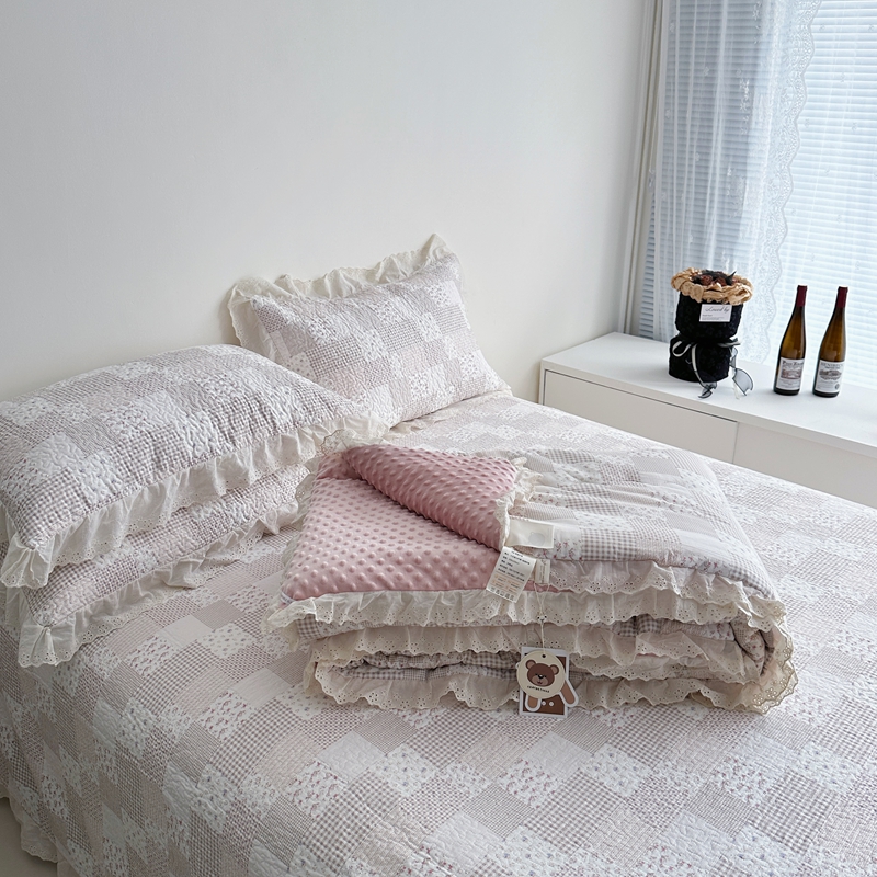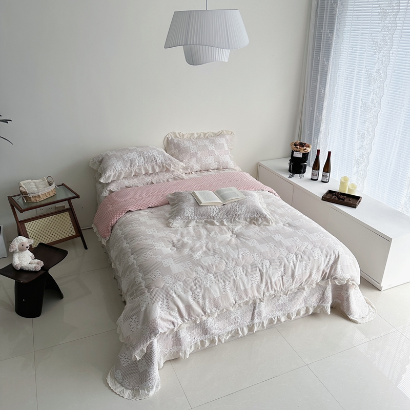 商品名称:佰织鑫家居 2024新款秋冬全棉法式床盖款豆豆被四件套 芳柔
