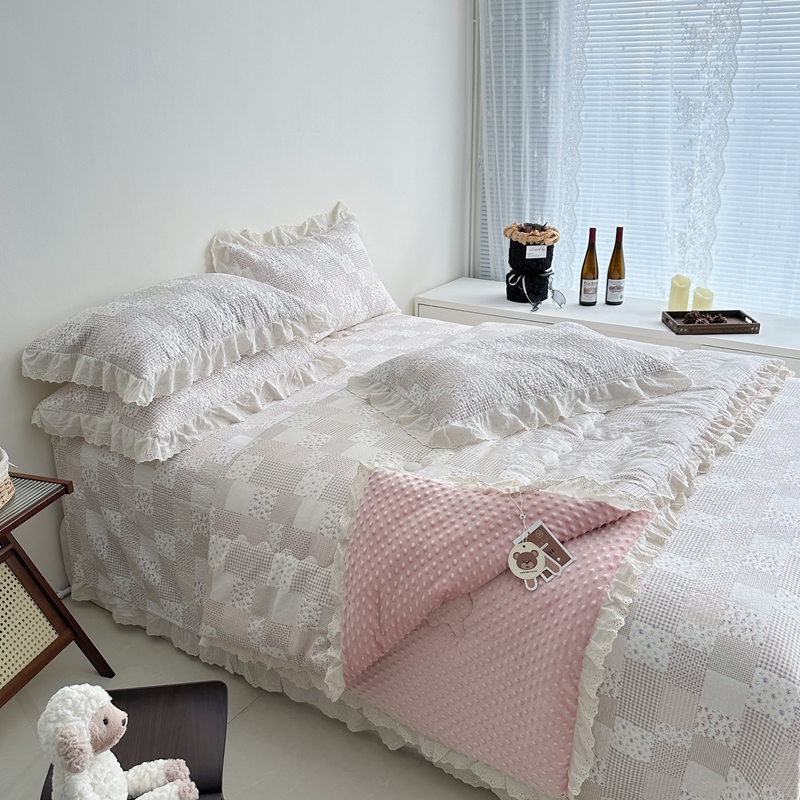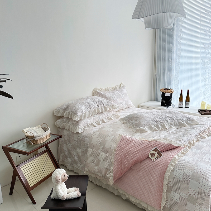 佰织鑫家居 2024新款秋冬全棉法式床盖款豆豆被四件套 芳柔