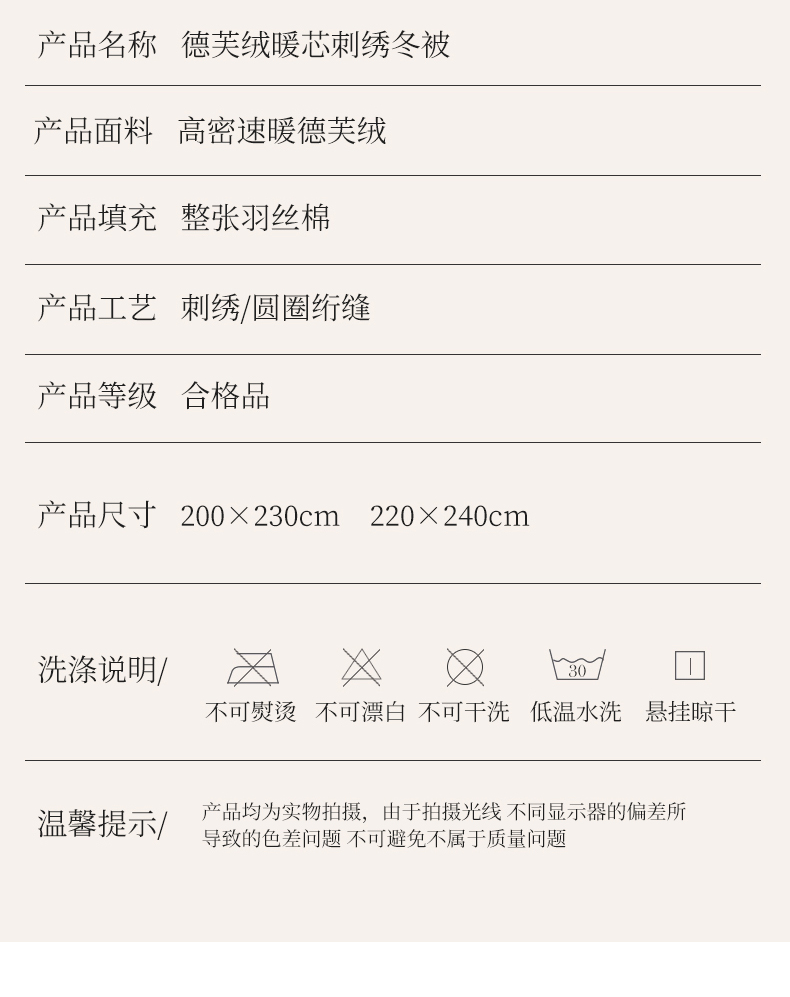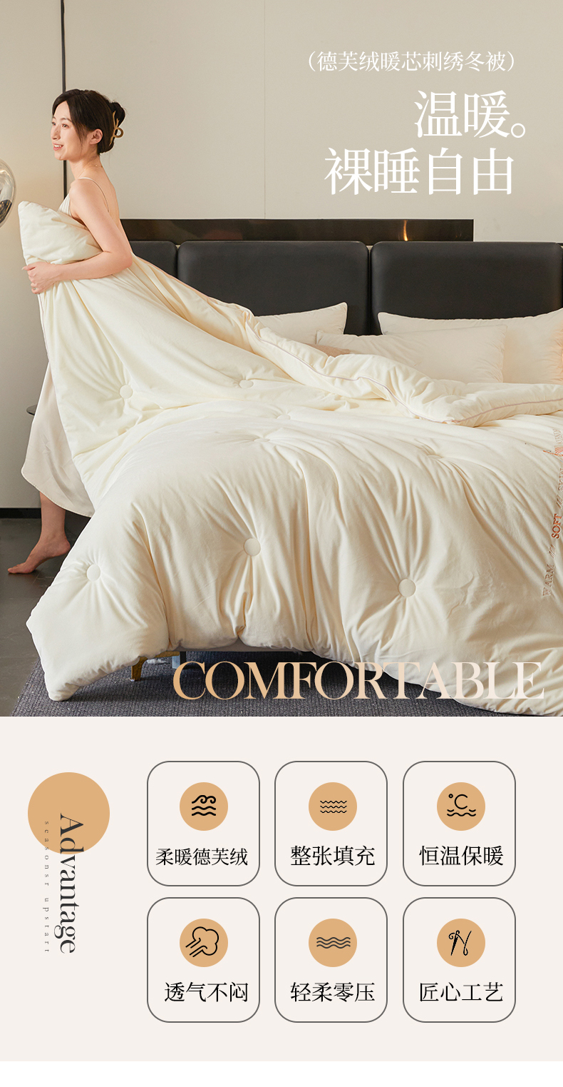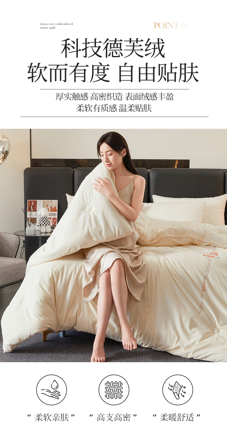 商品名称:(总)歌历斯家纺 2024新款德芙绒冬被牛奶绒冬被绣花冬被被子被芯四季被科技冬被