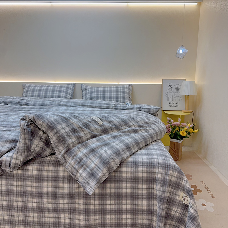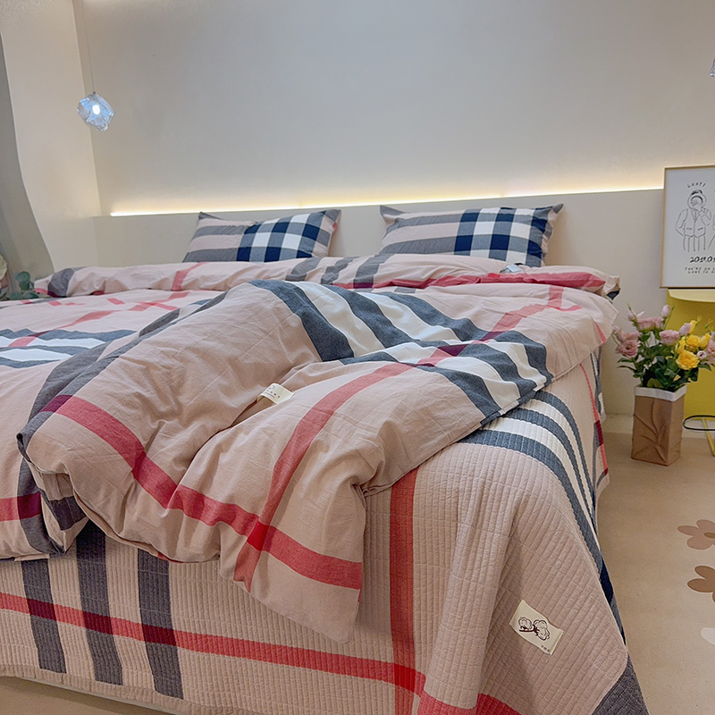 商品名称:2024新款水洗全棉条格床盖四件套 粉中格