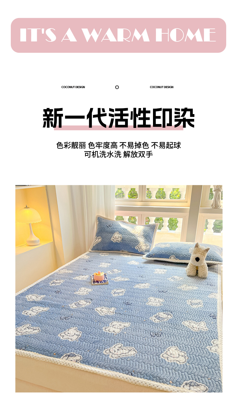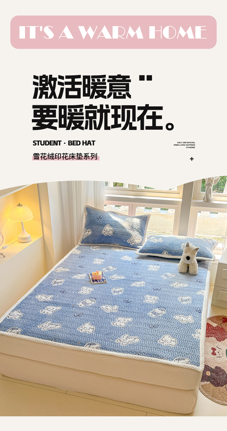 当前位置: 91家纺网 > 商品网购 > 床垫/床褥 > 普通床垫 > 川悦生活 2024新款A类印花雪花绒床垫加厚绒保暖床护垫 床垫小雪狗