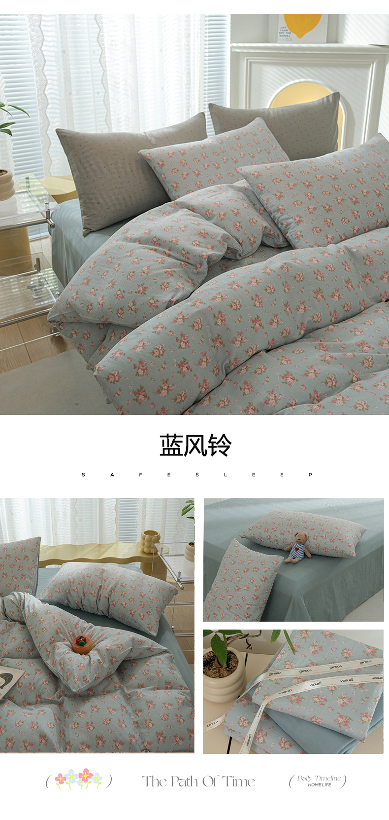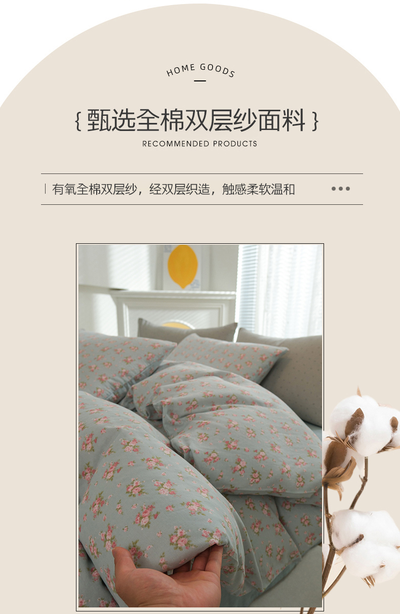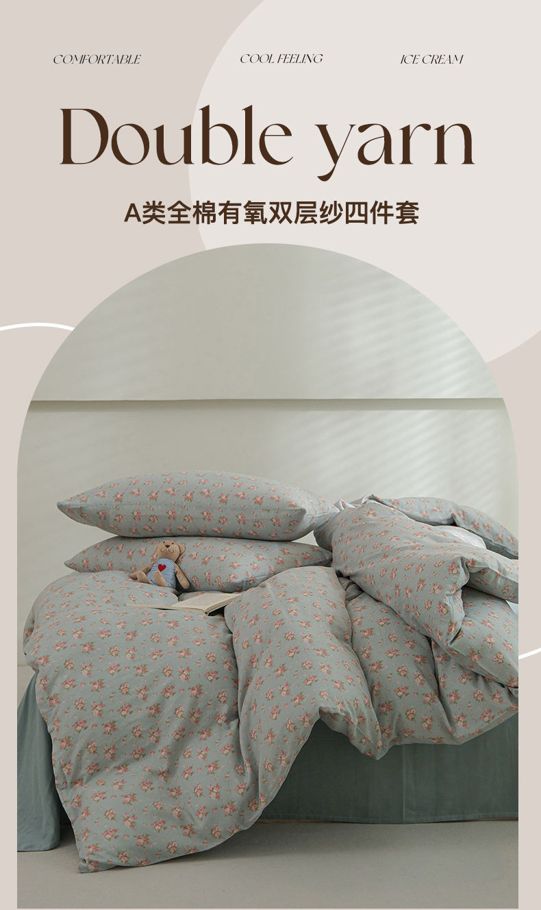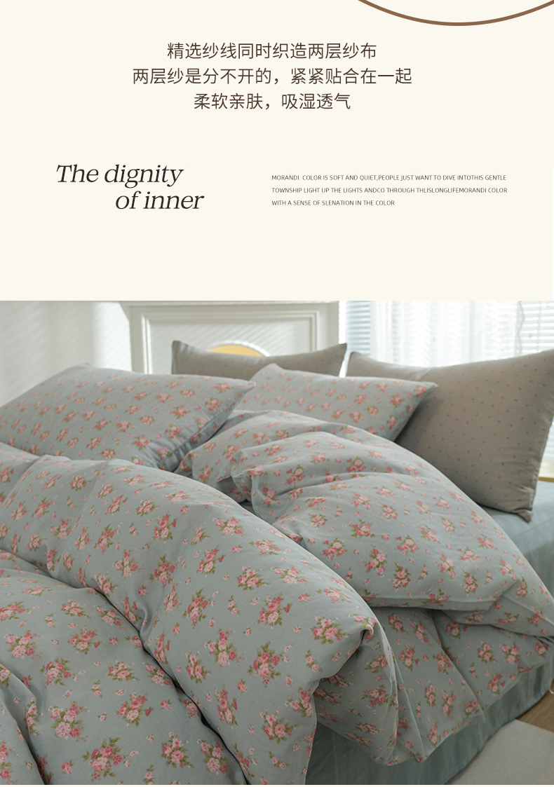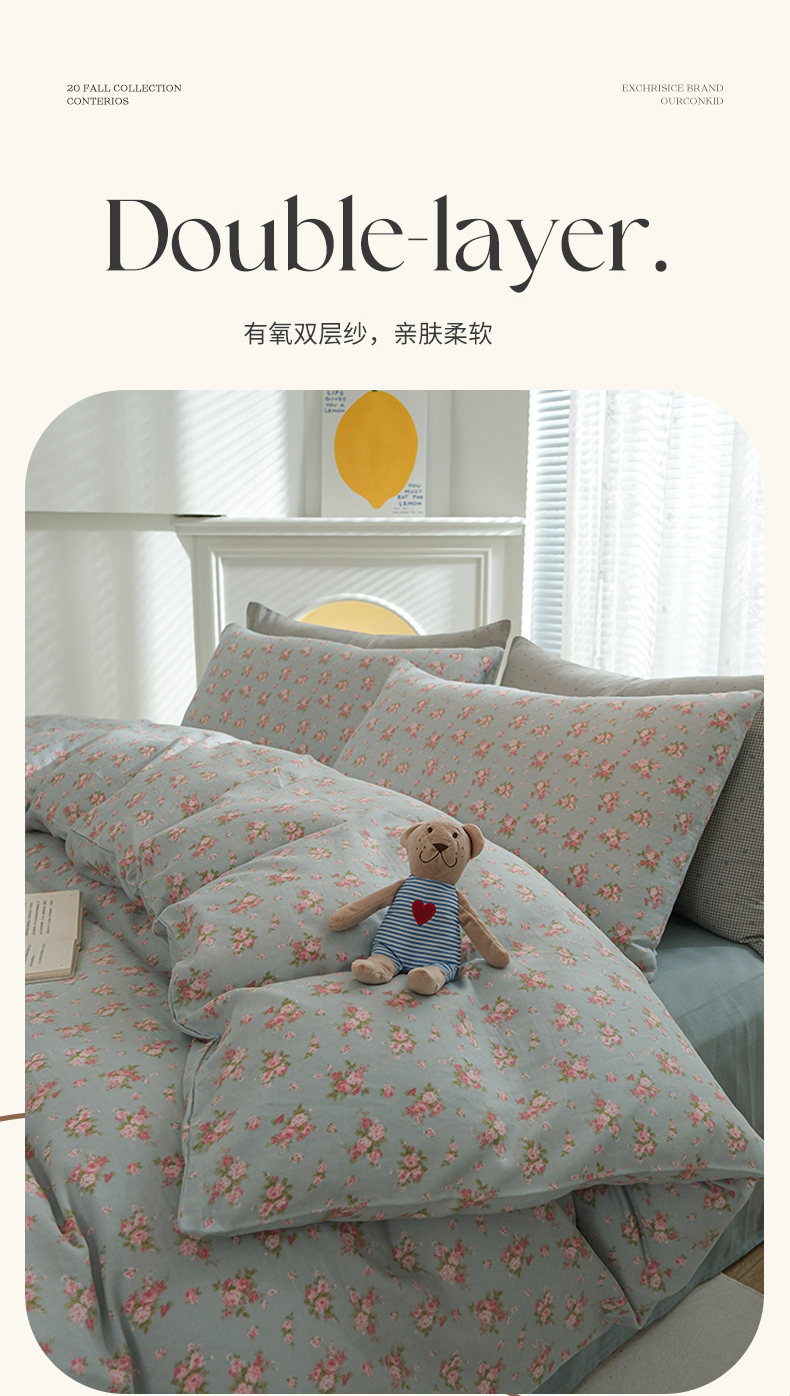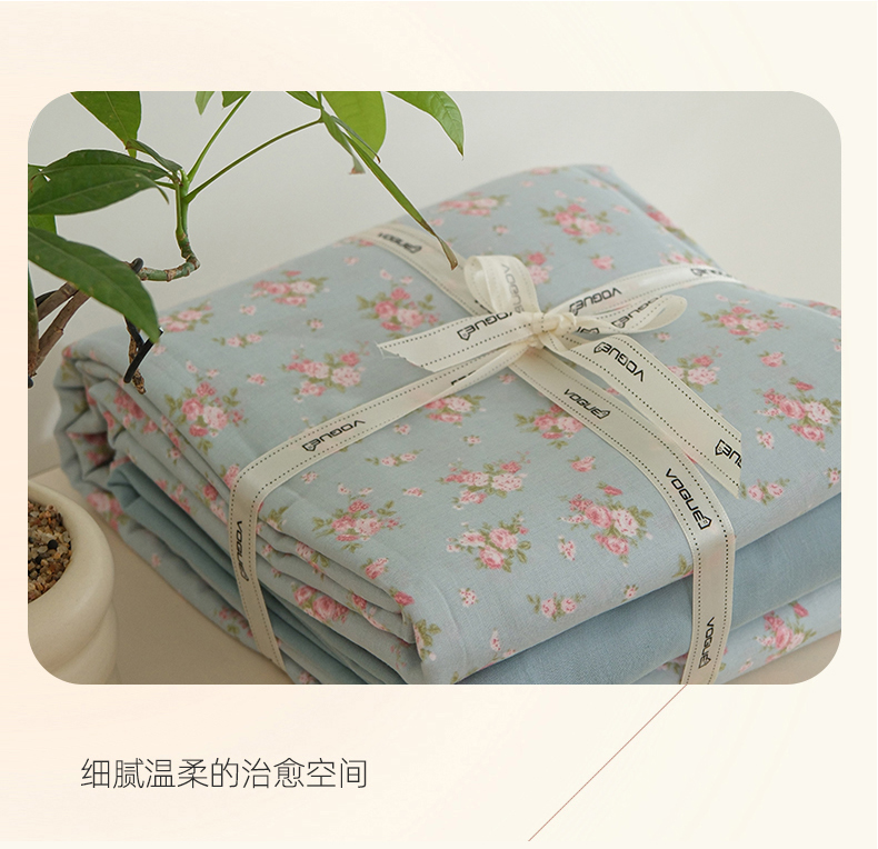 当前位置: 91家纺网 > 商品网购 > 床品套件 > 四件套 > 双层纱四件套 > 麦伦家居 2024秋冬新款A类全棉有氧双层纱四件套 蓝风铃