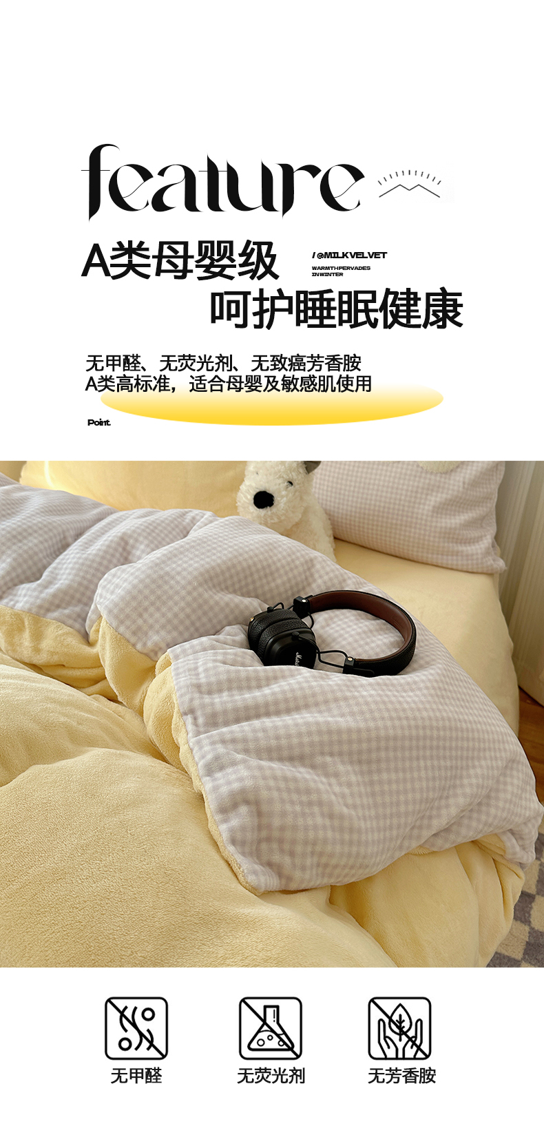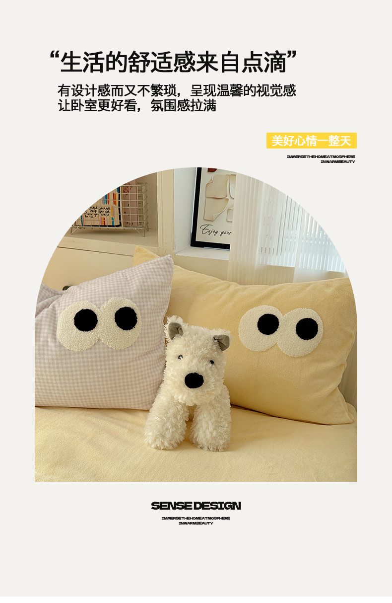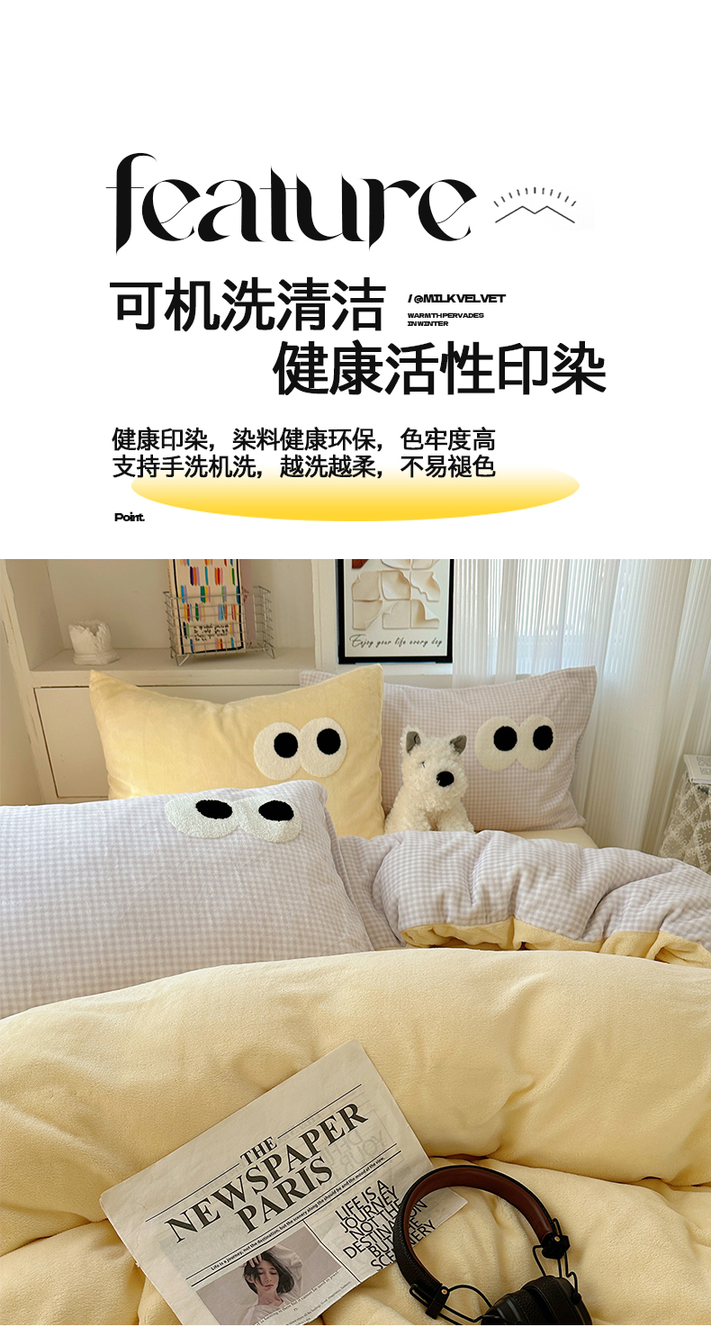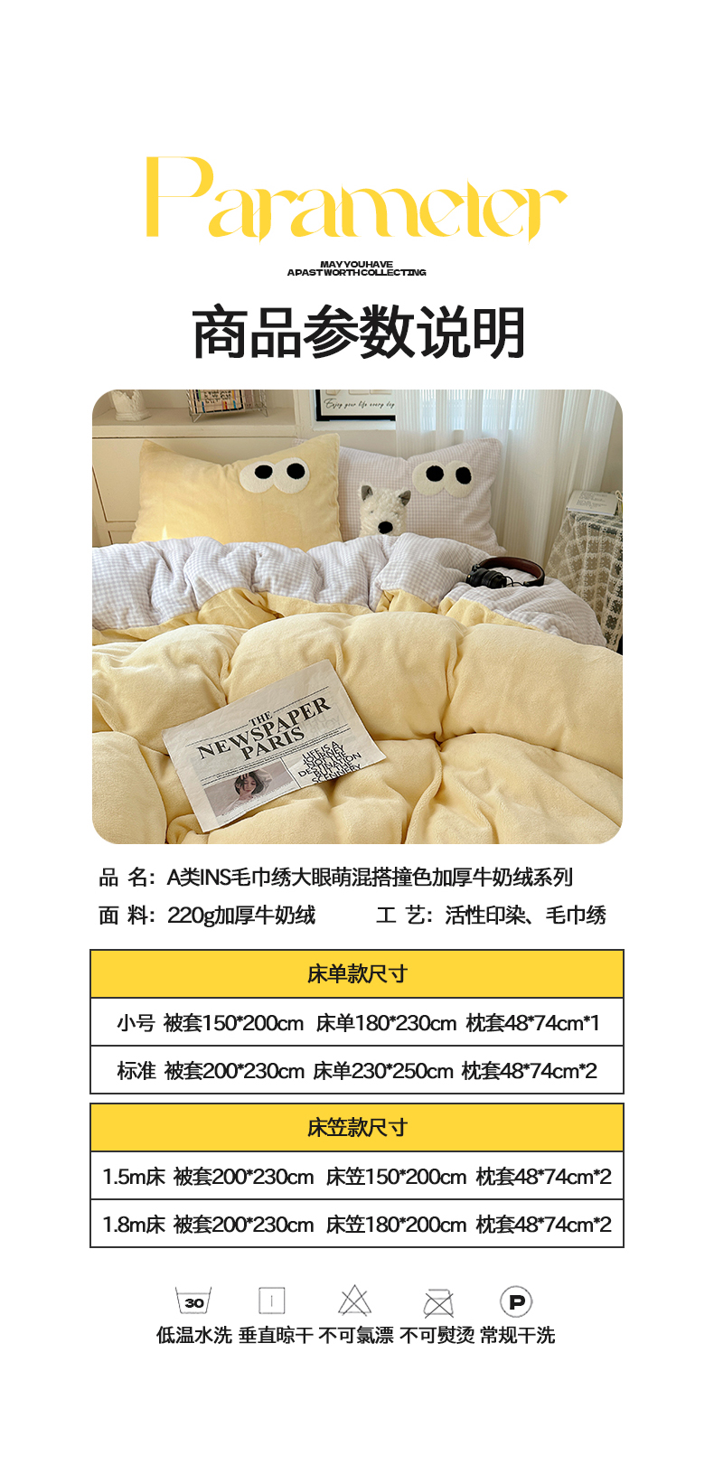 当前位置: 91家纺网 > 商品网购 > 床品套件 > 四件套 > 牛奶绒四件套 > 桃子家居 2024新款A类ins加厚毛巾绣大眼萌混搭撞色牛奶绒系列四件套 绒毛巾绣-大眼萌蓝格黄黄2