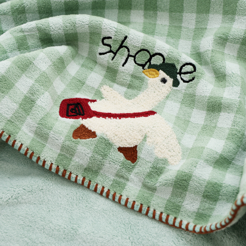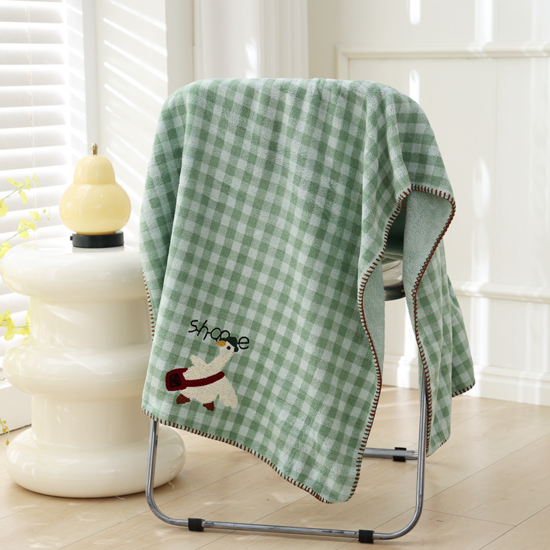 当前位置: 91家纺网 > 商品网购 > 居家日用 > 毛巾/浴巾/浴袍 > 浴巾 > 朴尔家纺-毛巾被 2024新款毛巾绣勾边小格快乐鸭AB版珊瑚绒速吸速干毛巾浴巾 格子快乐鸭-深绿浴巾