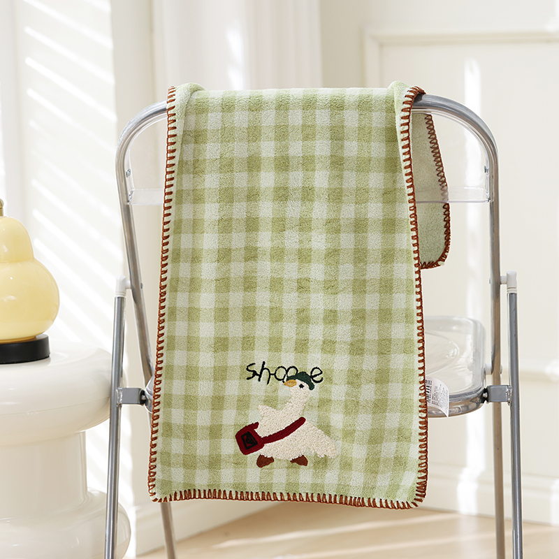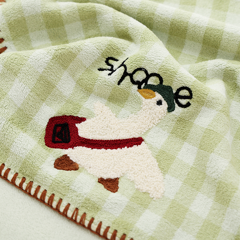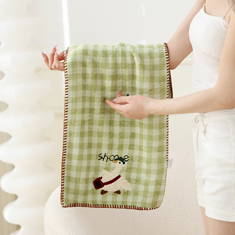 当前位置: 91家纺网 > 商品网购 > 居家日用 > 毛巾/浴巾/浴袍 > 浴巾 > 朴尔家纺-毛巾被 2024新款毛巾绣勾边小格快乐鸭AB版珊瑚绒速吸速干毛巾浴巾 格子快乐鸭-青绿毛巾