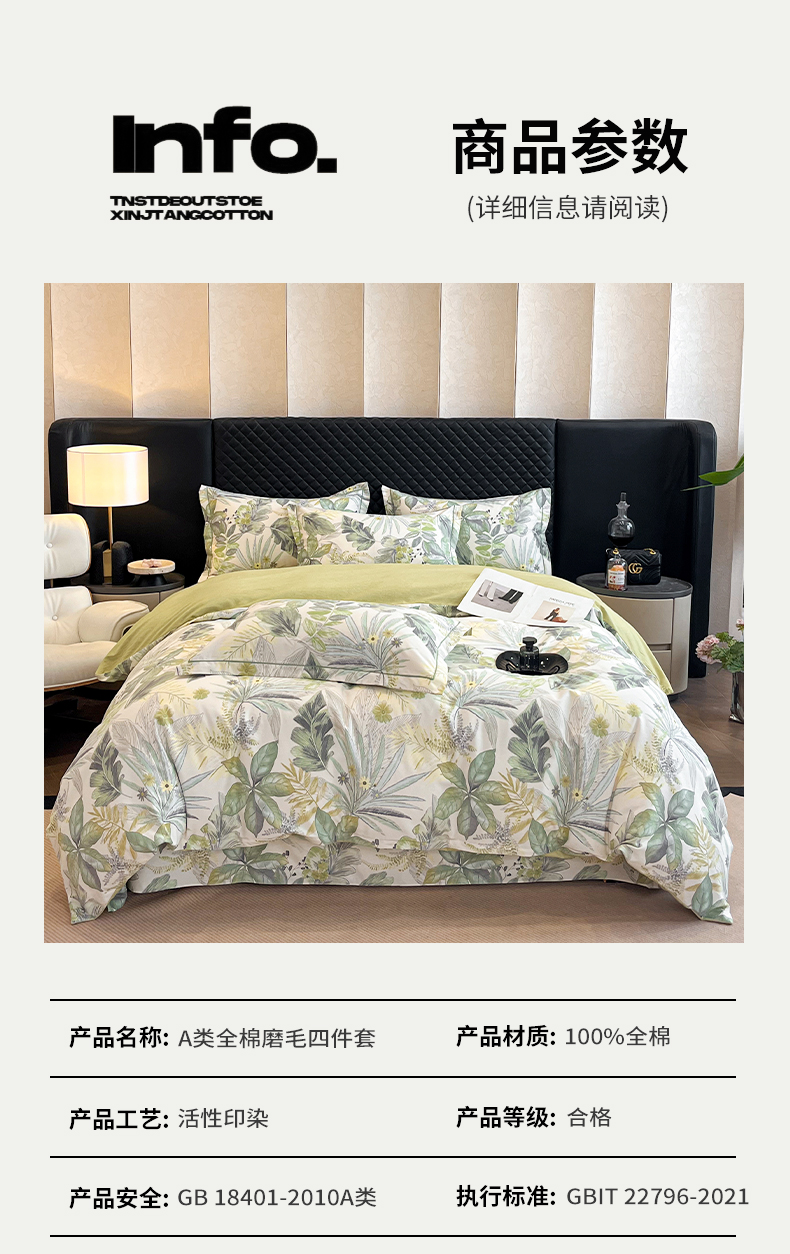 当前位置: 91家纺网 > 商品网购 > 床品套件 > 四件套 > 普通磨毛四件套 > 大柏树 2025新款A类全棉磨毛印花四件套 月光森林