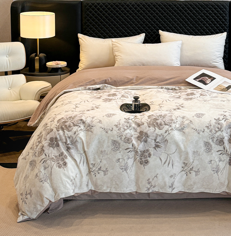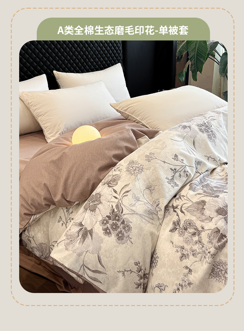• 91家纺网 家纺一手货源 找家纺 大柏树 2025新款A类全棉磨毛印花单被套 远黛灰