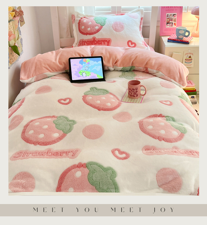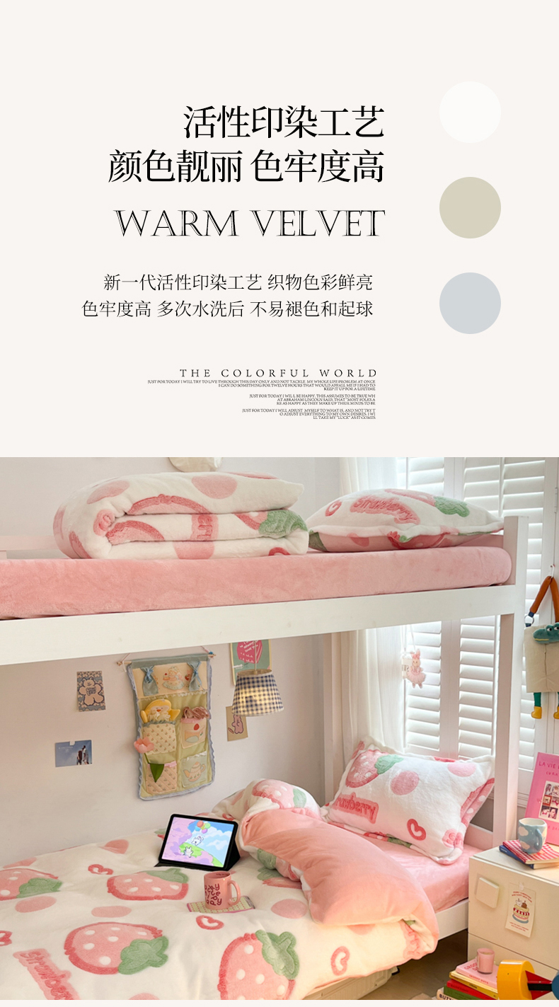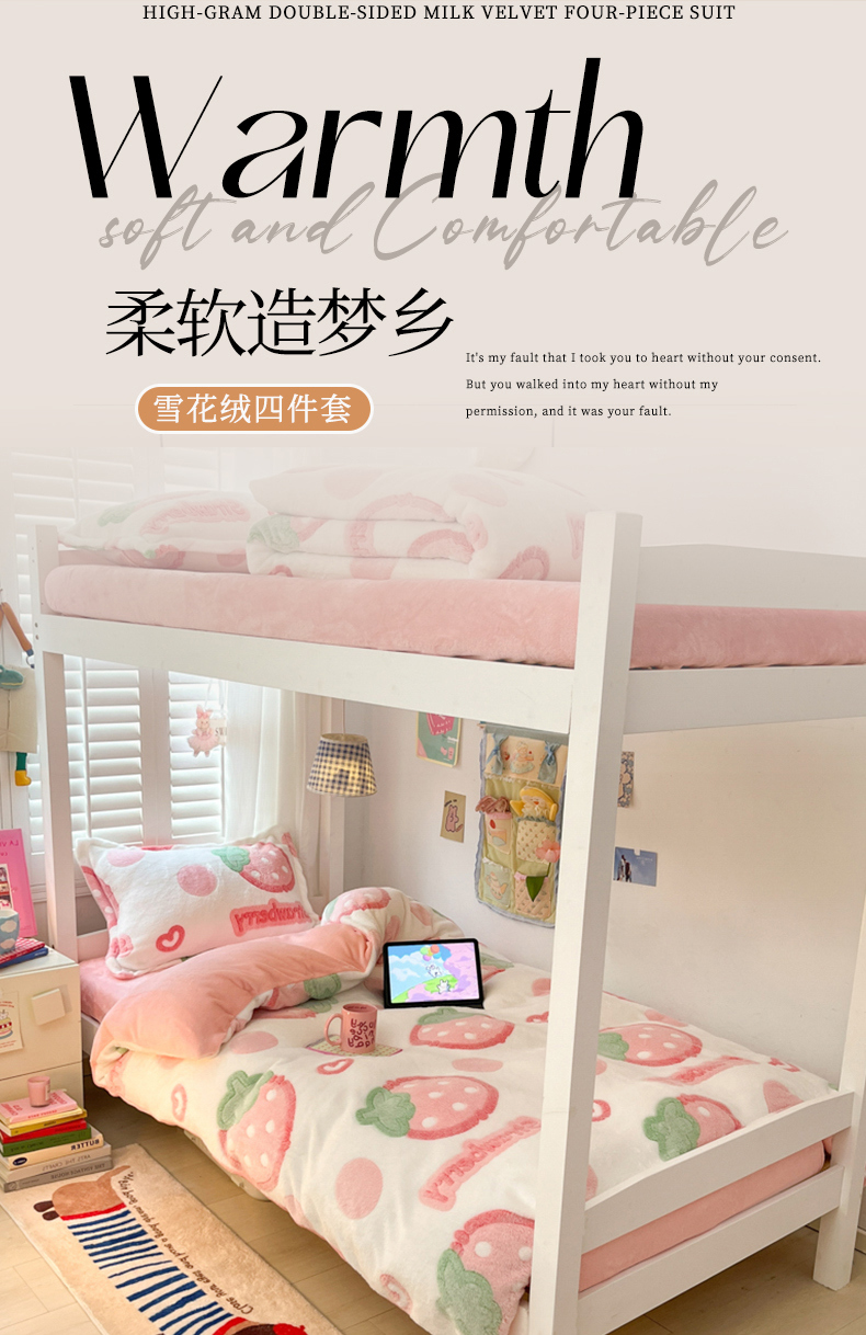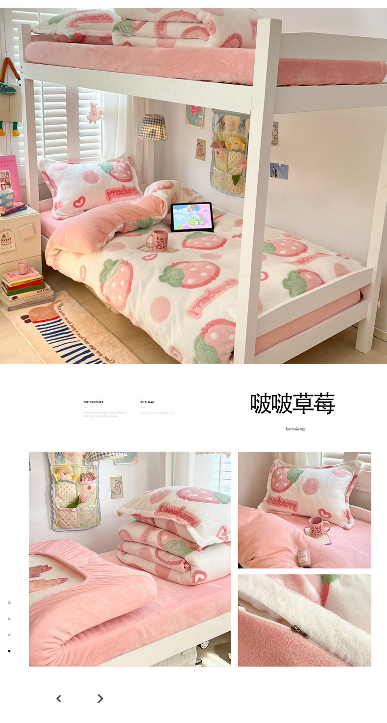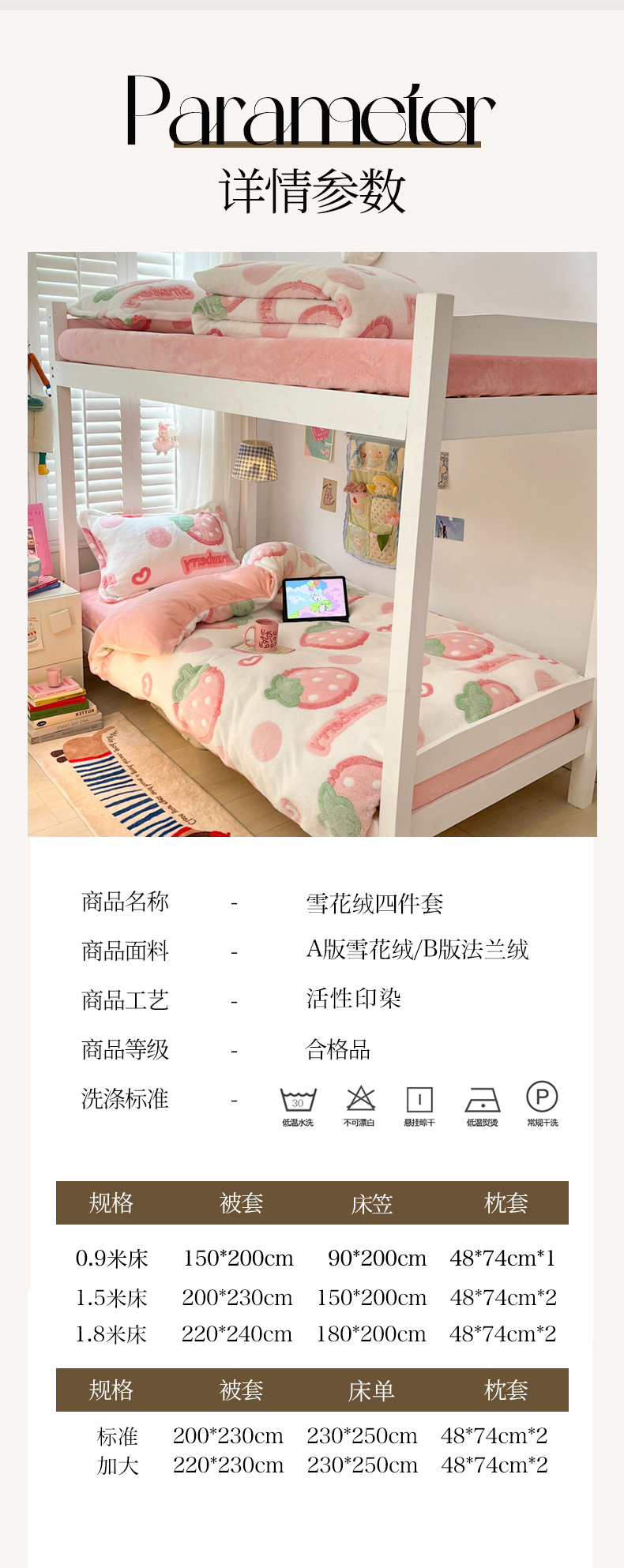当前位置: 91家纺网 > 商品网购 > 床品套件 > 三件套 > 川悦生活 2024新款立体雪花绒宿舍床笠款三件套四件套 啵啵草莓