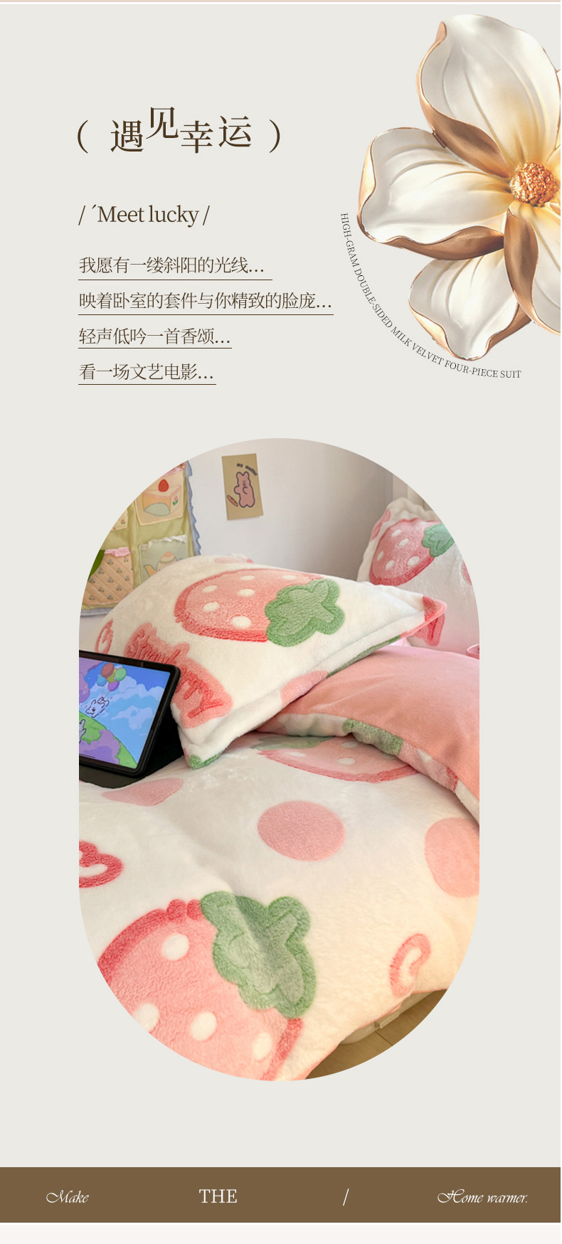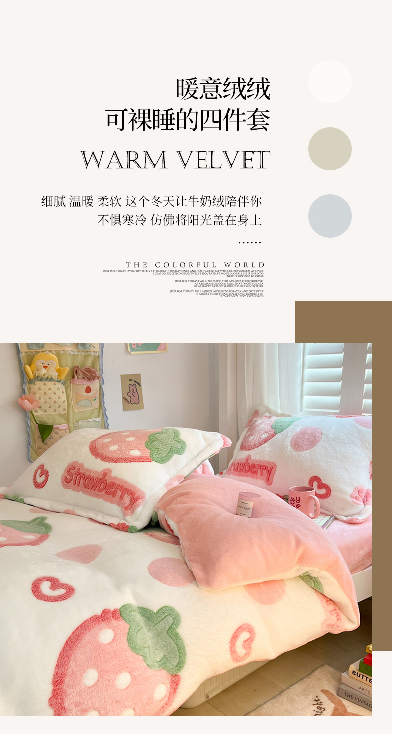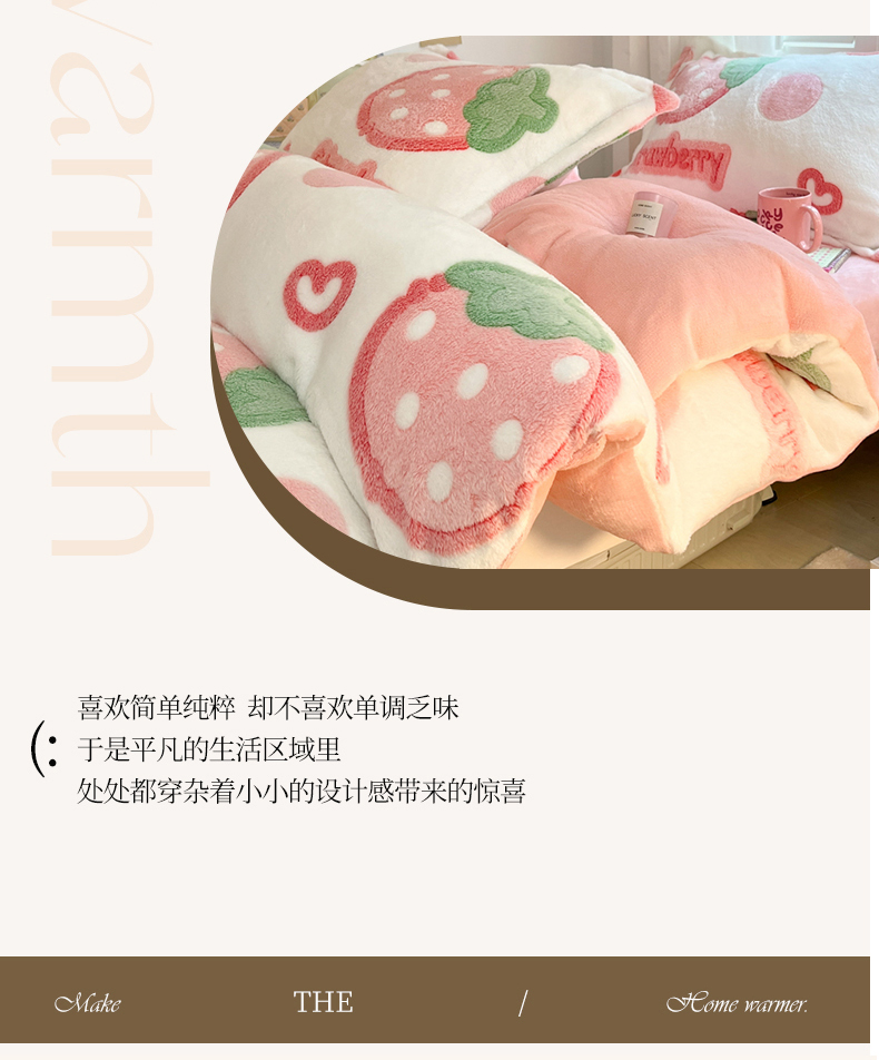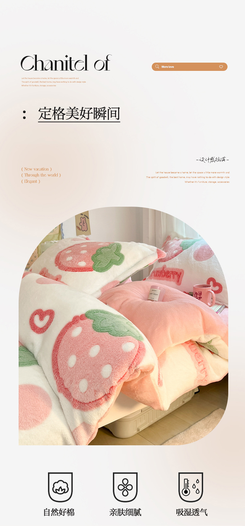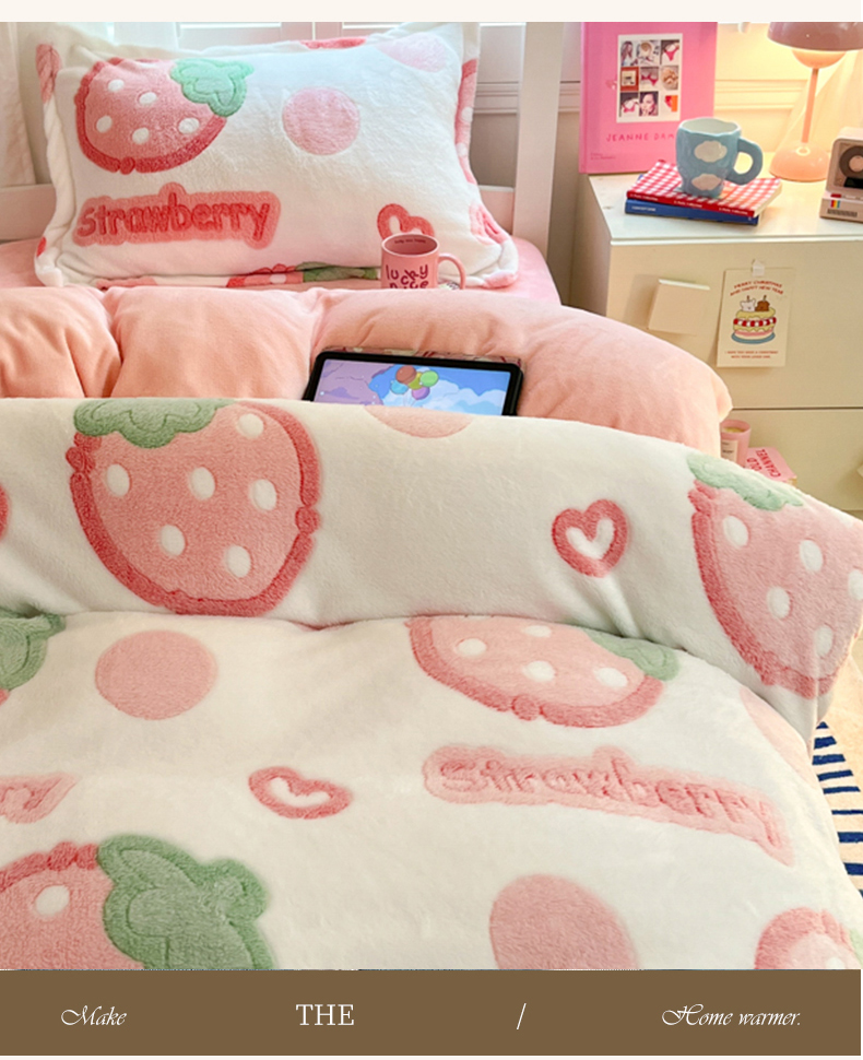 当前位置: 91家纺网 > 商品网购 > 床品套件 > 三件套 > 川悦生活 2024新款立体雪花绒宿舍床笠款三件套四件套 啵啵草莓
