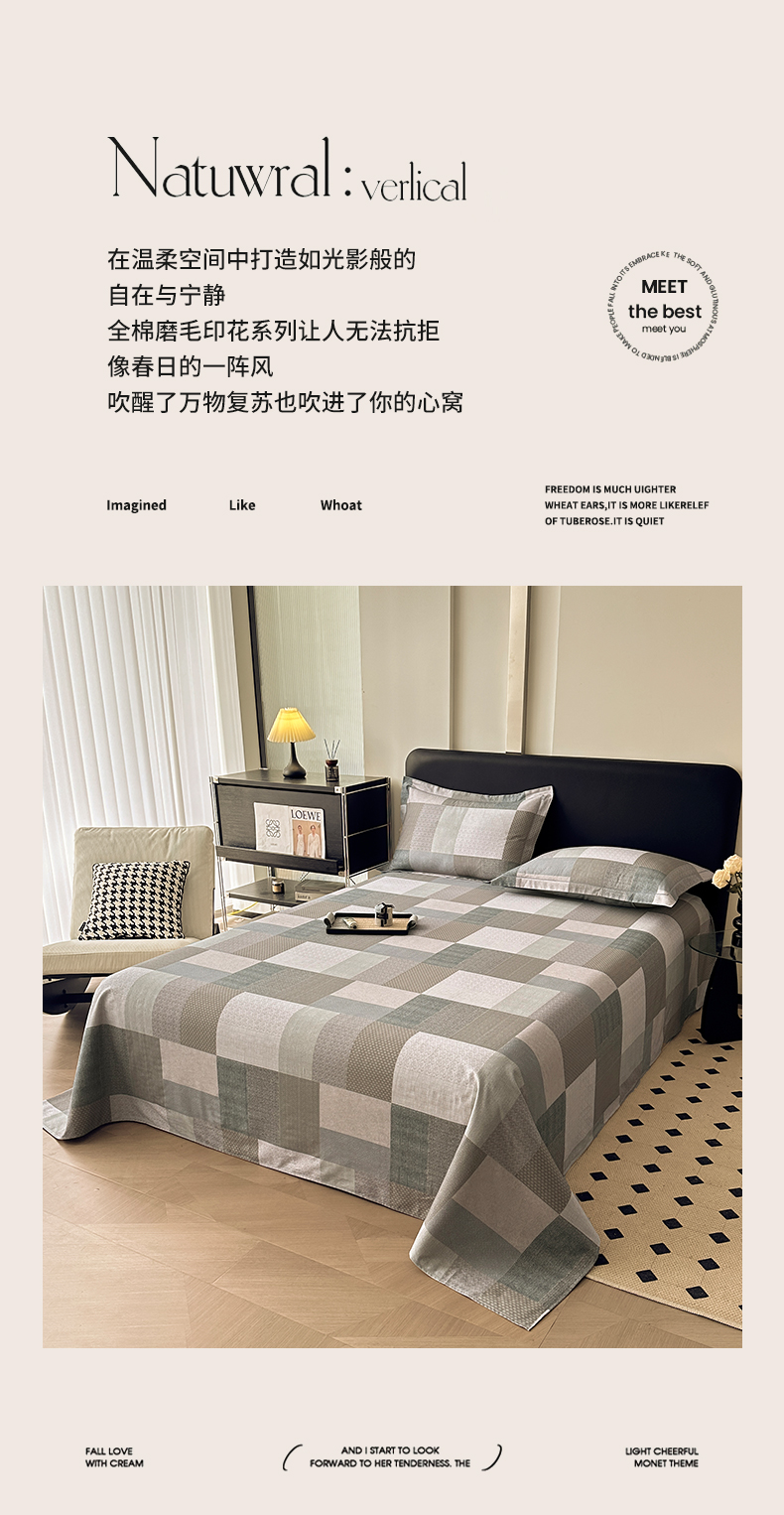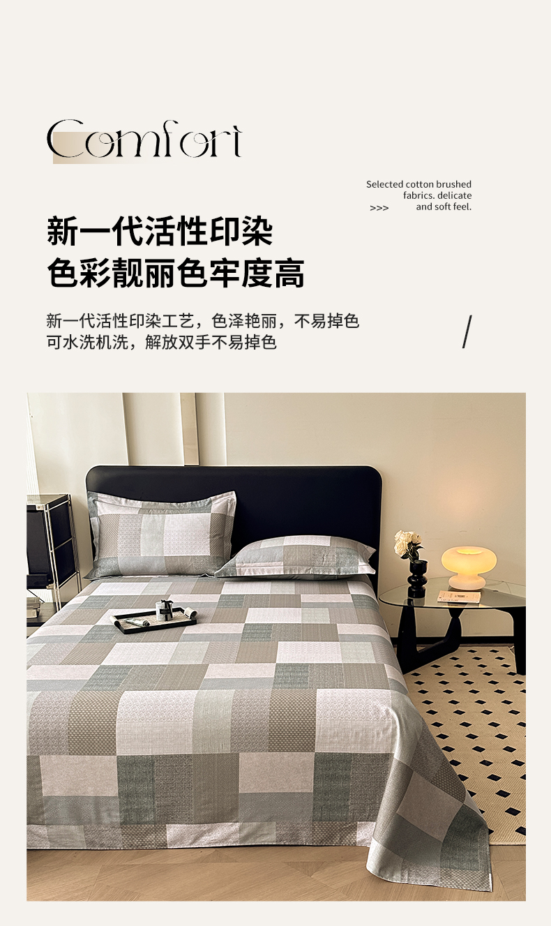 商品名称:大柏树 2025新款A类全棉磨毛印花单床单 布莱克