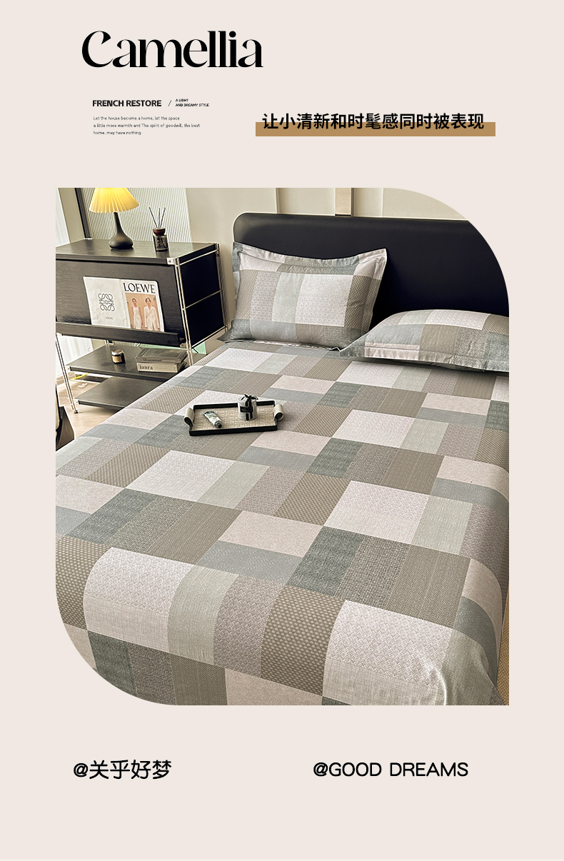 (总)大柏树 2025新款全棉水洗棉套件-床单四件套,艾莎绿小格,春野咖,春野兰,春野玉,绿紫中格,洛伊粉咖小格,莫妮卡,诺卡,日落红,日落灰,云素红,云岫粉咖,云岫绿咖