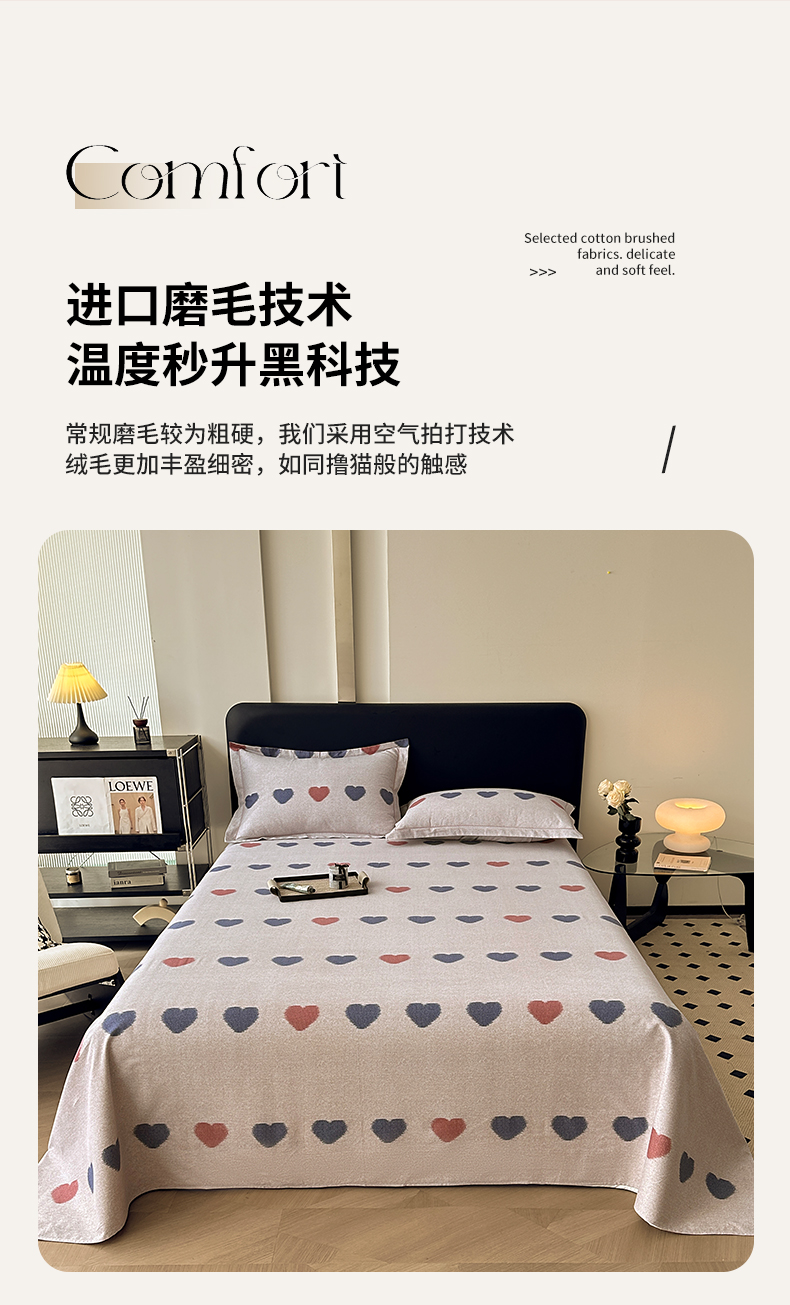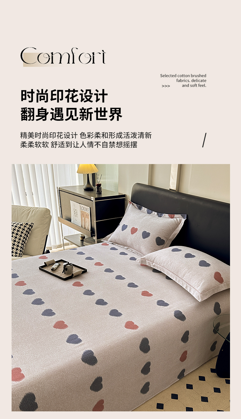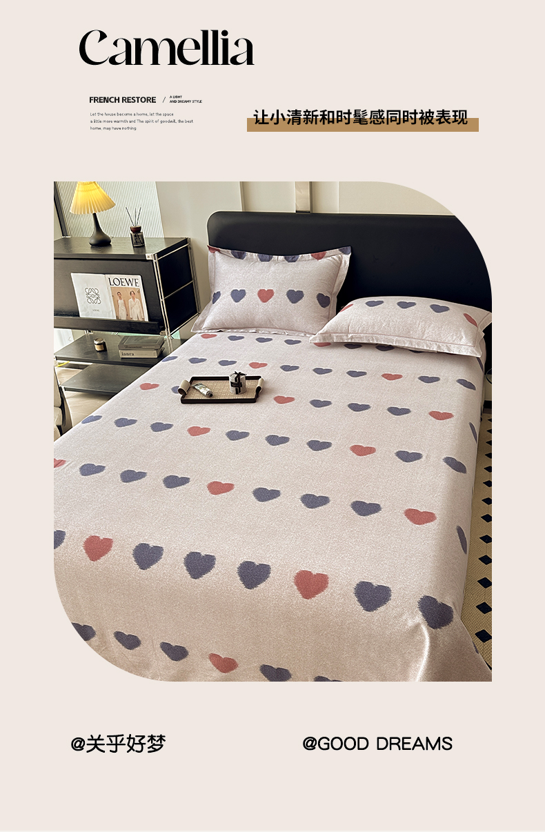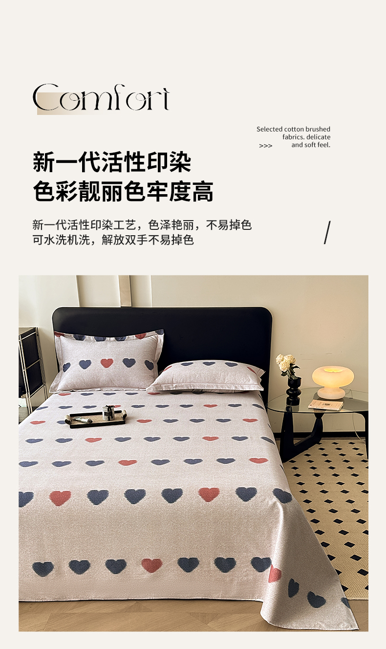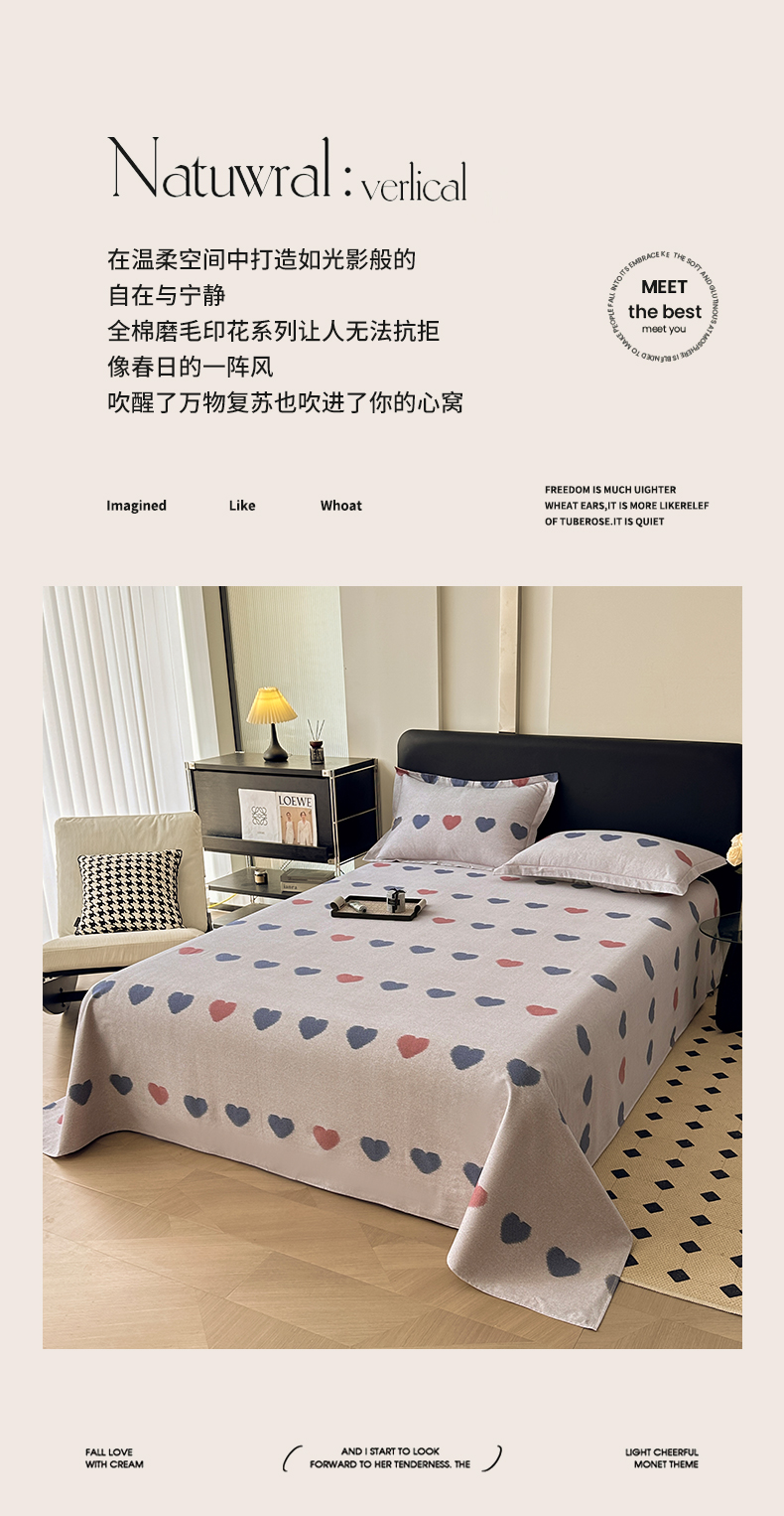 商品名称:大柏树 2025新款A类全棉磨毛印花单床单 满心欢喜