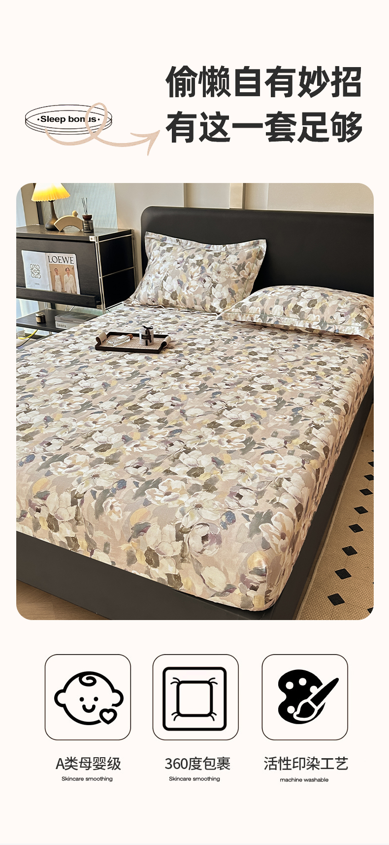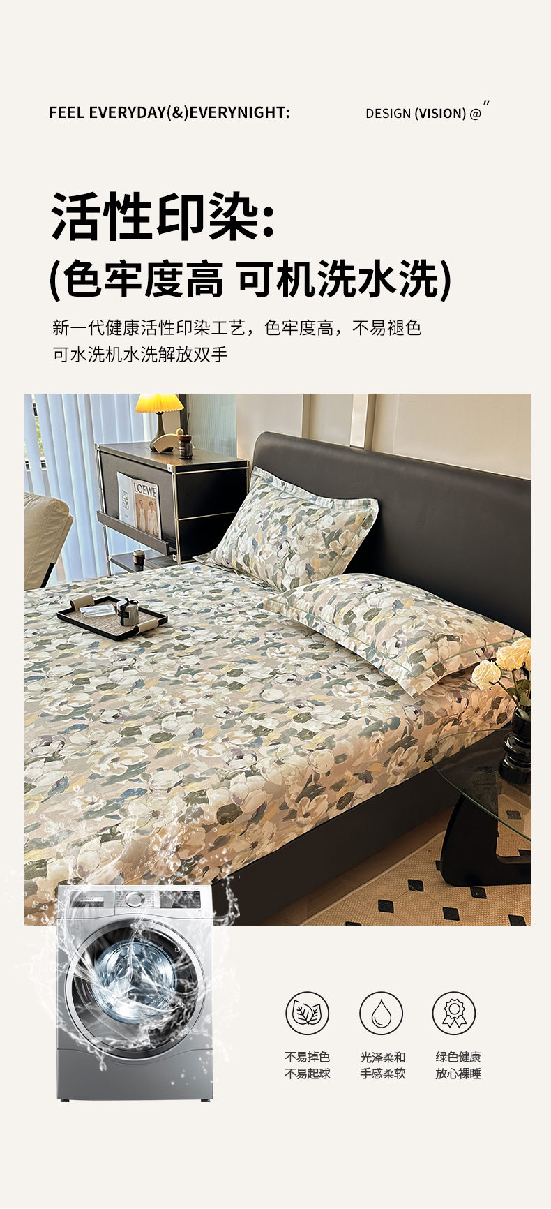 商品名称:大柏树 2025新款A类全棉磨毛印花单床笠 露瑶绿