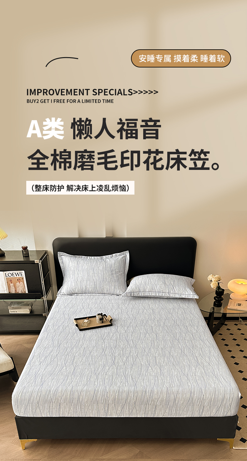 商品名称:大柏树 2025新款A类全棉磨毛印花单床笠 寻意
