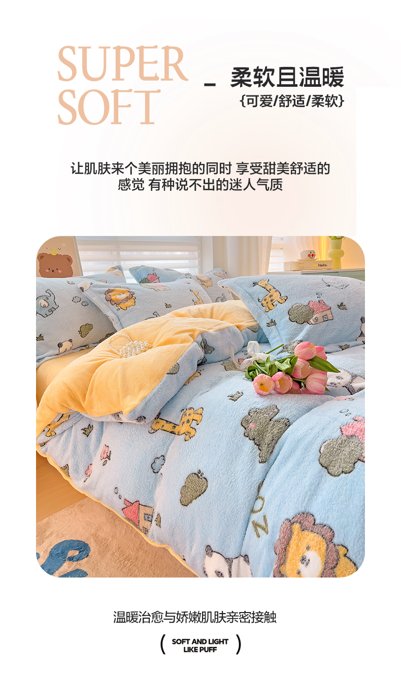 (总)韩巢家纺 2025新款高克重雪花绒牛奶绒四件套,田园兔(黄),爱心熊(绿),巴丽娜,丛林,大白鹅,大耳朵兔,蝶雅,动物世界,花花世界,欢乐小熊,灰色轨迹,咖色熊,库骆米,快乐熊猫,煤小球(粉),米菲,奶油小猫,七彩,天使女孩,小怪兽,小煤球,幸运兔,英伦熊,郁金香