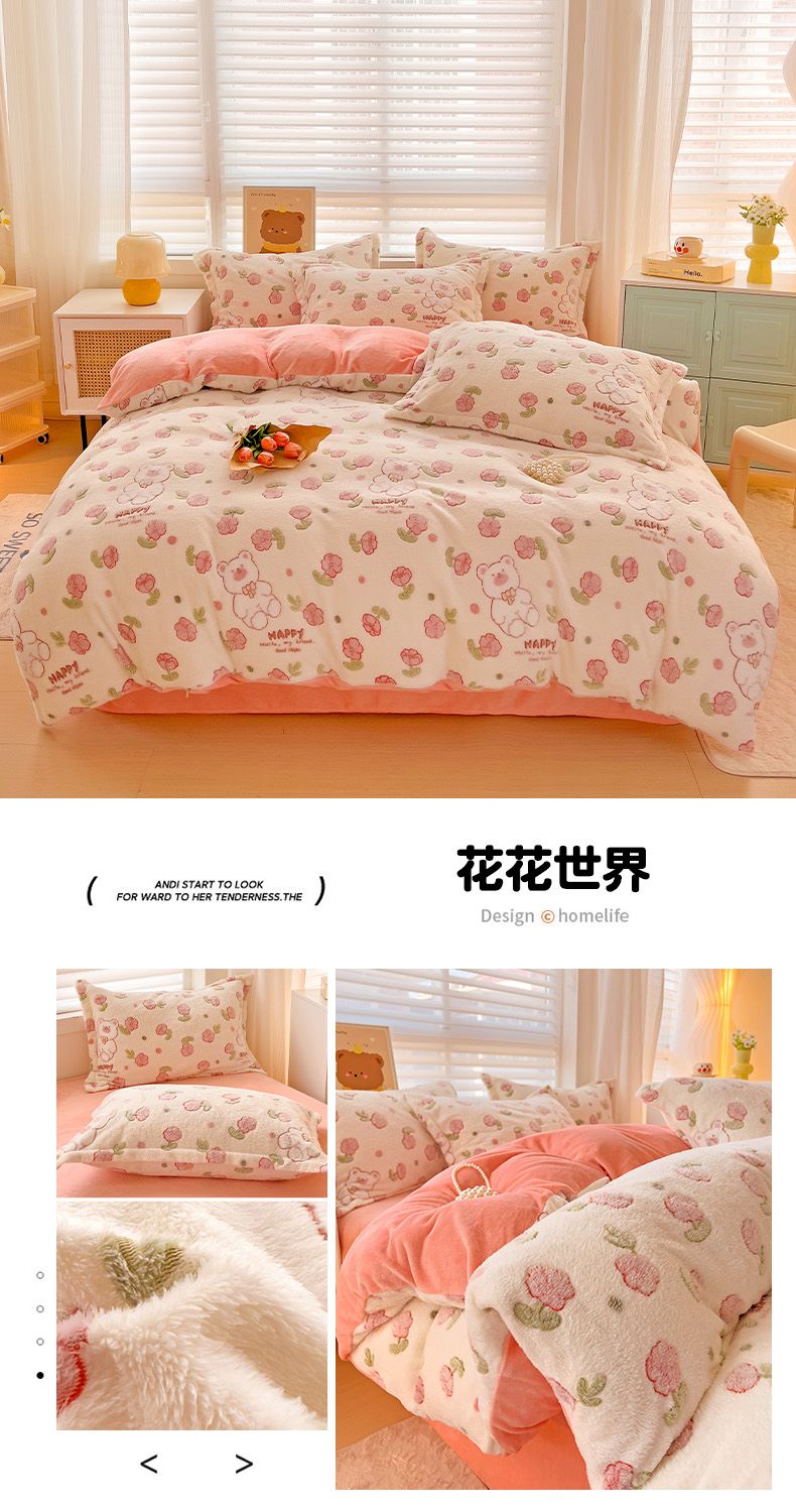 韩巢家纺 2025新款高克重印花牛奶绒床品四件套 田园小花,田园小花