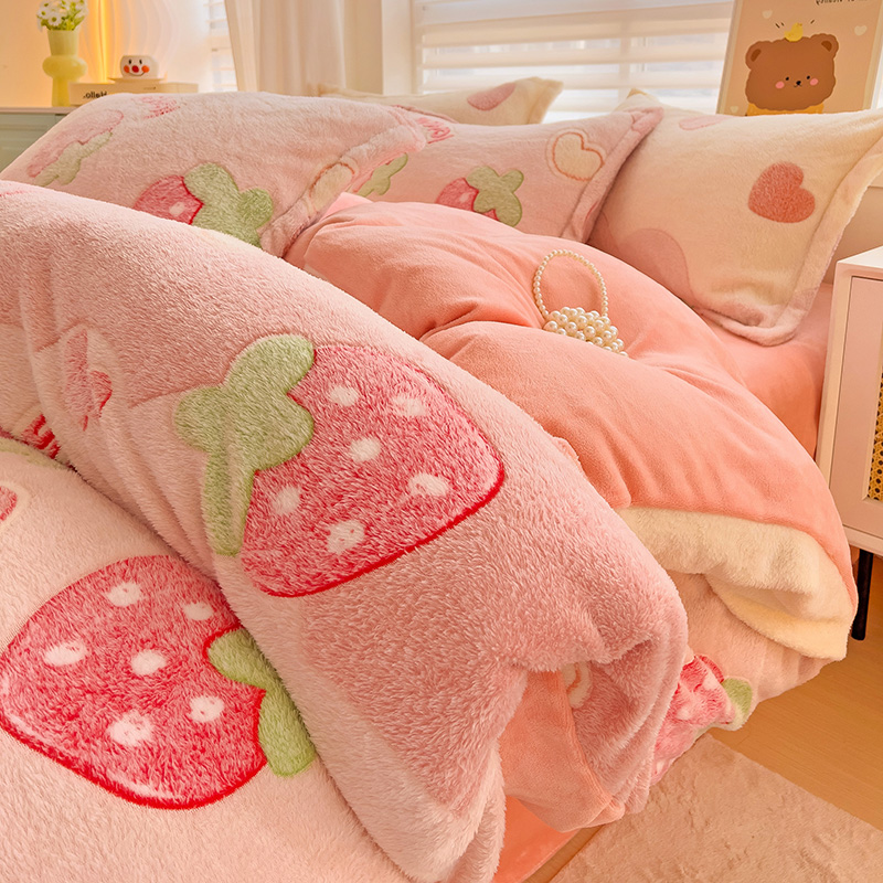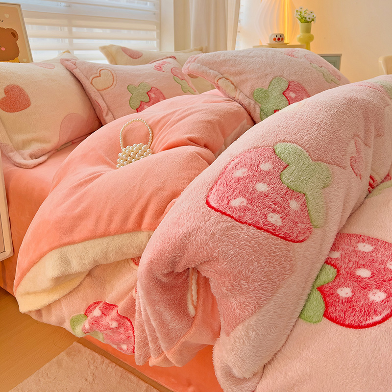 (总)韩巢家纺 2025新款奶呼呼云感双层纱印花四件套,米倾心,爱如星辰,半生倾慕,春风十里,粉相思,海像森林,落日暮年,猫猫晚宴,猫咪恋人,偏偏宠爱,葡萄七分甜,奇妙小熊,森田野园,树林小小龙,兔子的欢喜,小猫时光篮,邮一颗草莓,有草莓的地方,紫倾心