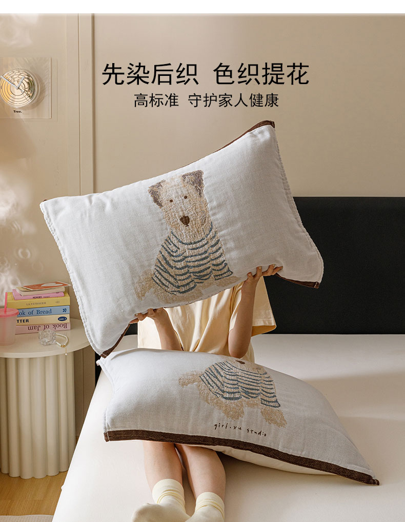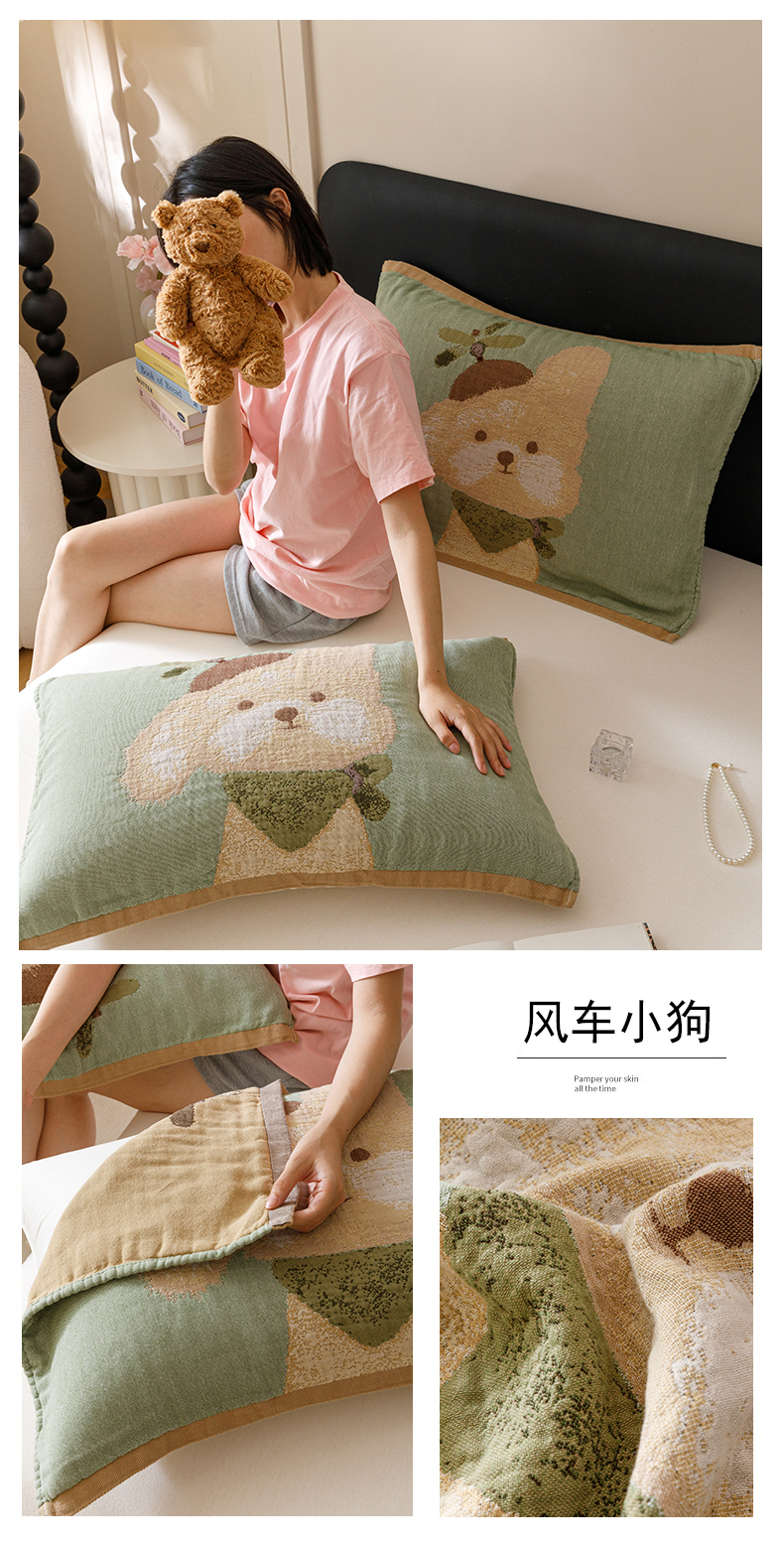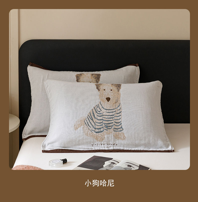 • 91家纺网 家纺一手货源 找家纺 麻依 2024新款纯棉纱布枕巾一对装全棉四层纱布54*78cm/对 狗狗伙伴