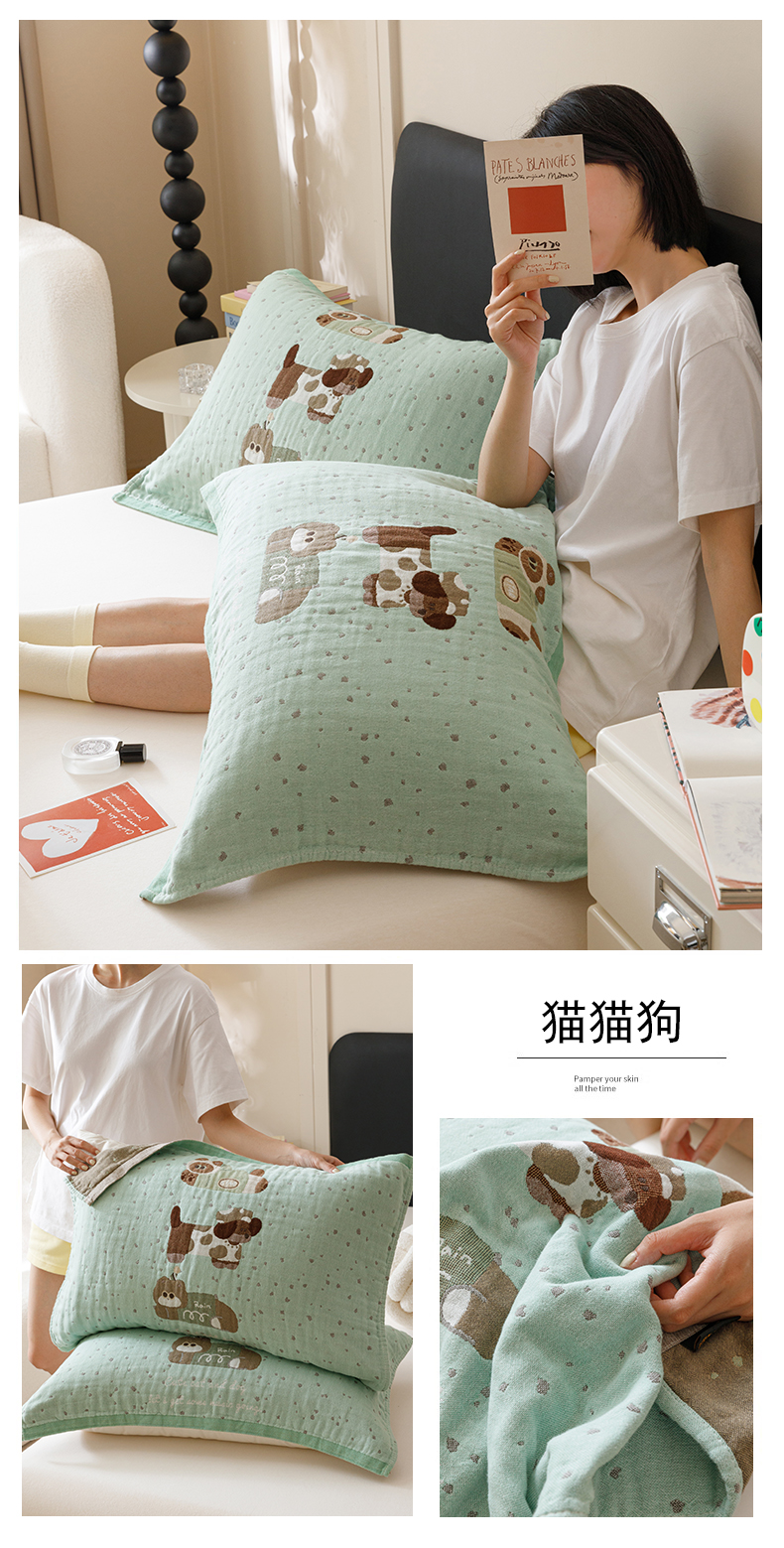(总)麻依 2025新款安心棉枕套四层纱布枕套,组合图仅供展示不可下单,彩虹点点,点点蝴蝶结-白,点点蝴蝶结-粉,搞怪猫,韩系小樱桃,焦糖草莓,兰溪,漫语,梅屿-绿,梅屿-驼,木栖,小波点,伊慕,樱桃红了