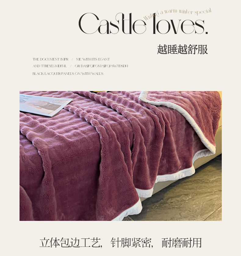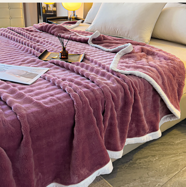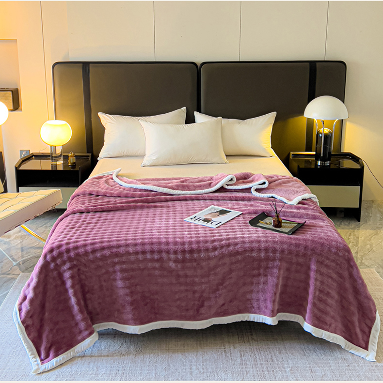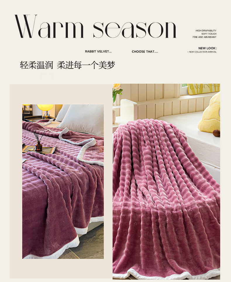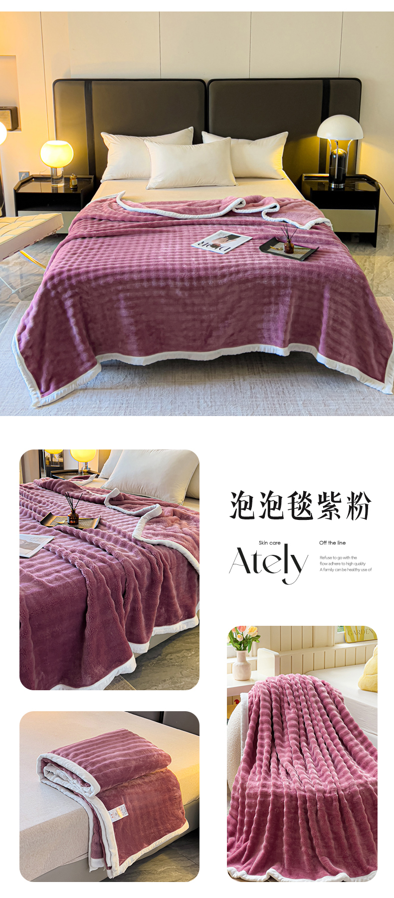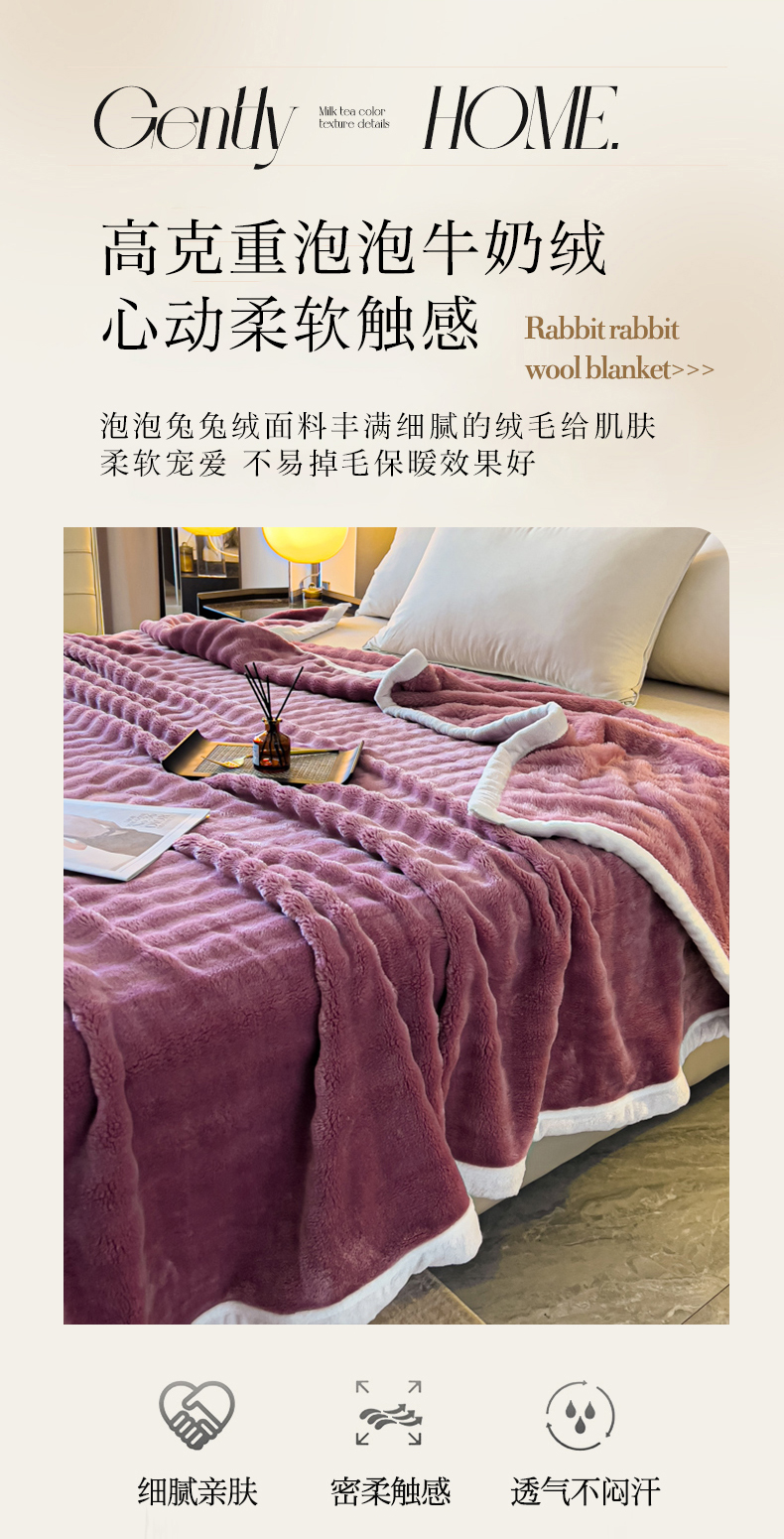 慕克斯家纺 2024新款泡泡毯兔毛绒牛奶绒毛毯兔兔绒毛毯毯子 泡泡毯紫粉