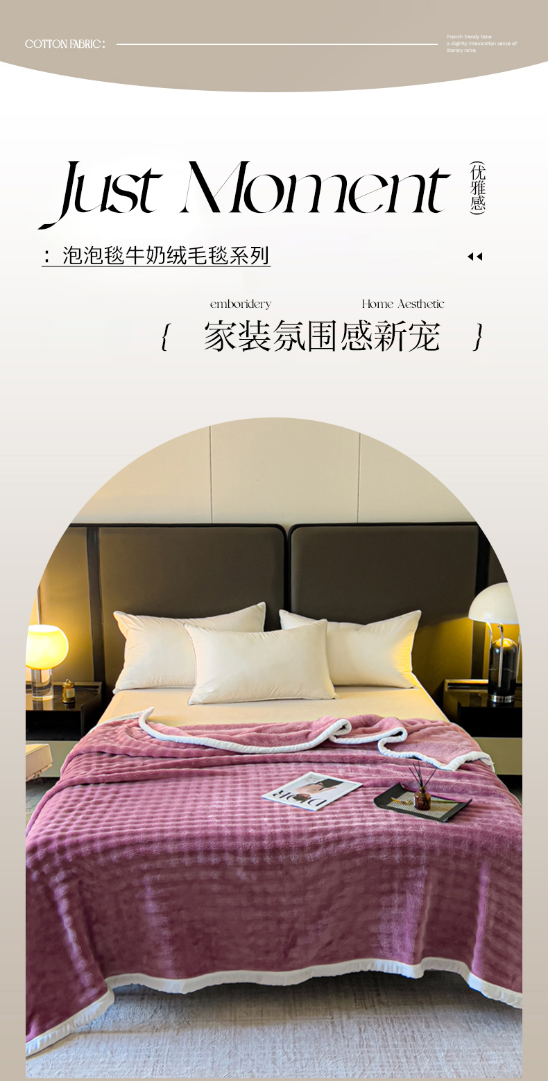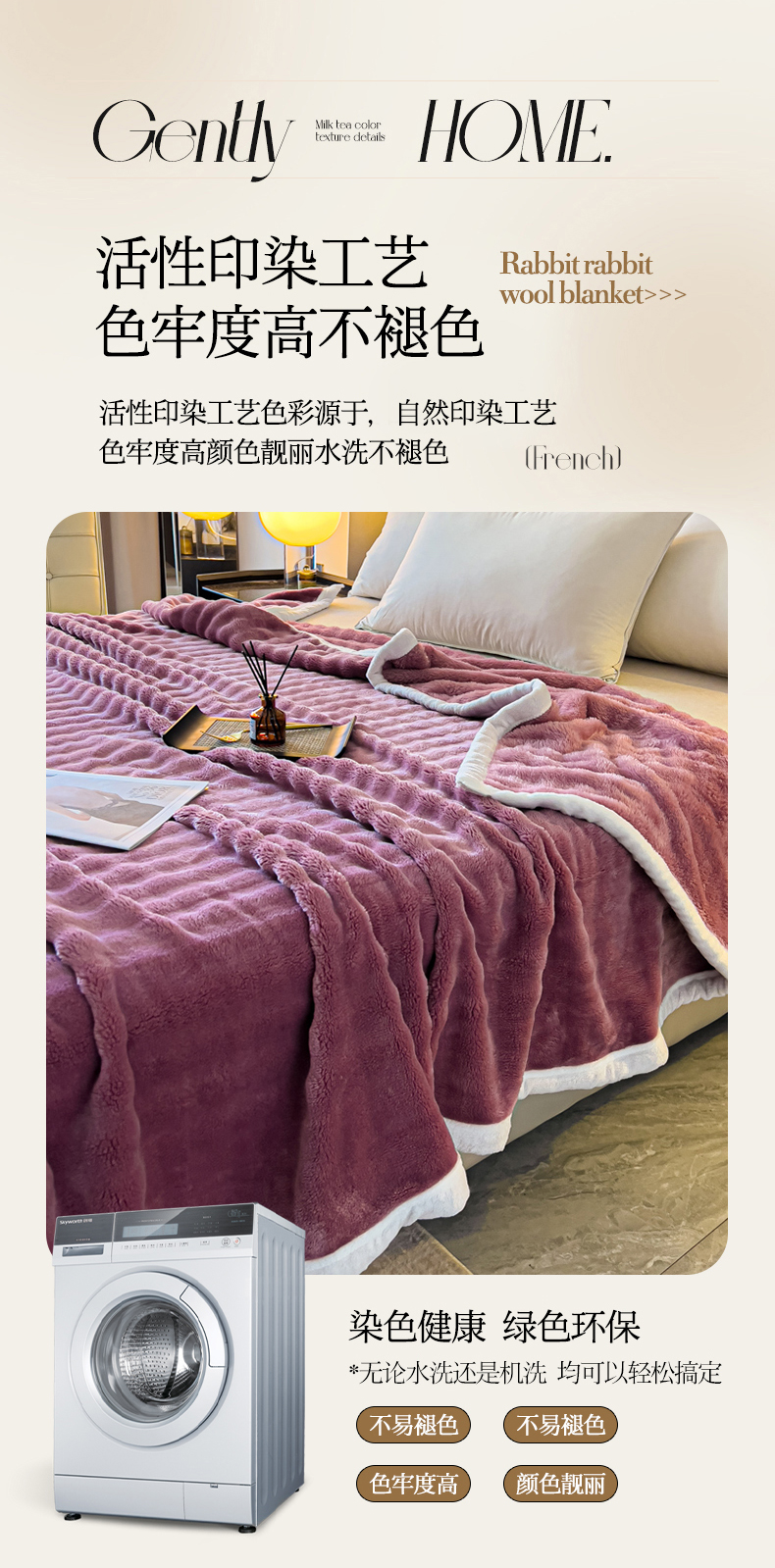 商品名称:慕克斯家纺 2024新款泡泡毯兔毛绒牛奶绒毛毯兔兔绒毛毯毯子 泡泡毯紫粉