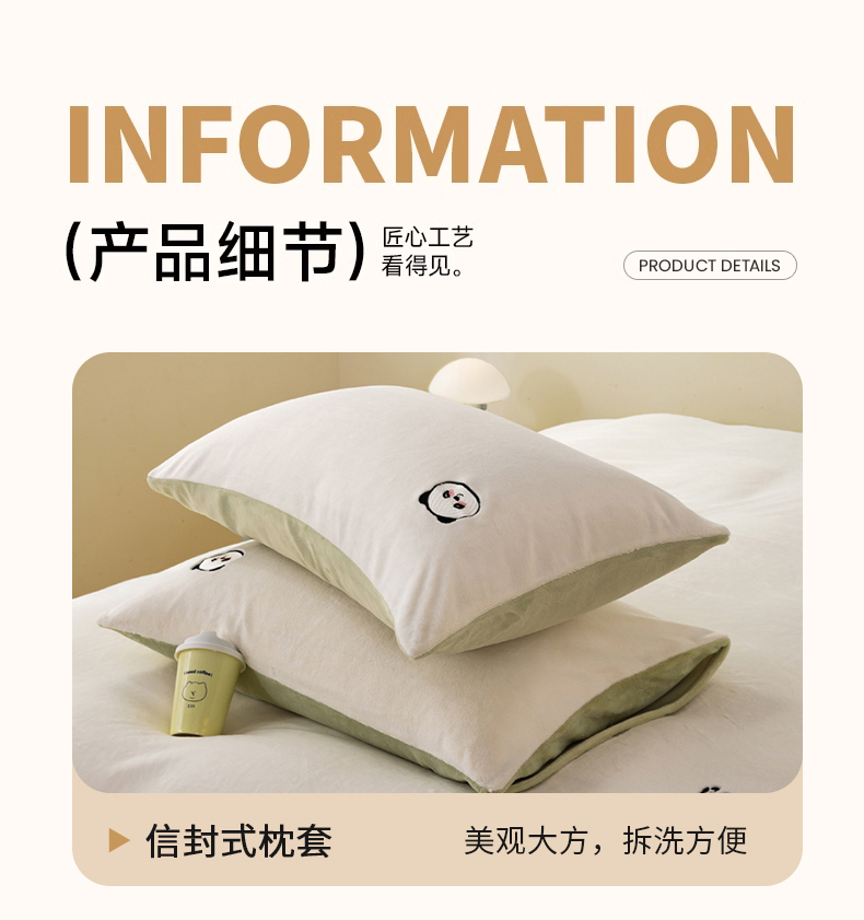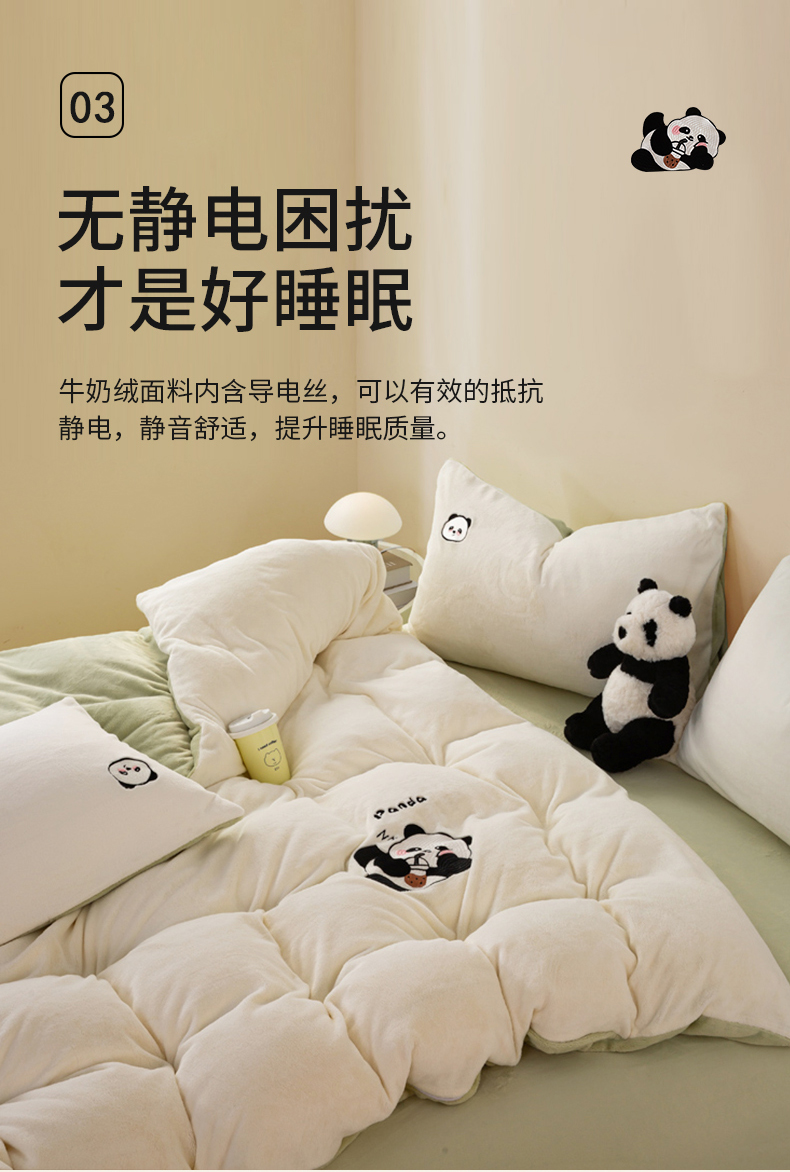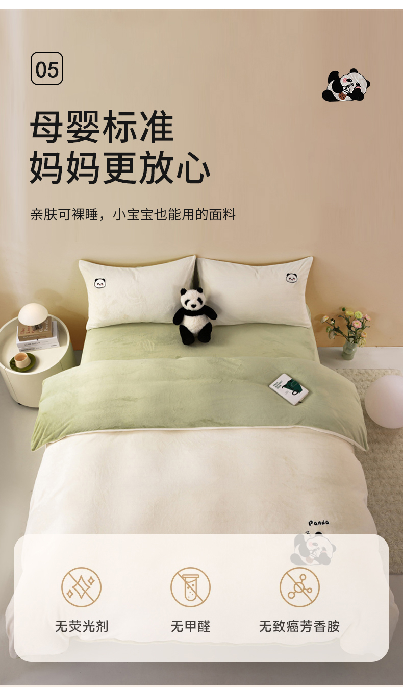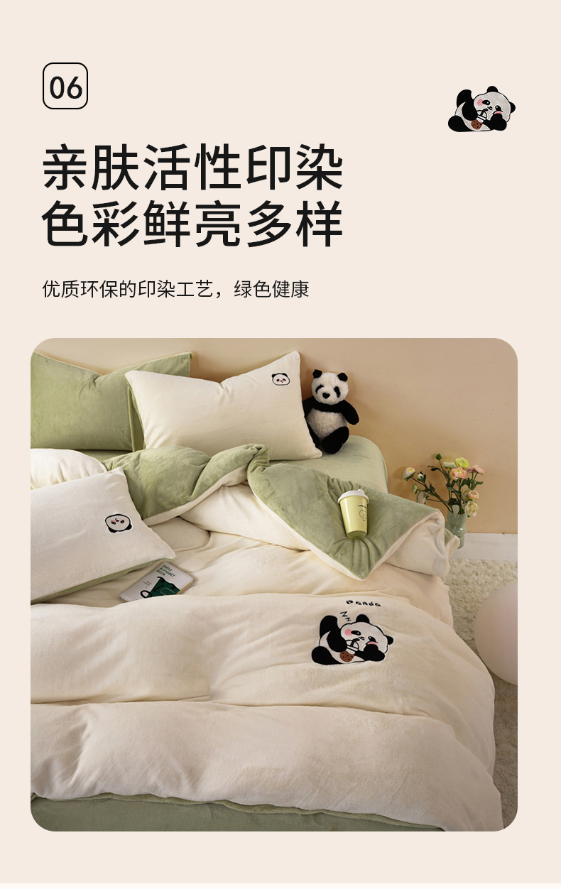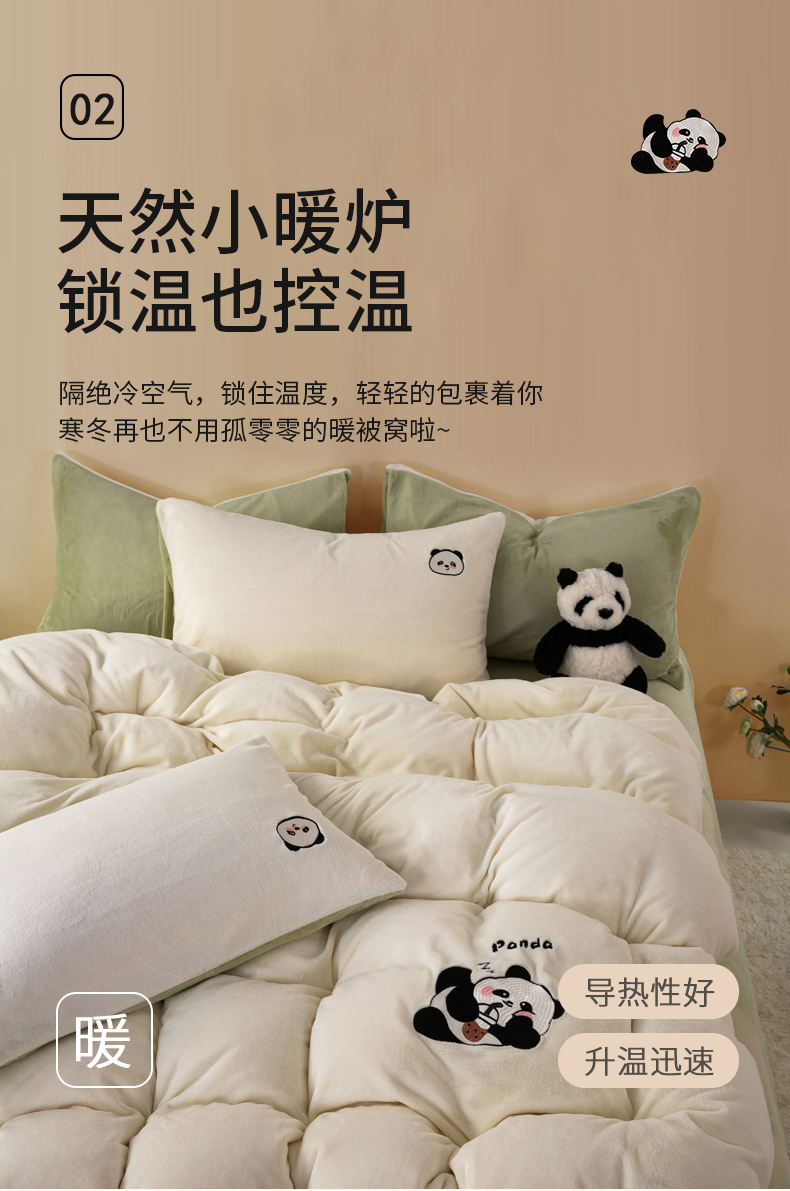 当前位置: 91家纺网 > 商品网购 > 床品套件 > 四件套 > 牛奶绒四件套 > 沐晴家纺 2024新品秋冬加厚牛奶绒纯色简约绣花卡通四件套 熊猫(白+草绿)