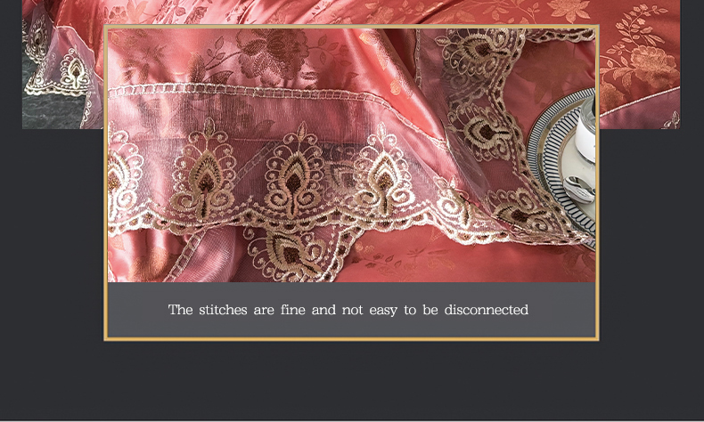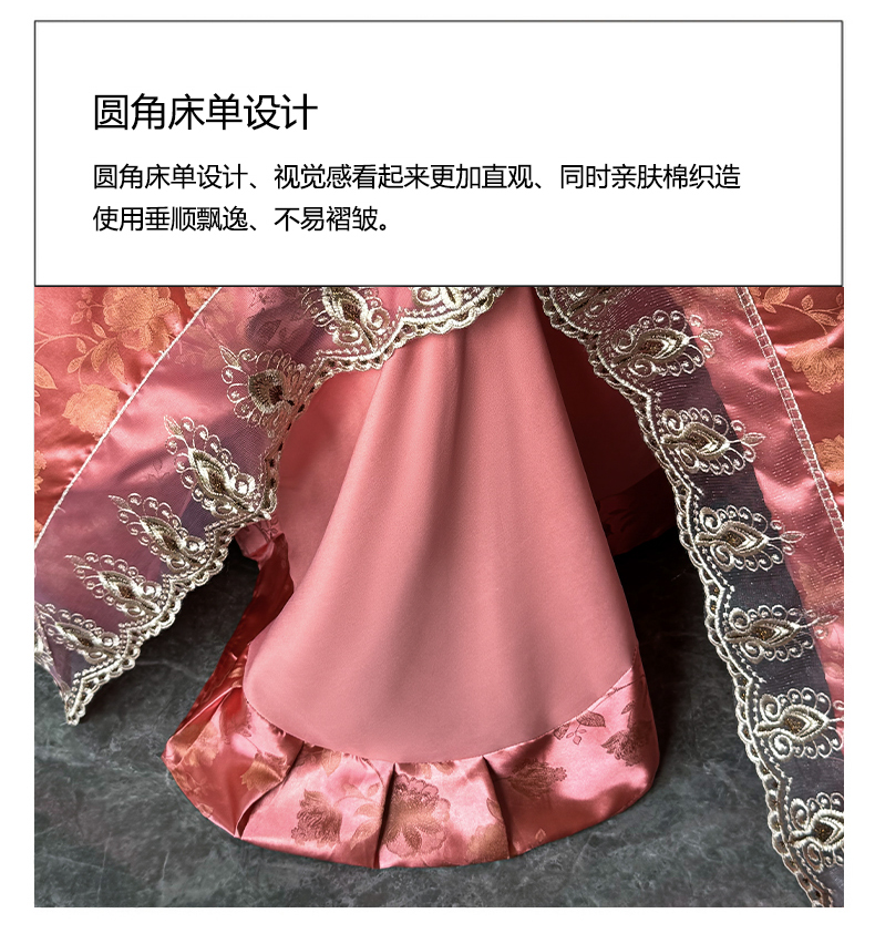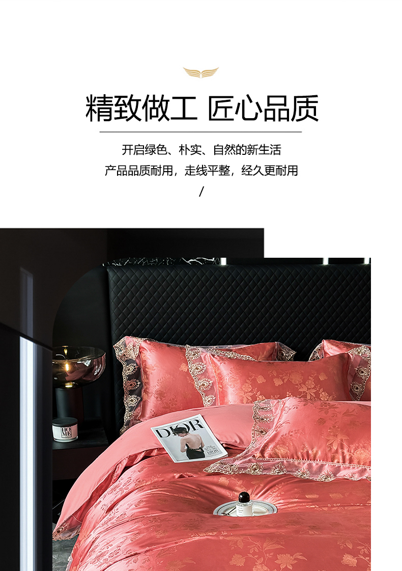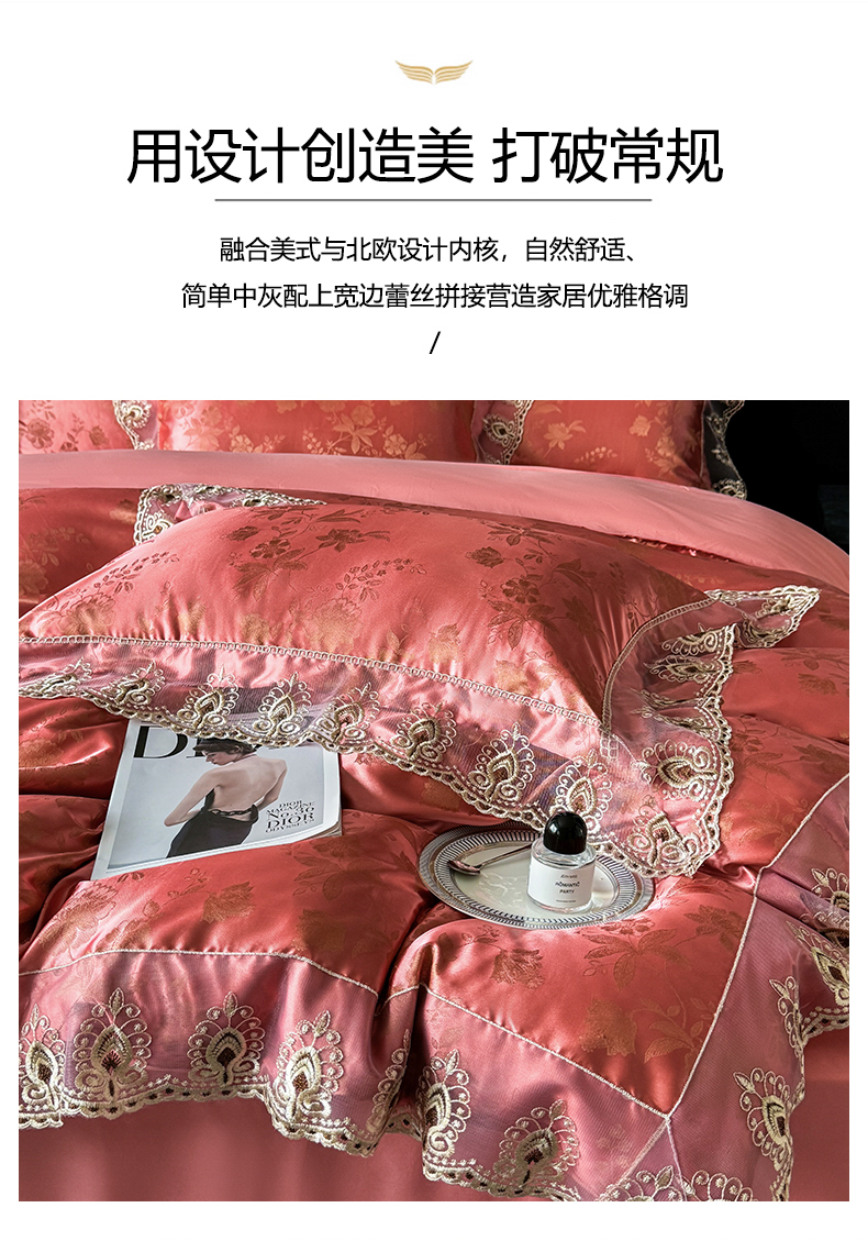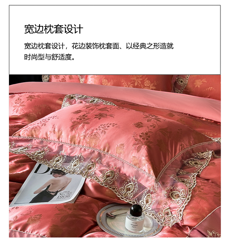 商品名称:七夜居 2025新款蕾丝花边欧式贡缎提花四件套礼盒装 花漾-红