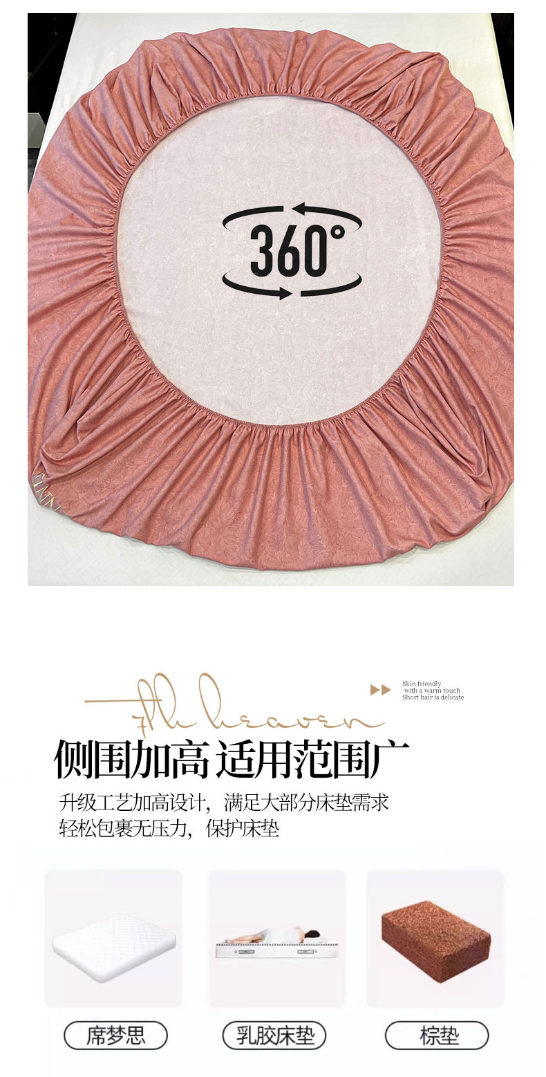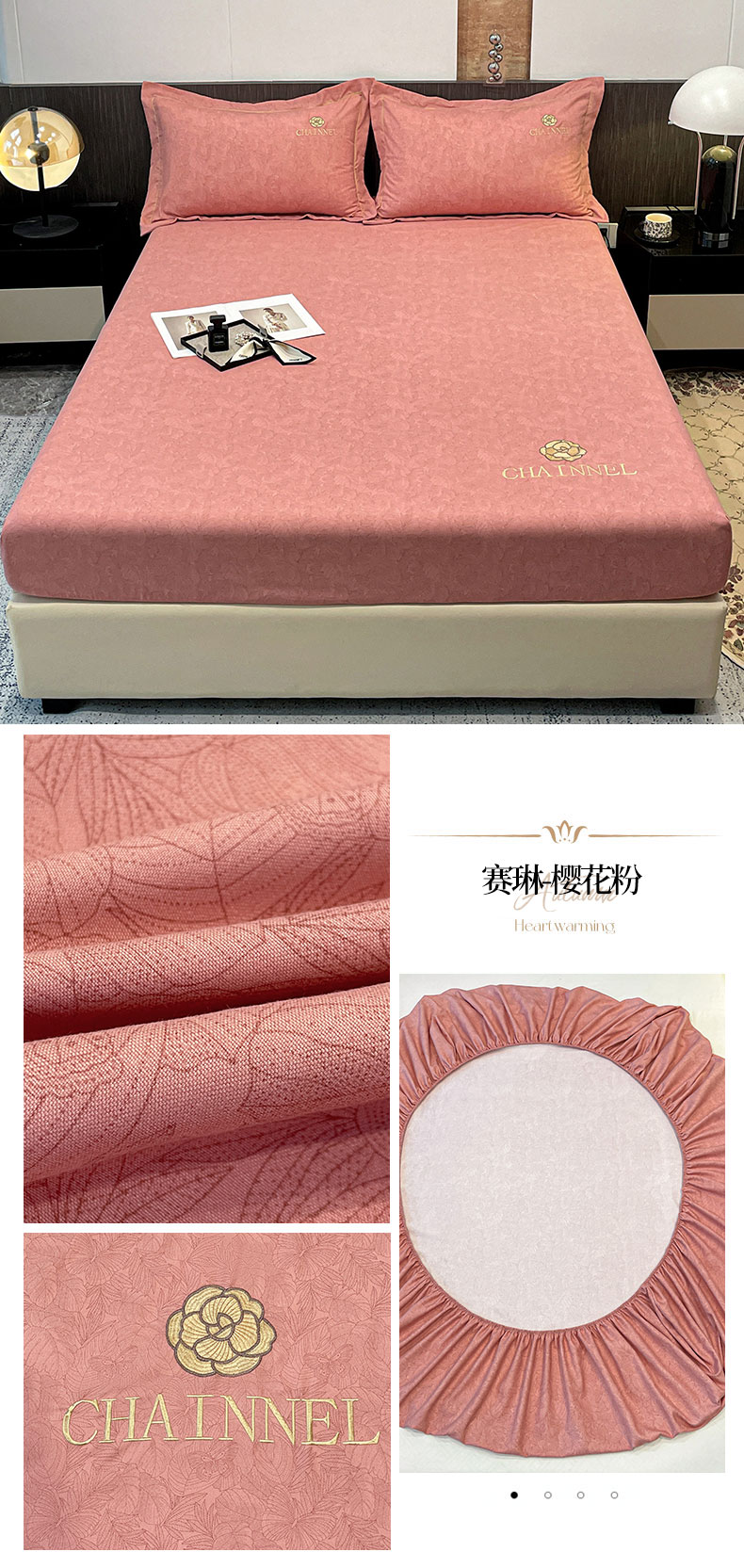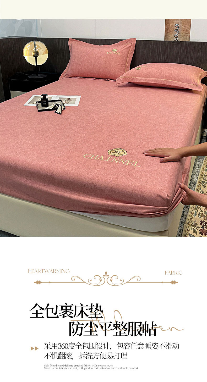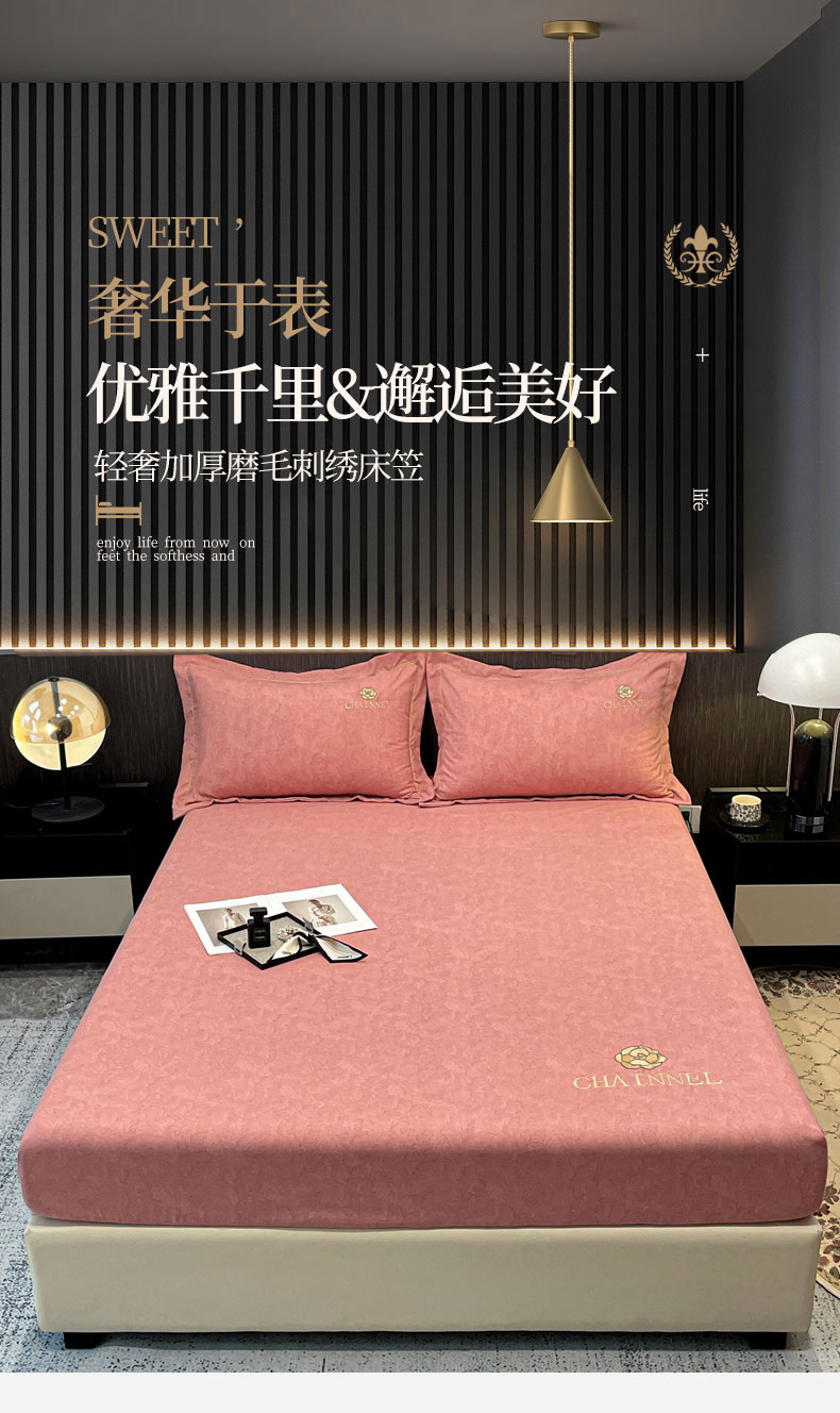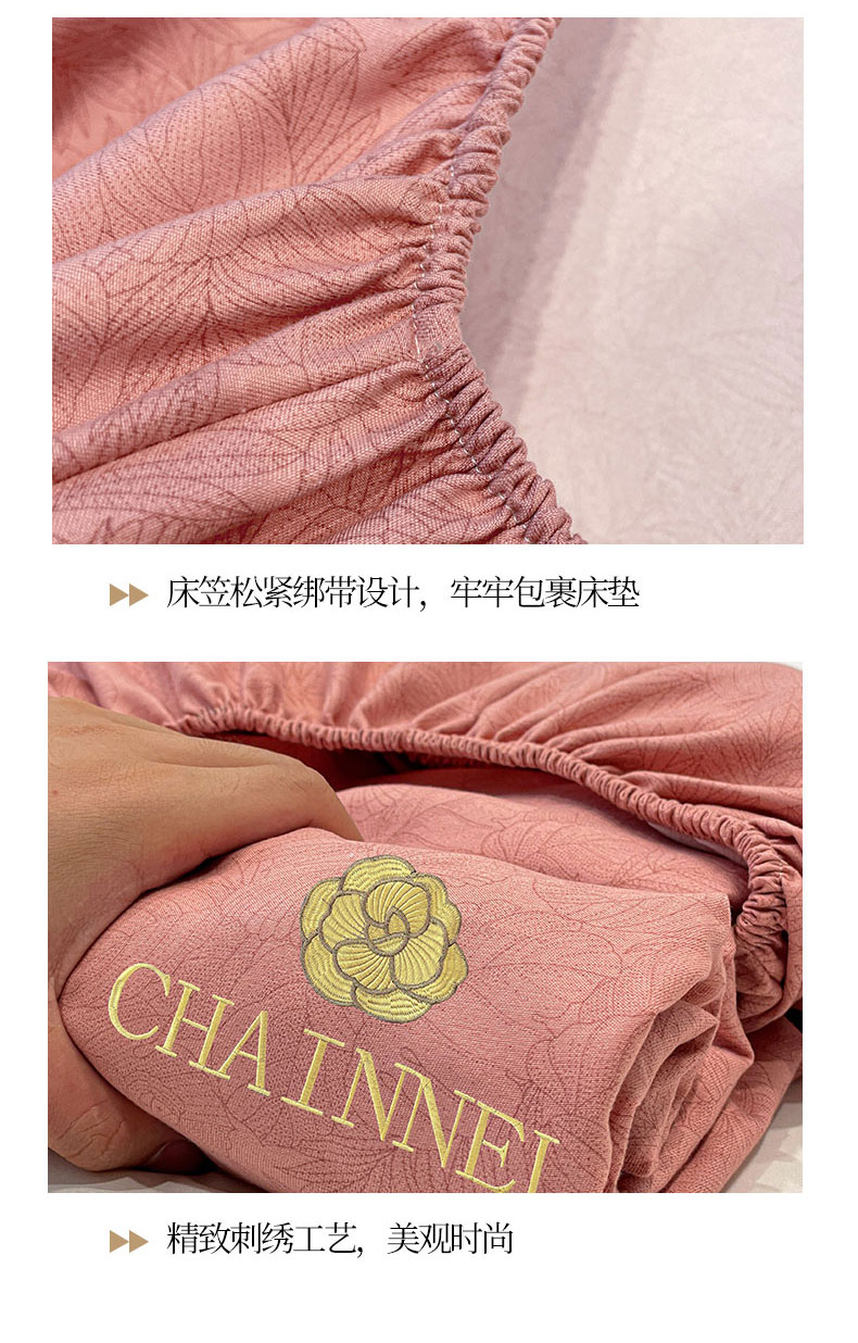 商品名称:灰鲸 2025新款秋冬加厚磨毛刺绣床笠 赛琳-樱花粉