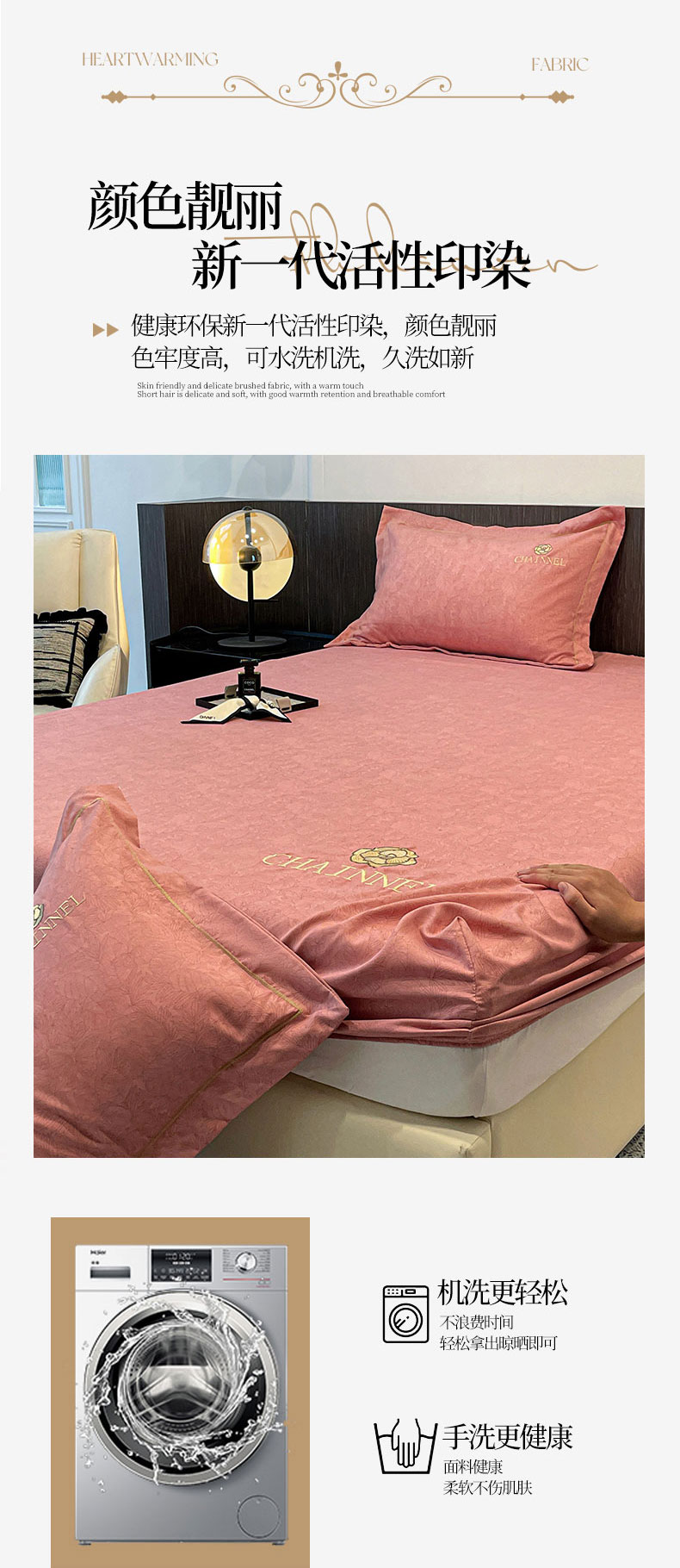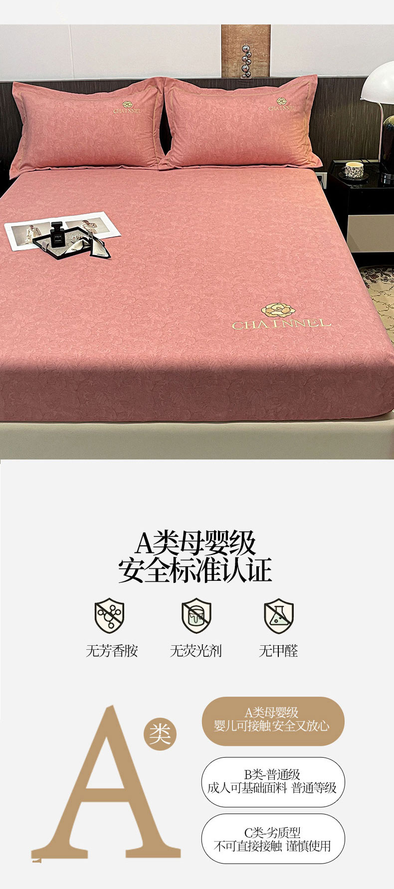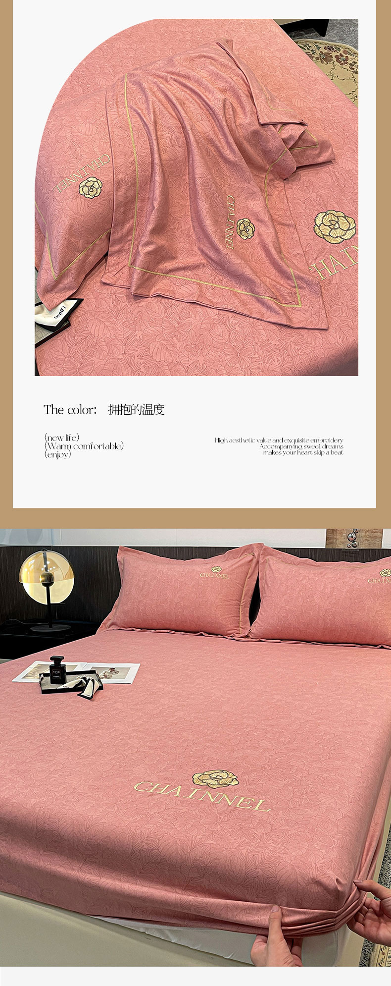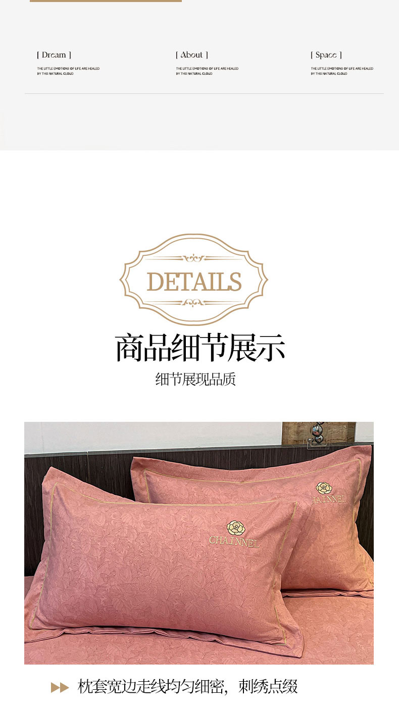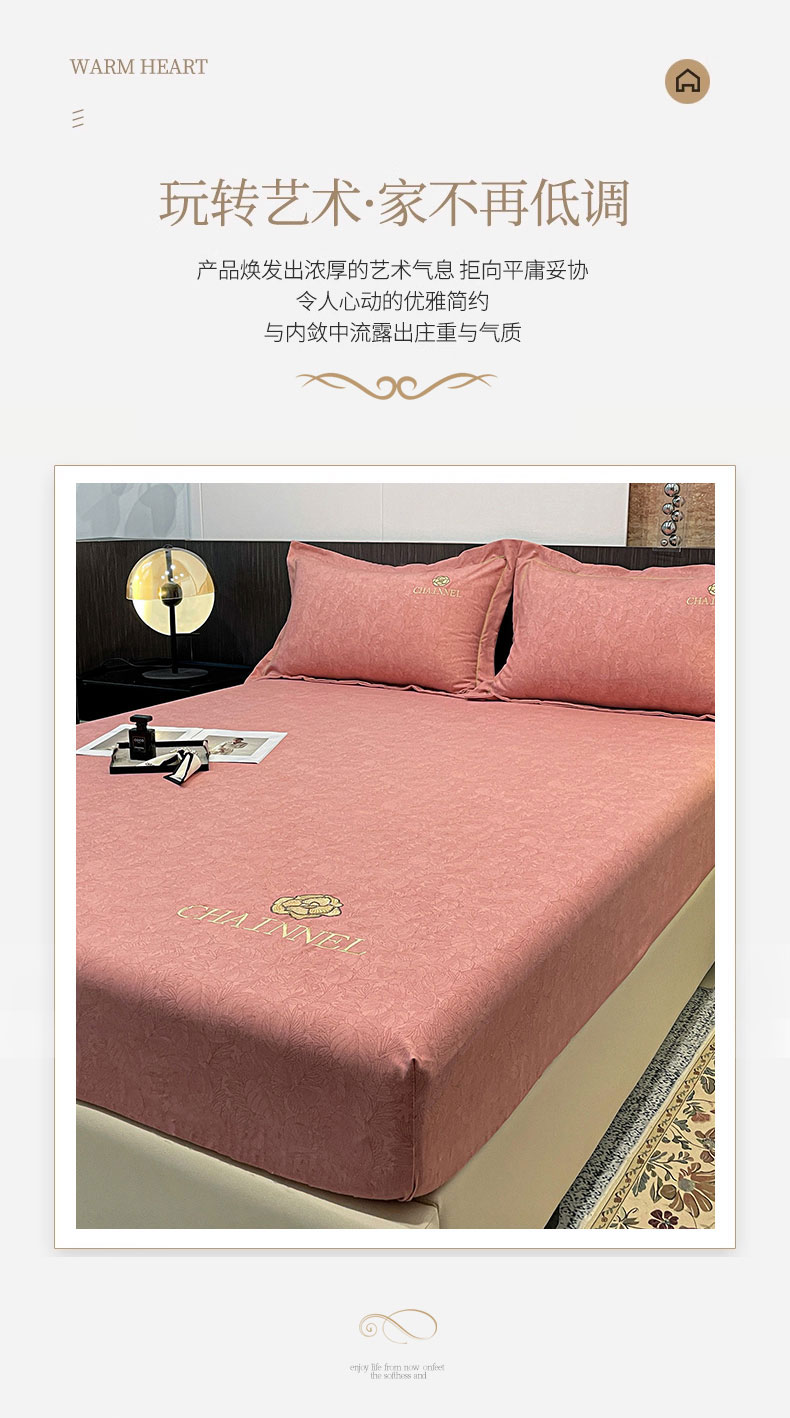 商品名称:灰鲸 2025新款秋冬加厚磨毛刺绣床笠 赛琳-樱花粉