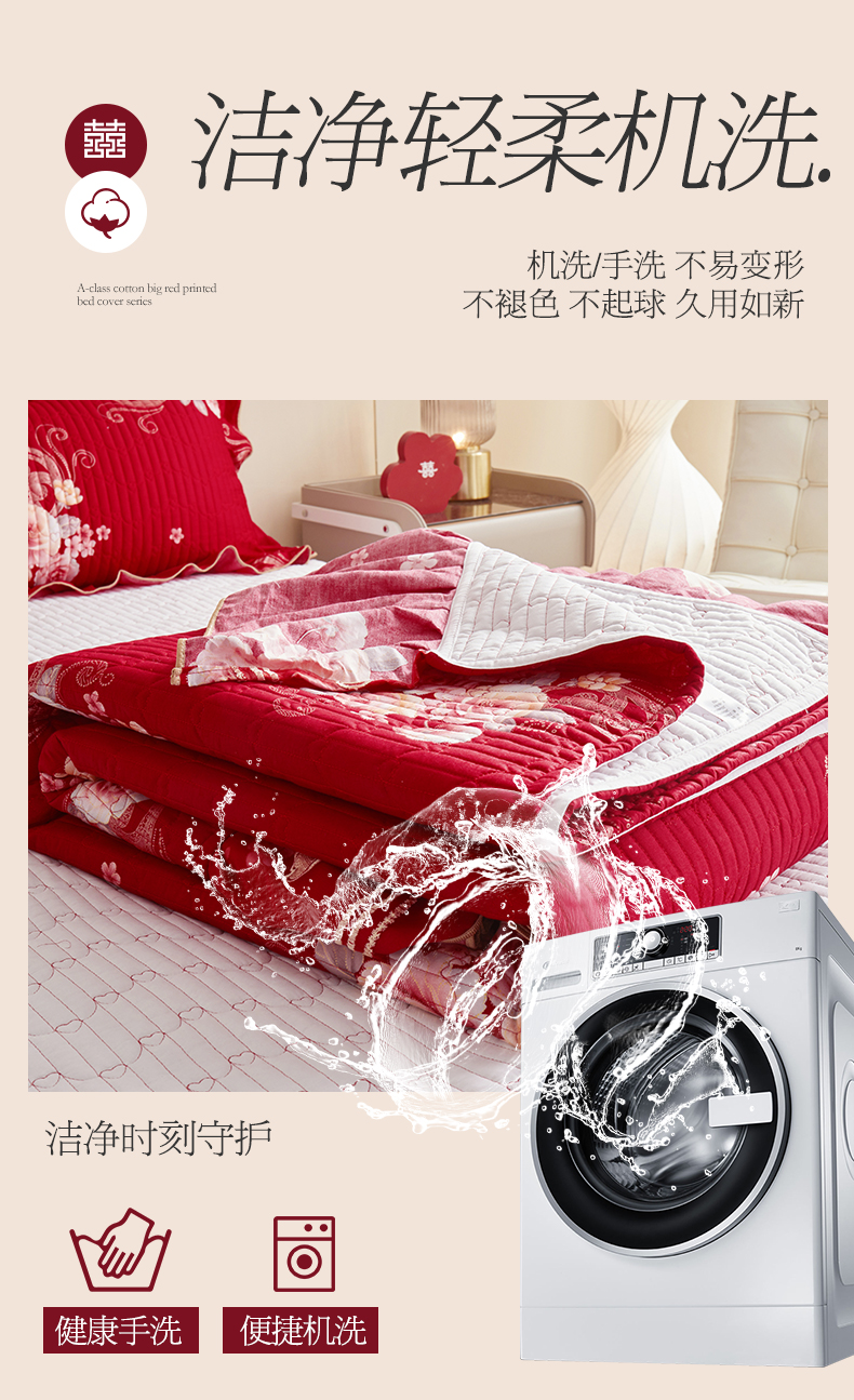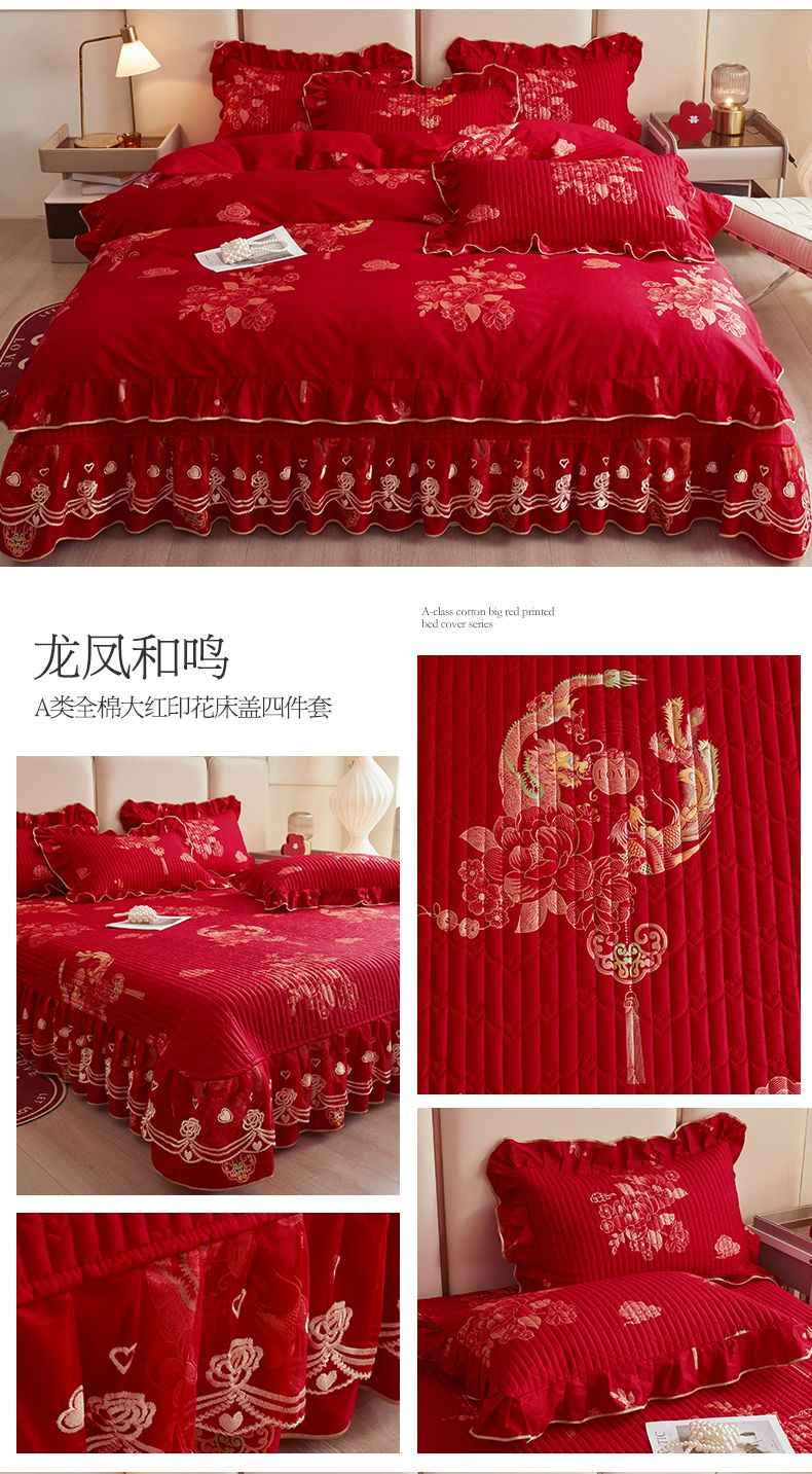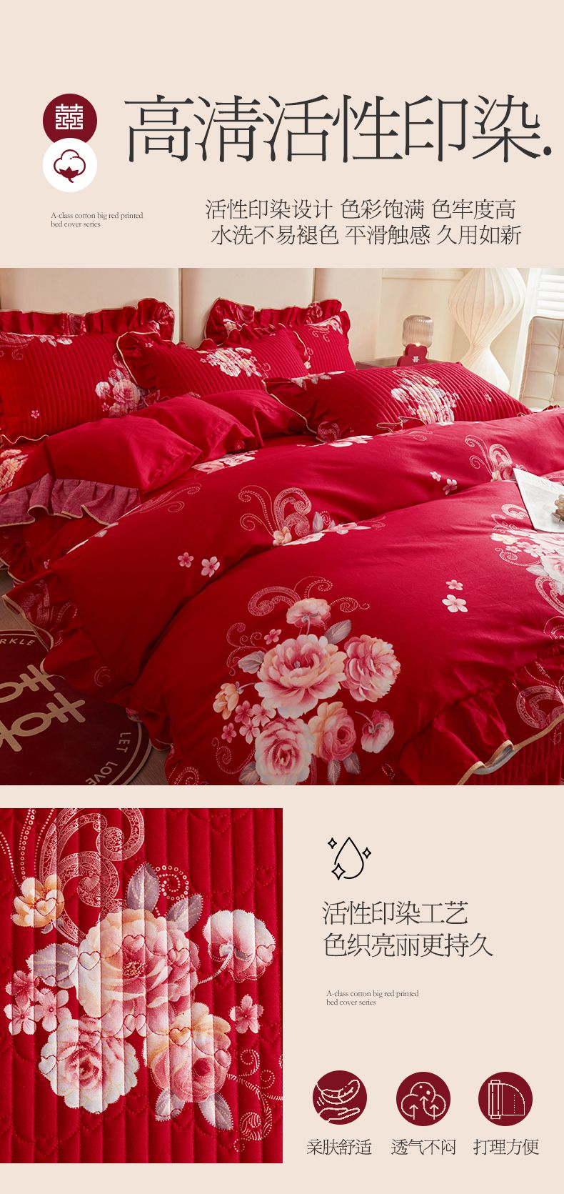 商品名称:宜凡家纺 2024新款A类全棉大红印花床盖四件套 六合同春