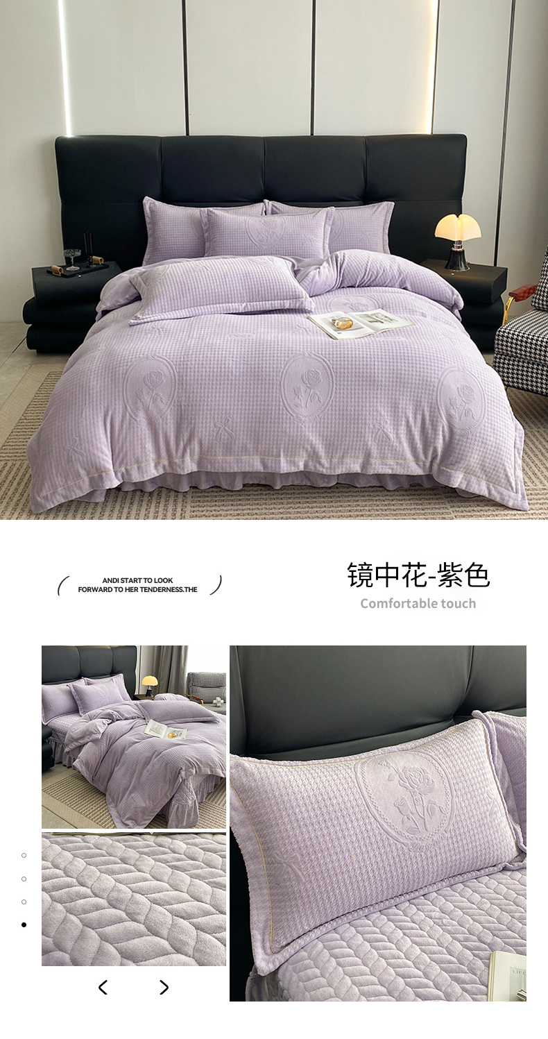 (总)美伦美焕 2025新款加厚雕花绒床盖款四件套-浅叶,浅叶-粉玉,浅叶-卡其,浅叶-绅士灰,浅叶-蔚蓝,浅叶-胭脂红