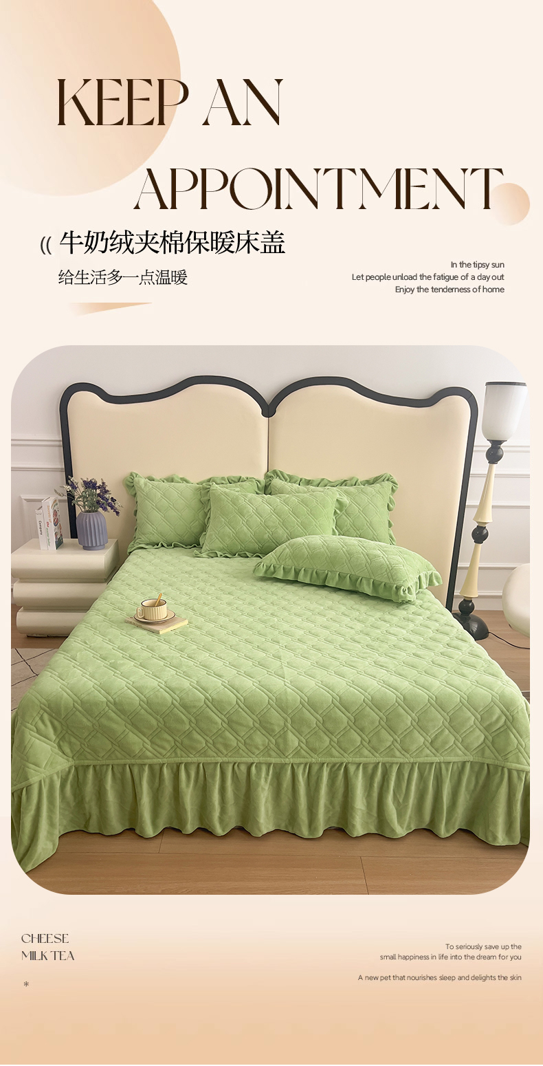 十个点家纺 2024新款牛奶绒夹棉床盖三件套-唯美系列 唯美-果绿