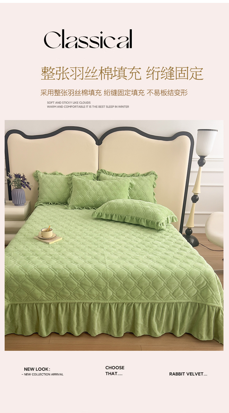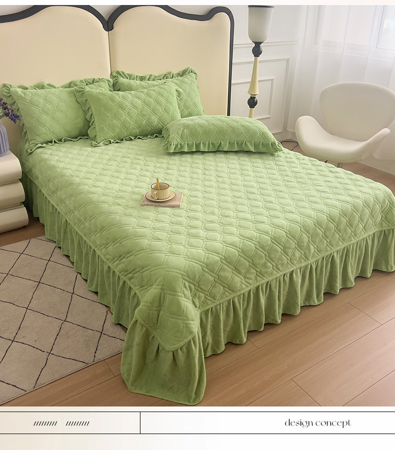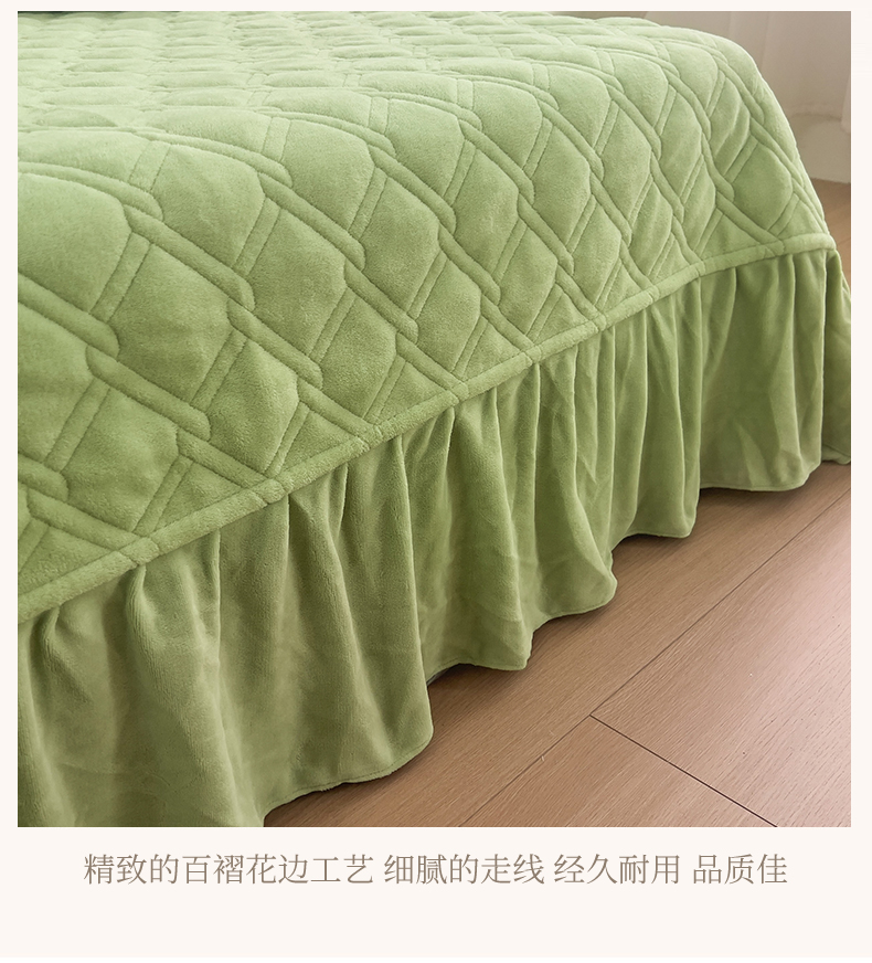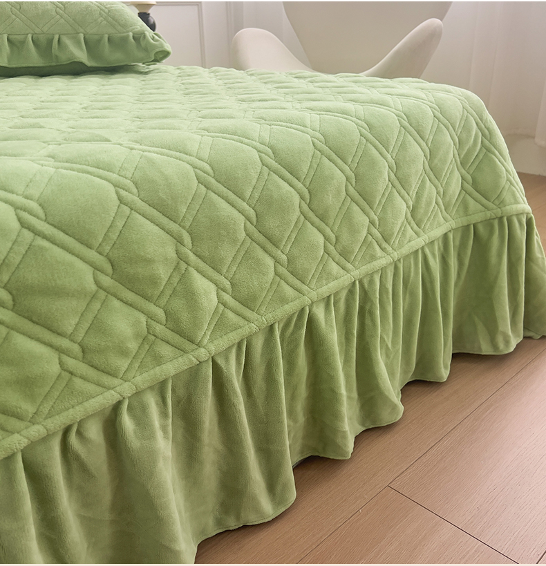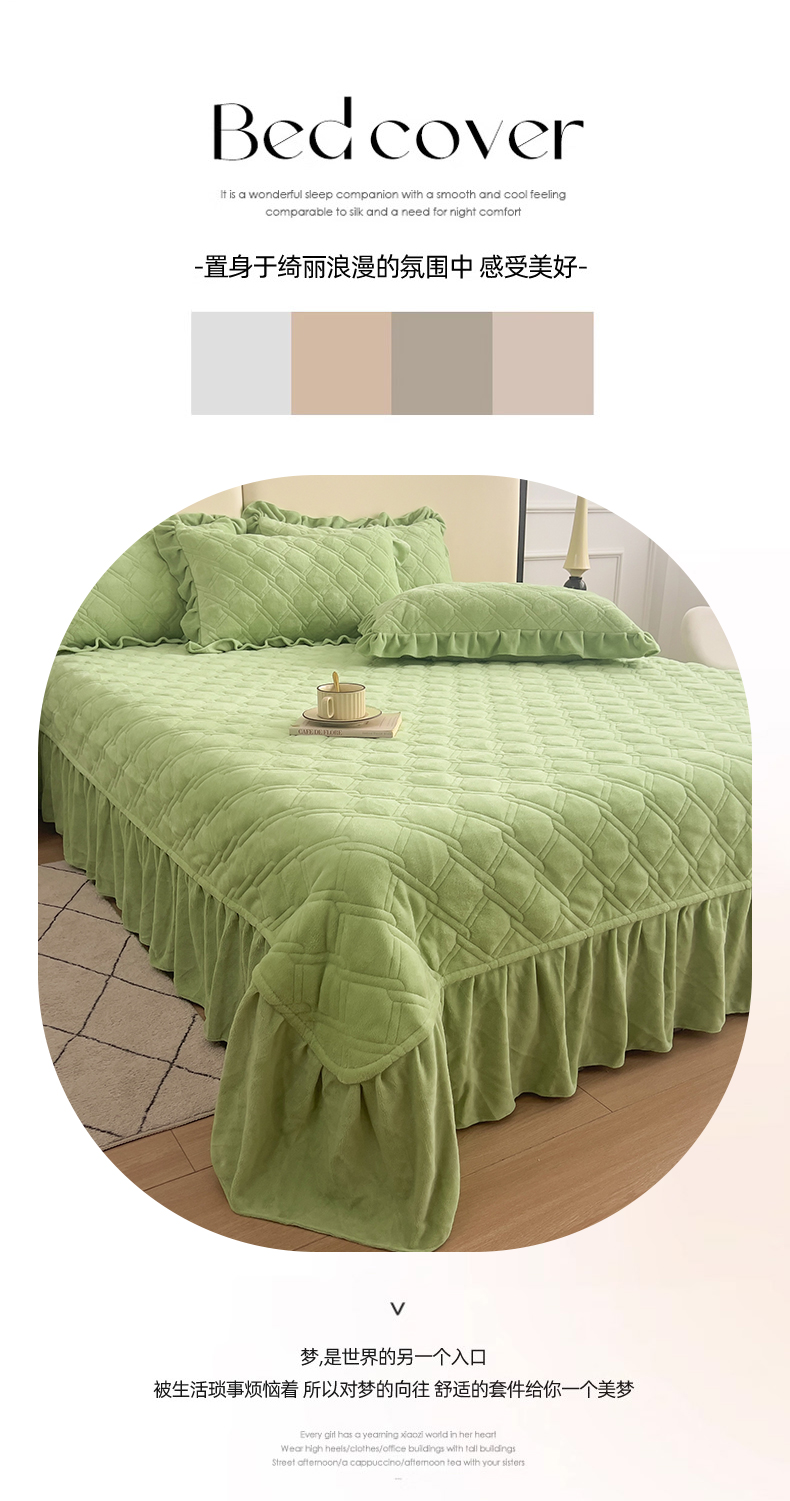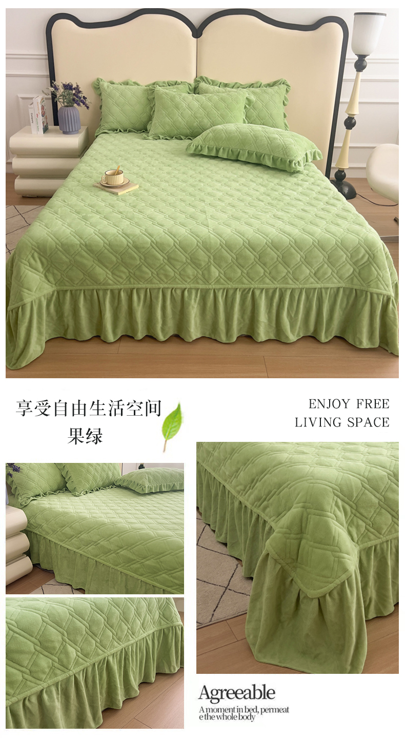 商品名称:十个点家纺 2024新款牛奶绒夹棉床盖三件套-唯美系列 唯美-果绿