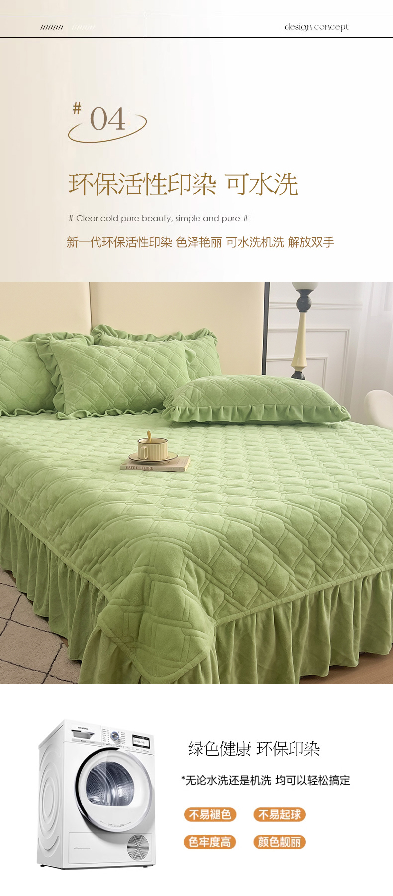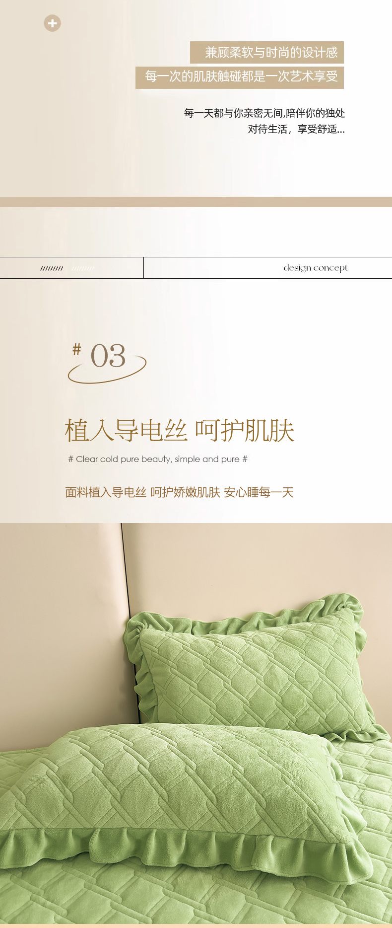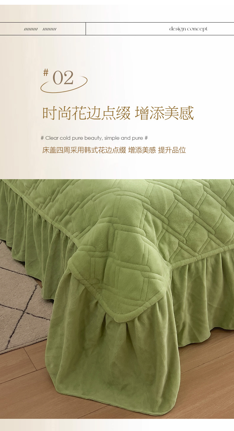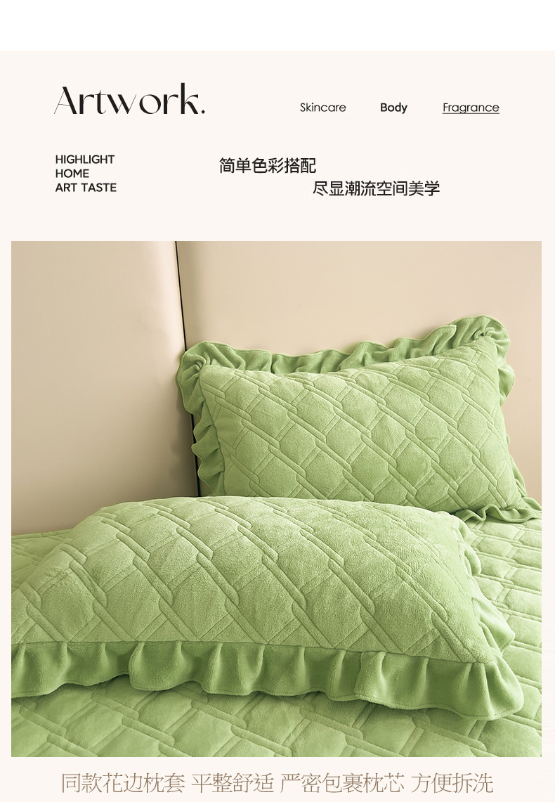 商品名称:十个点家纺 2024新款牛奶绒夹棉床盖三件套-唯美系列 唯美-果绿