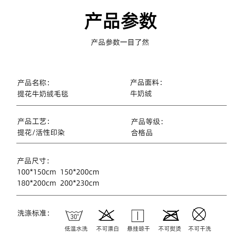 商品名称:春妮家纺 2024新款提花牛奶绒毛毯 蓝灰