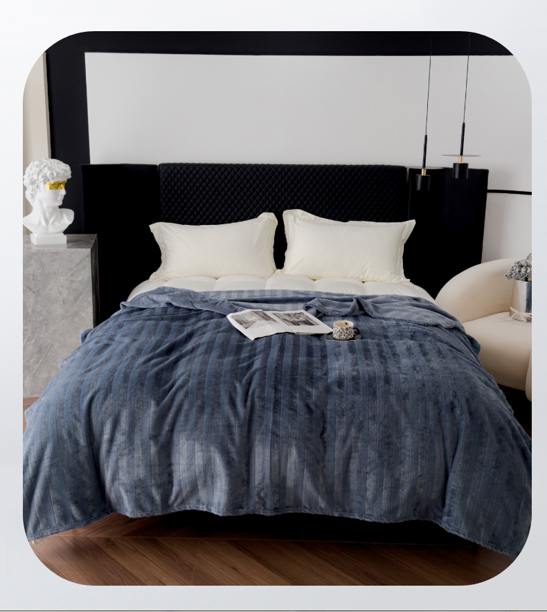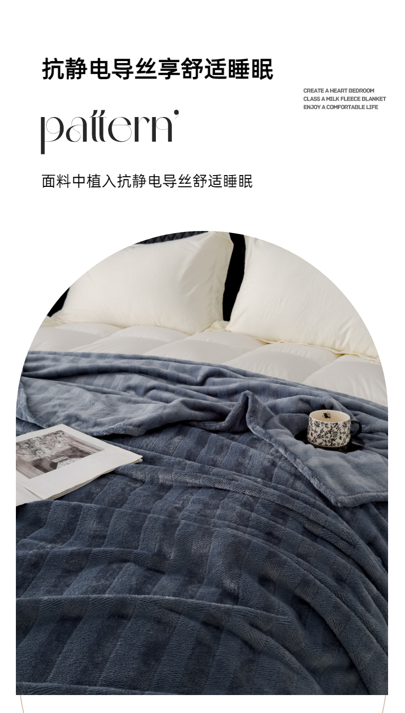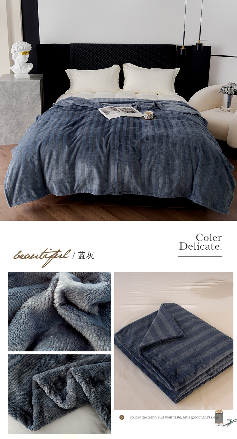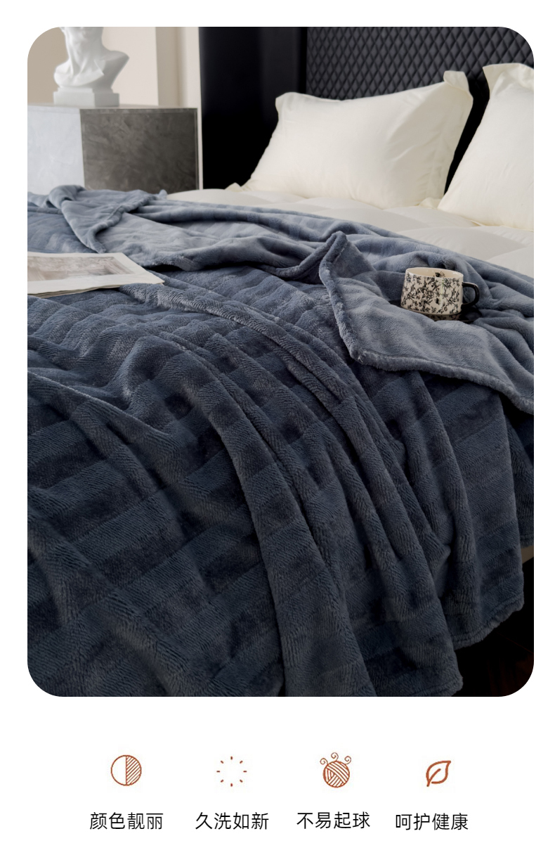 春妮家纺 2024新款提花牛奶绒毛毯 蓝灰
