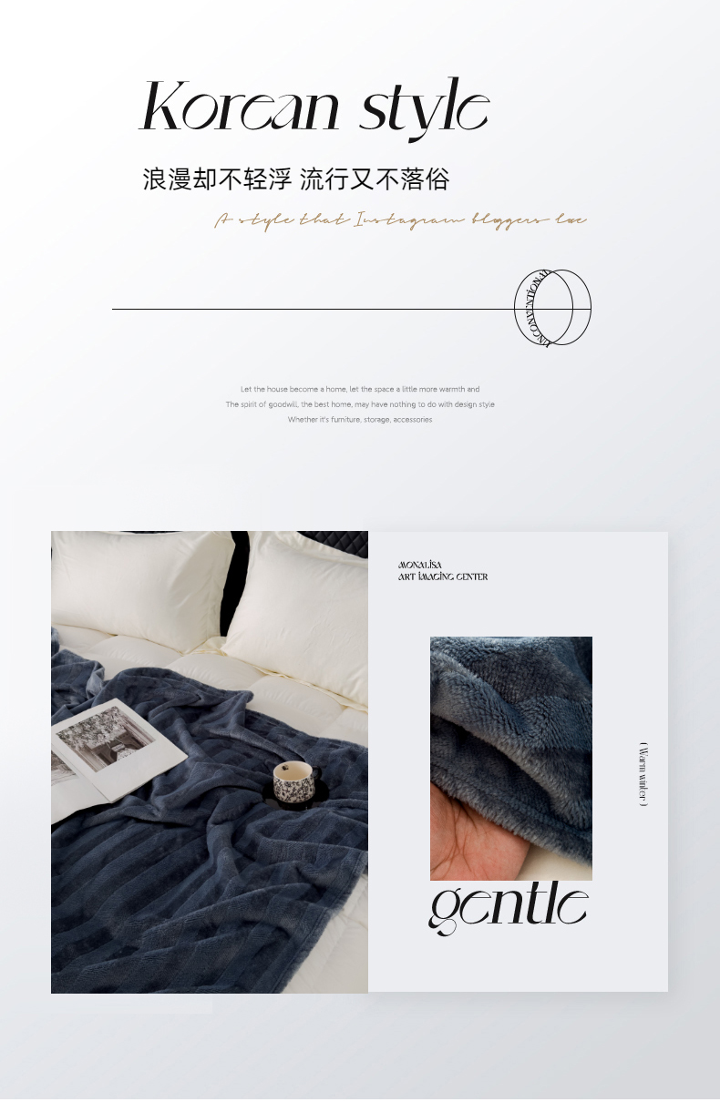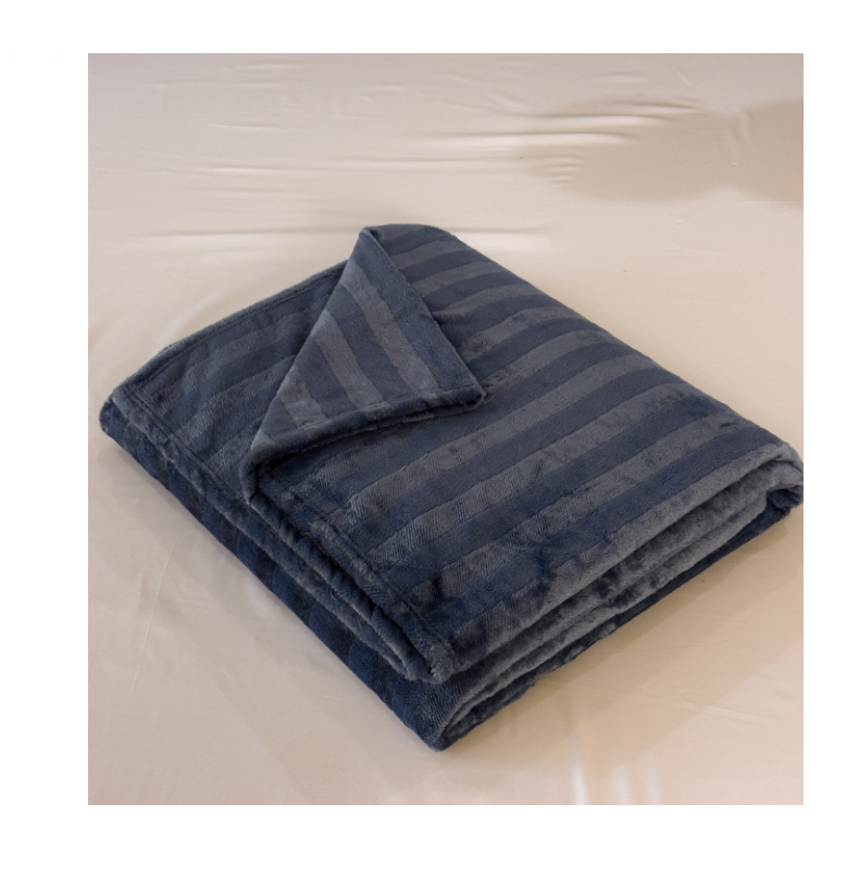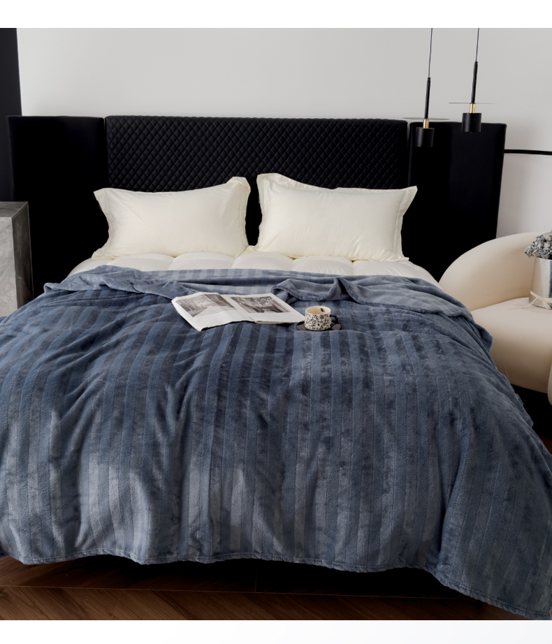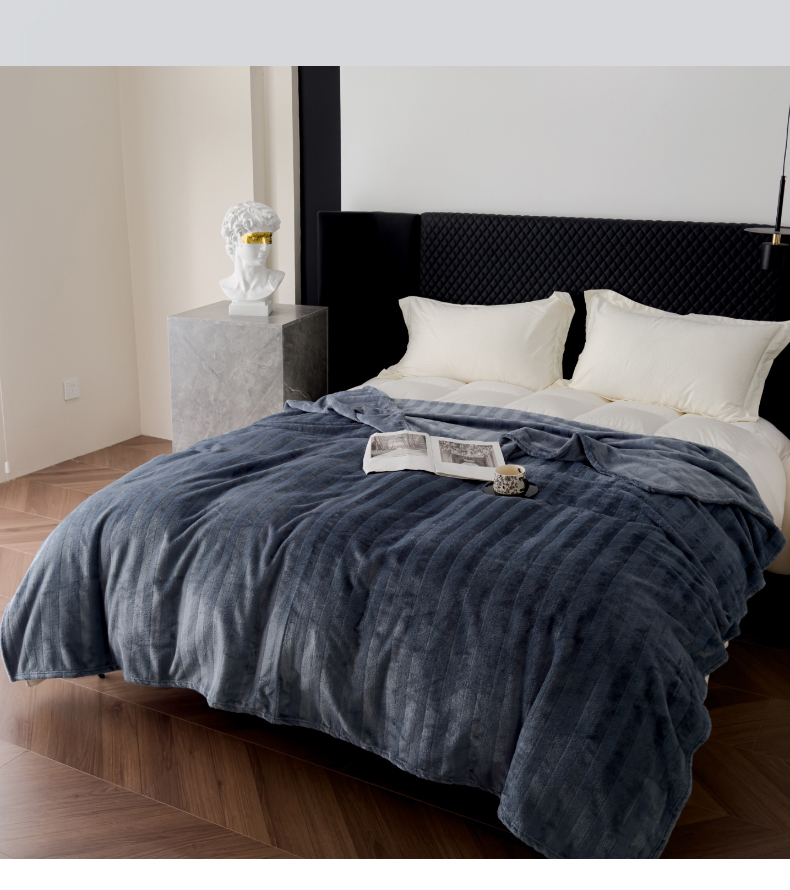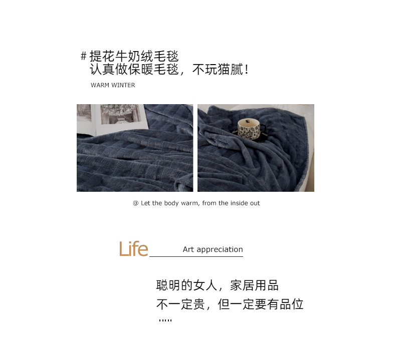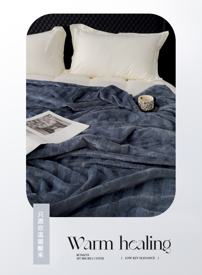 春妮家纺 2024新款提花牛奶绒毛毯 蓝灰