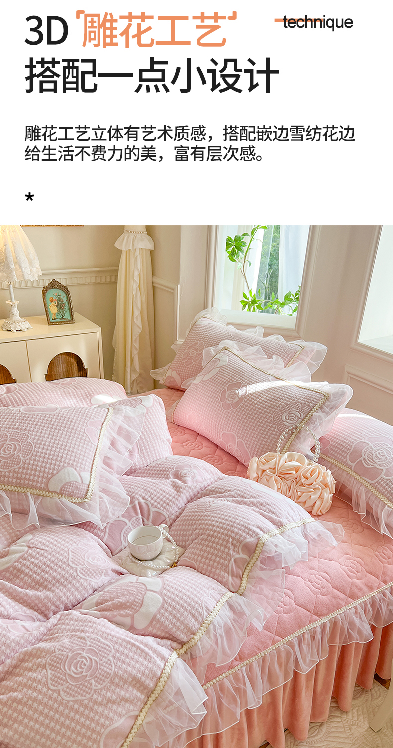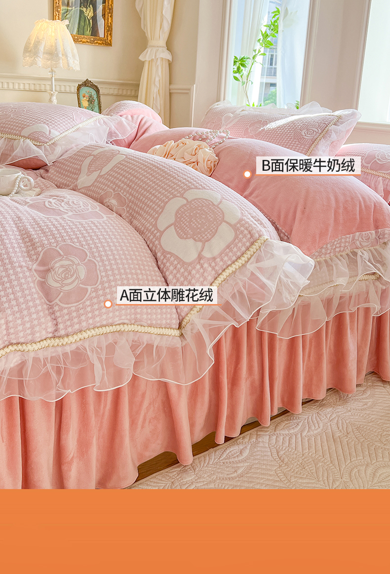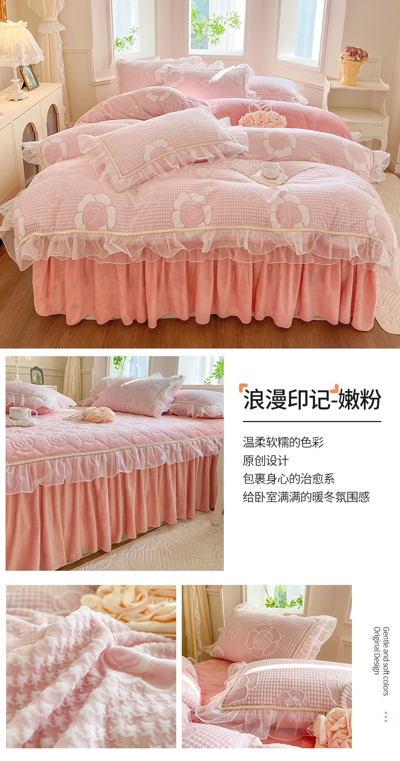 当前位置: 91家纺网 > 商品网购 > 床品套件 > 四件套 > 雕花绒四件套 > 网红馆(ck家纺) 2025新款雕花绒床裙四件套-浪漫印记 浪漫印记-嫩粉