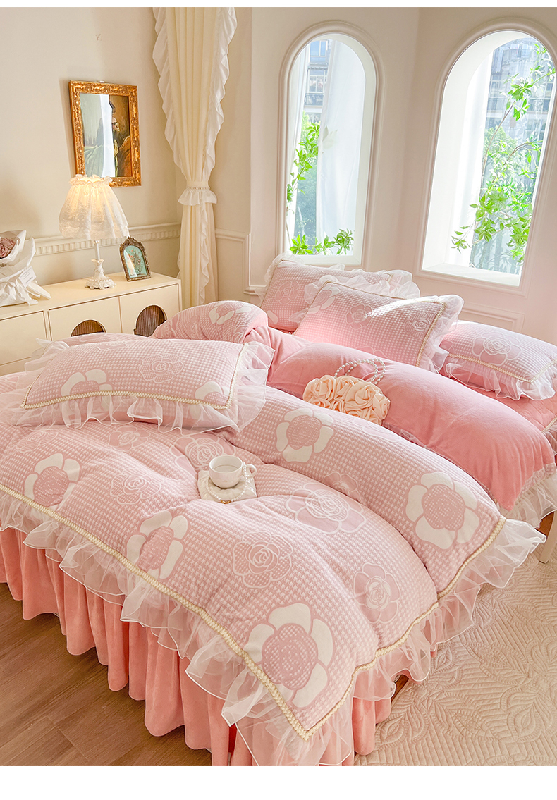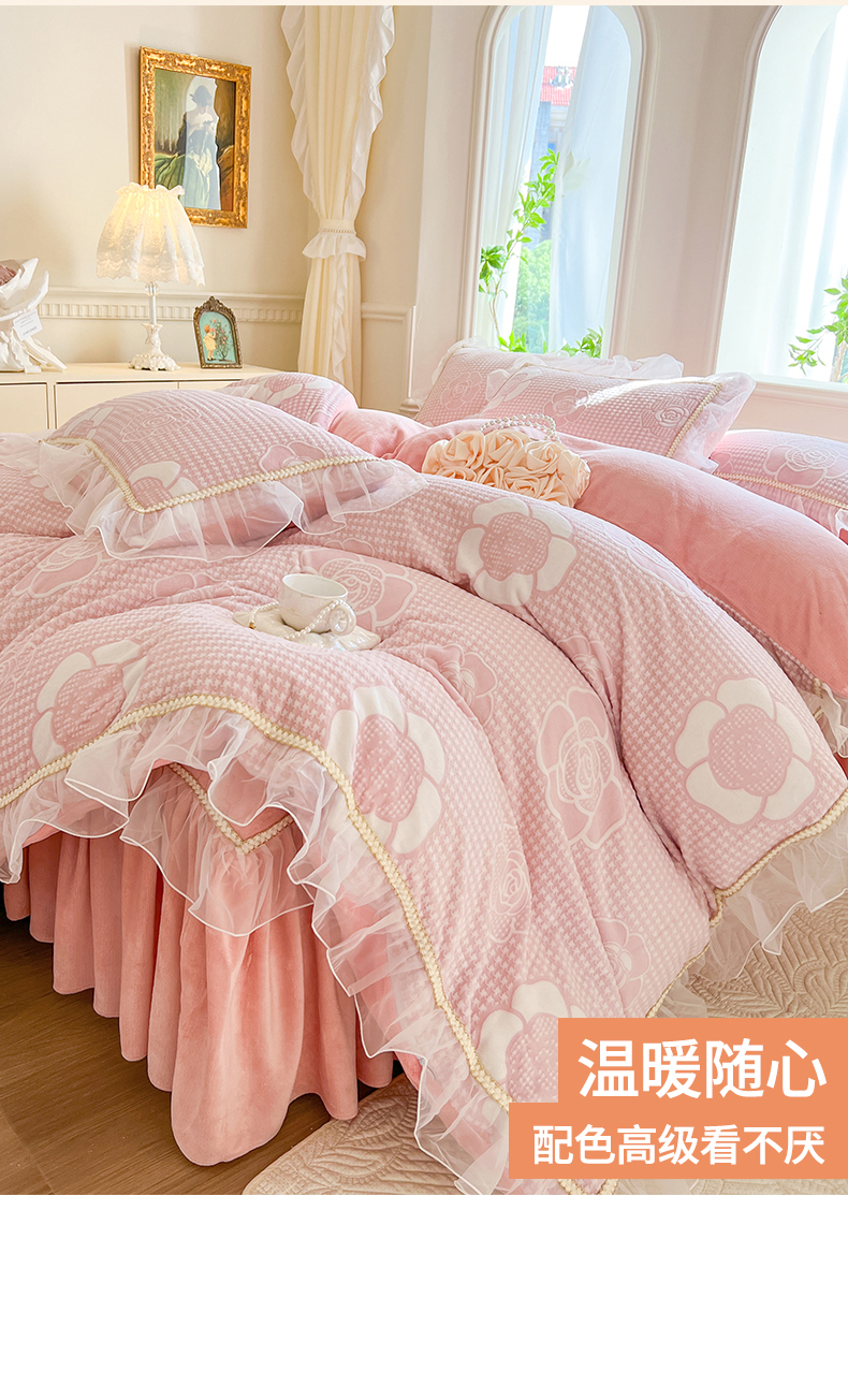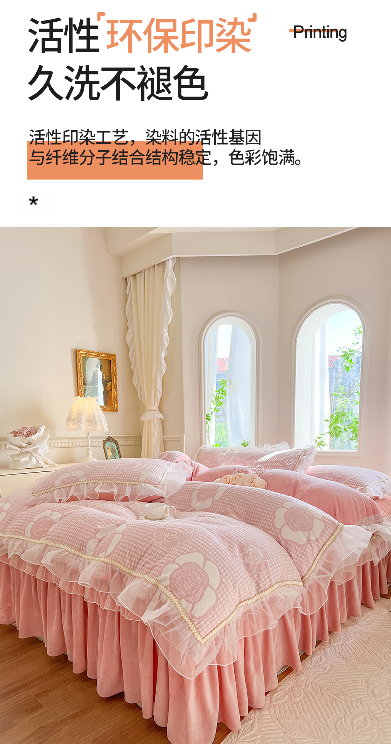 当前位置: 91家纺网 > 商品网购 > 床品套件 > 四件套 > 雕花绒四件套 > 网红馆(ck家纺) 2025新款雕花绒床裙四件套-浪漫印记 浪漫印记-嫩粉