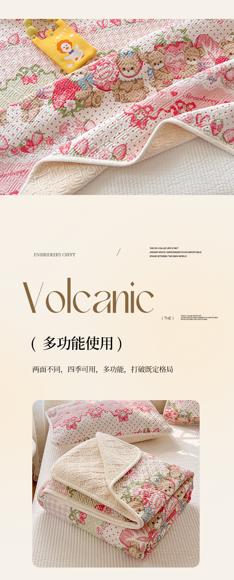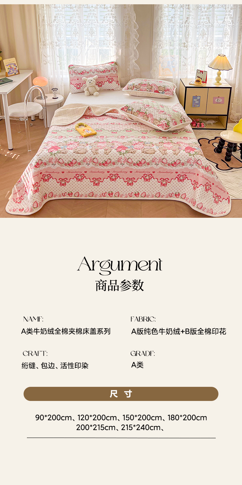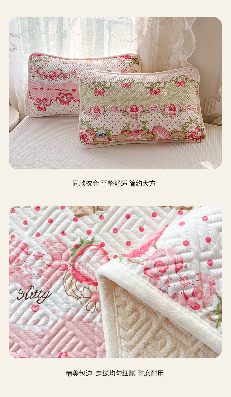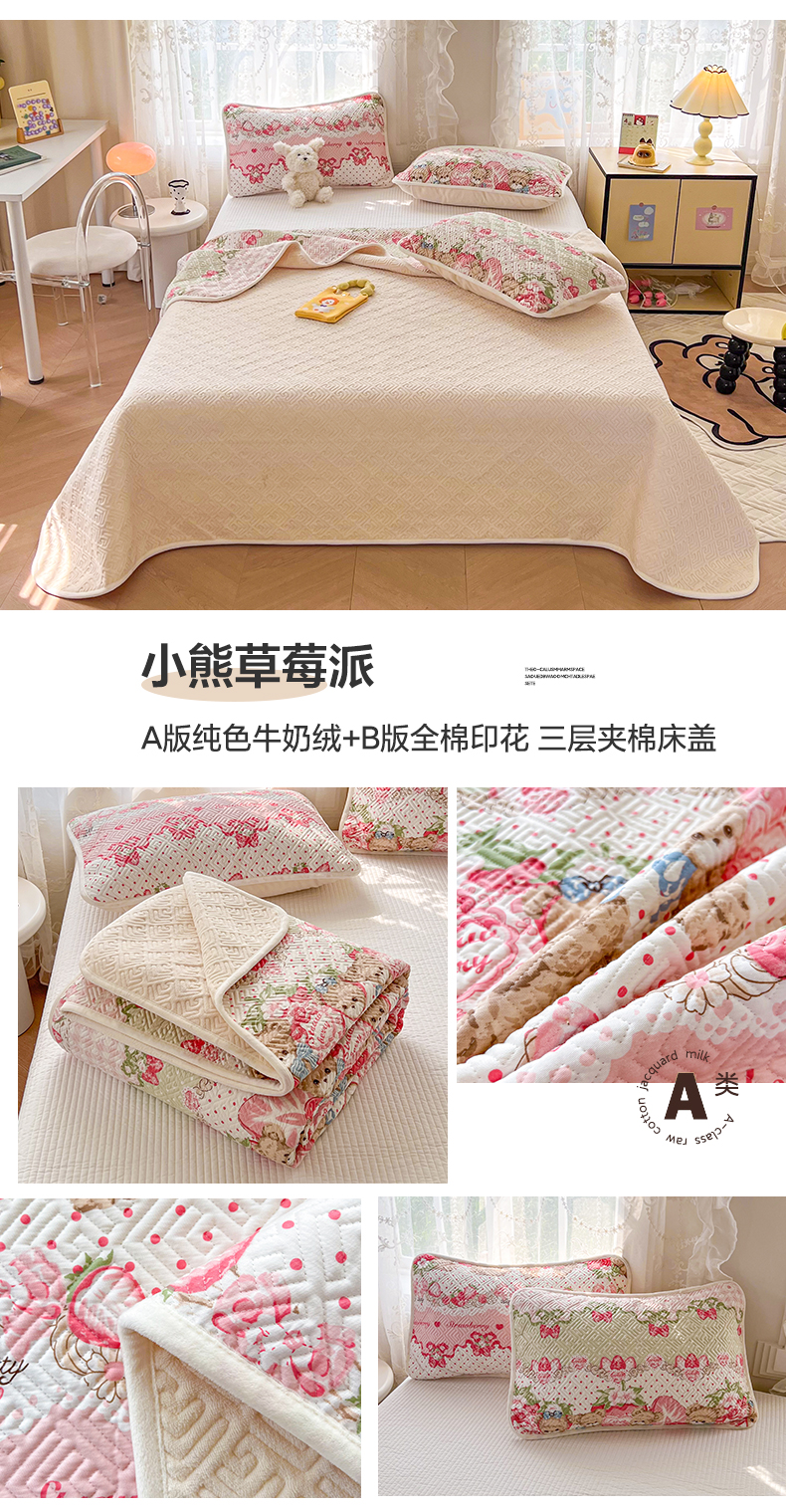 • 91家纺网 家纺一手货源 找家纺 沐辰 2024新款A类A全棉B牛奶绒夹棉双面床盖 A全棉B牛奶绒-小熊草莓派