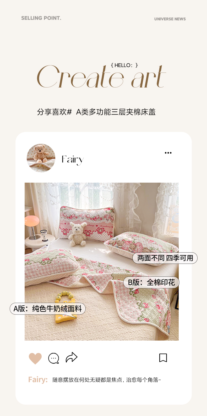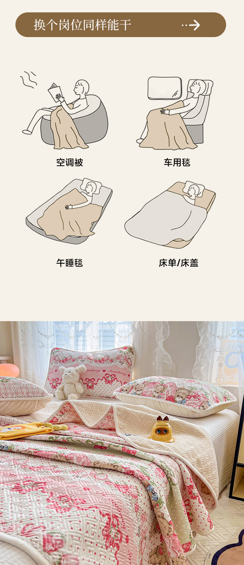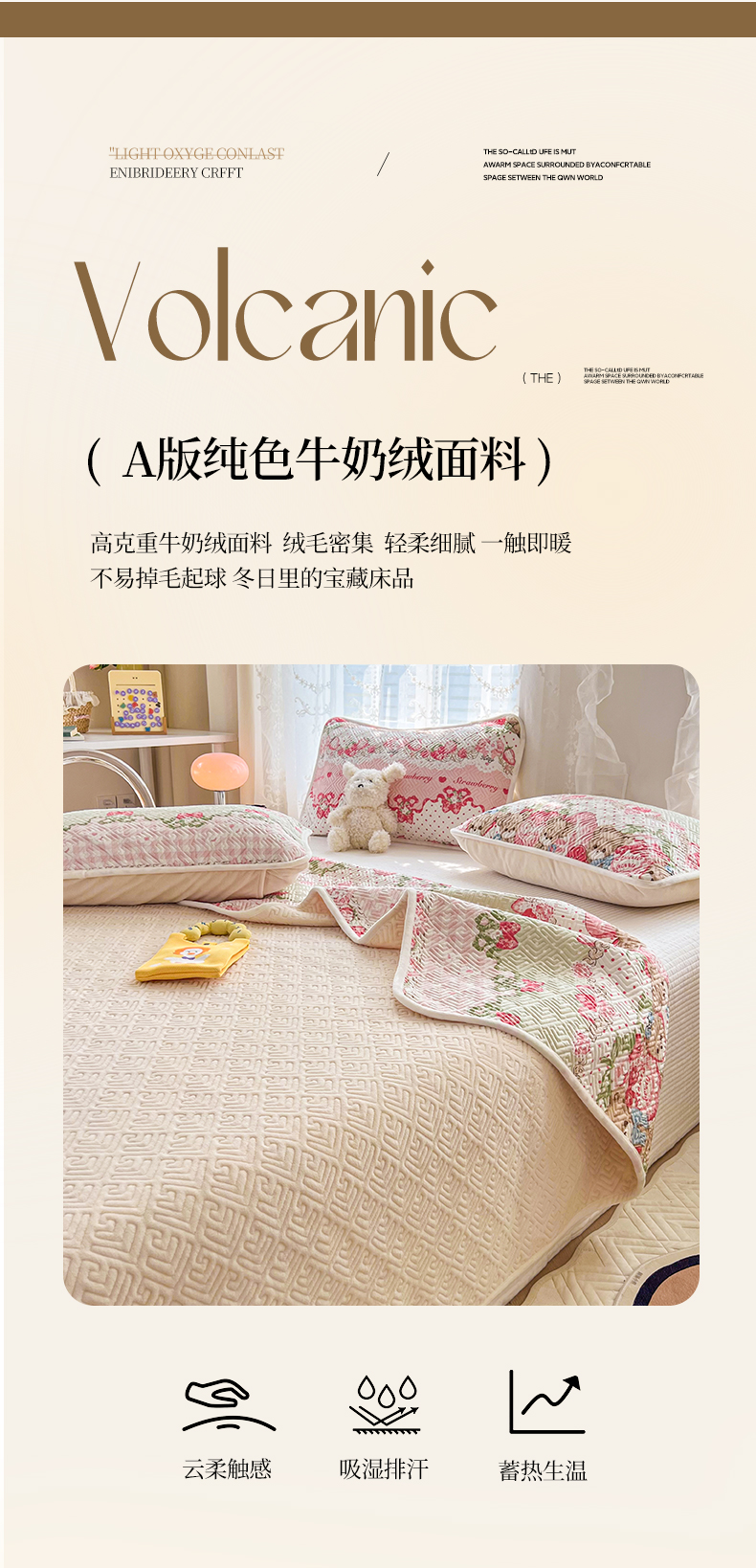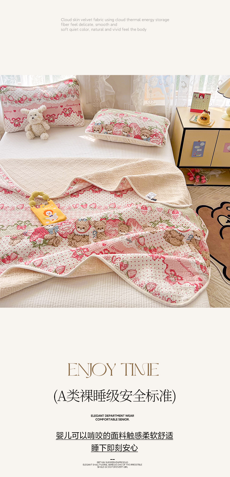 • 91家纺网 家纺一手货源 找家纺 沐辰 2024新款A类A全棉B牛奶绒夹棉双面床盖 A全棉B牛奶绒-小熊草莓派