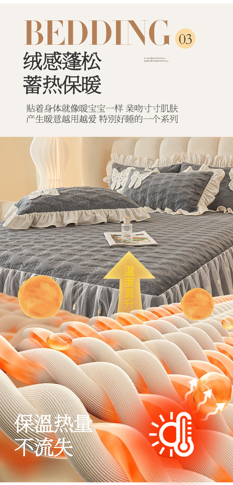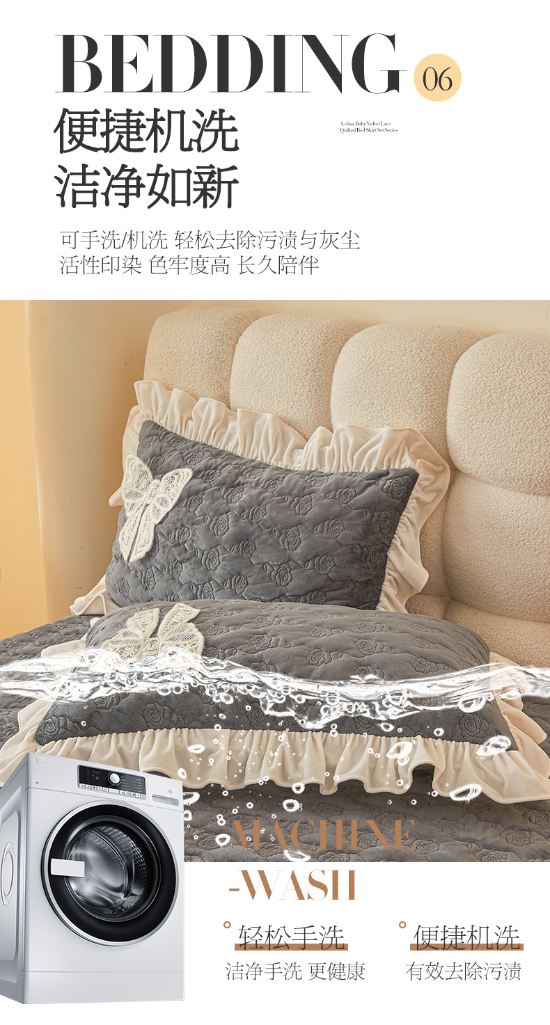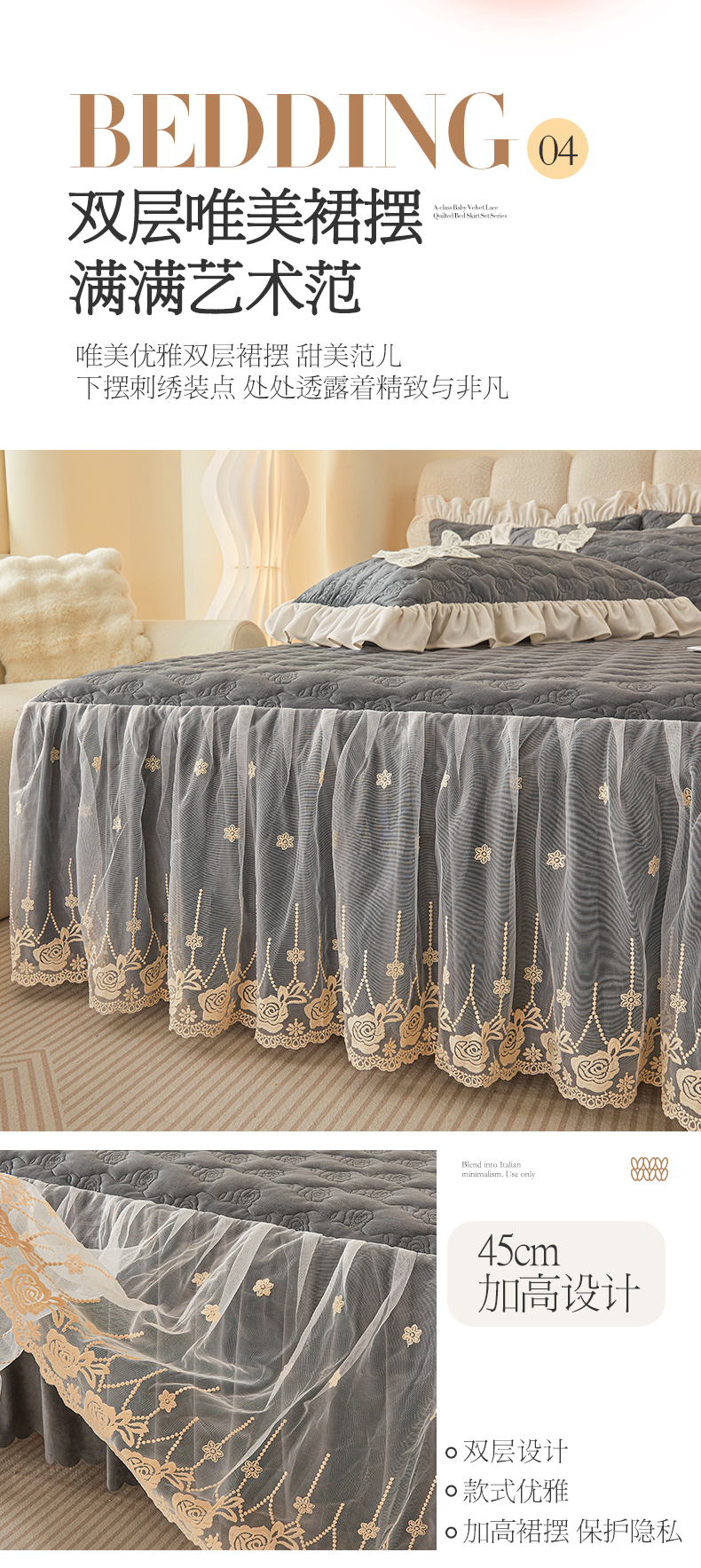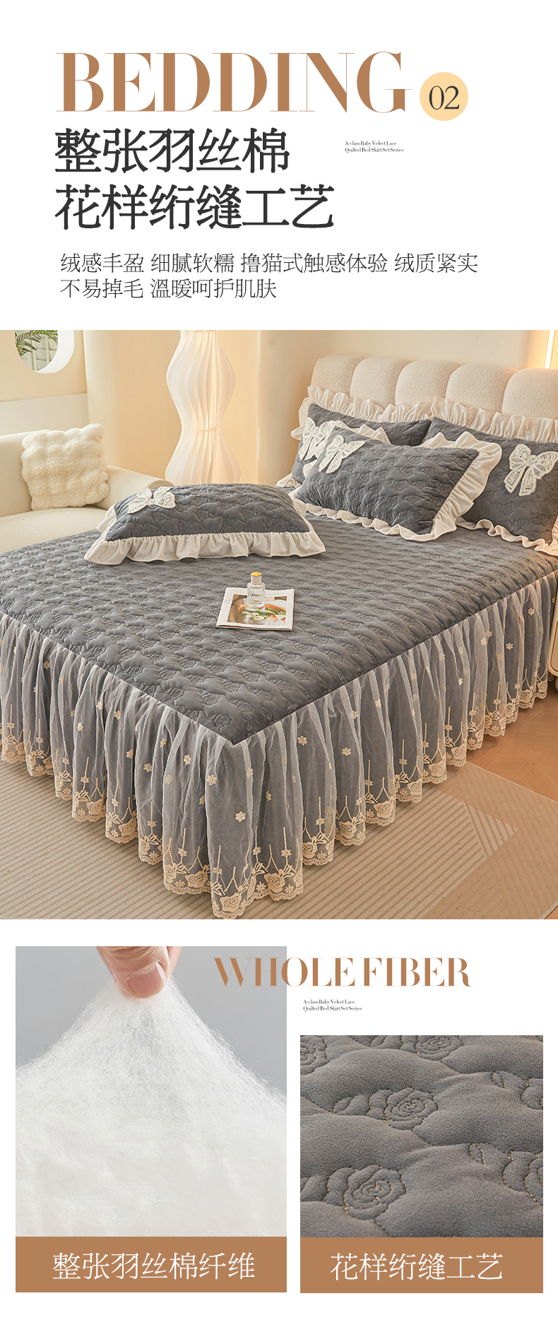 • 91家纺网 家纺一手货源 找家纺 情恒家纺 2025新款A类婴儿绒全夹棉奶油风(蝴蝶结)床裙三件套 蝴蝶结寂静灰